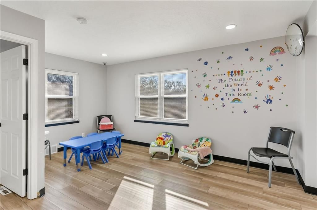 This beautifully newly remodeled daycare facility is designed to provide a safe, engaging, and nurturing environment for children. The property features a welcoming common area, three spacious and thoughtfully designed classrooms, four well-appointed bathrooms, and a dedicated administrative office to support daily operations. Additional amenities include a fully equipped kitchen, pantry, laundry room, ample storage throughout, two fireplaces, and an unfinished basement offering the potential to add additional classrooms or storage space. The facility also includes a spacious two-car garage and a vending machine for added convenience. For enhanced safety and peace of mind, the building is equipped with a security system and an interior sprinkler system. A secure outdoor playground provides ample space for active play and developmental activities. Throughout the facility, modern upgrades and child-friendly finishes create a warm and welcoming atmosphere for both families and staff. This turnkey daycare presents an excellent opportunity for operators seeking a clean, functional, and well-equipped space to support a growing childcare program.