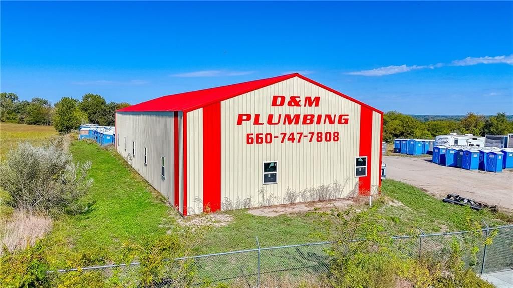 Don't miss this rare opportunity to own a versatile commercial property with endless potential! Situated on 10 expansive acres, this property is ideal for an established or growing plumbing, construction, or service business. It features multiple workshops, including two large metal buildings with a total of eight oversized bays - perfect for equipment storage, repairs, and fleet maintenance. Ample outdoor space provides room for vehicles, materials, or future expansion. The main building also includes apartments underneath, offering convenient on-site living, staff housing, or additional rental income. Conveniently located with easy access to major highways, this property combines business functionality, flexibility, and investment opportunity all in one.