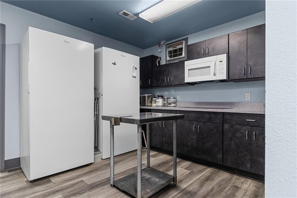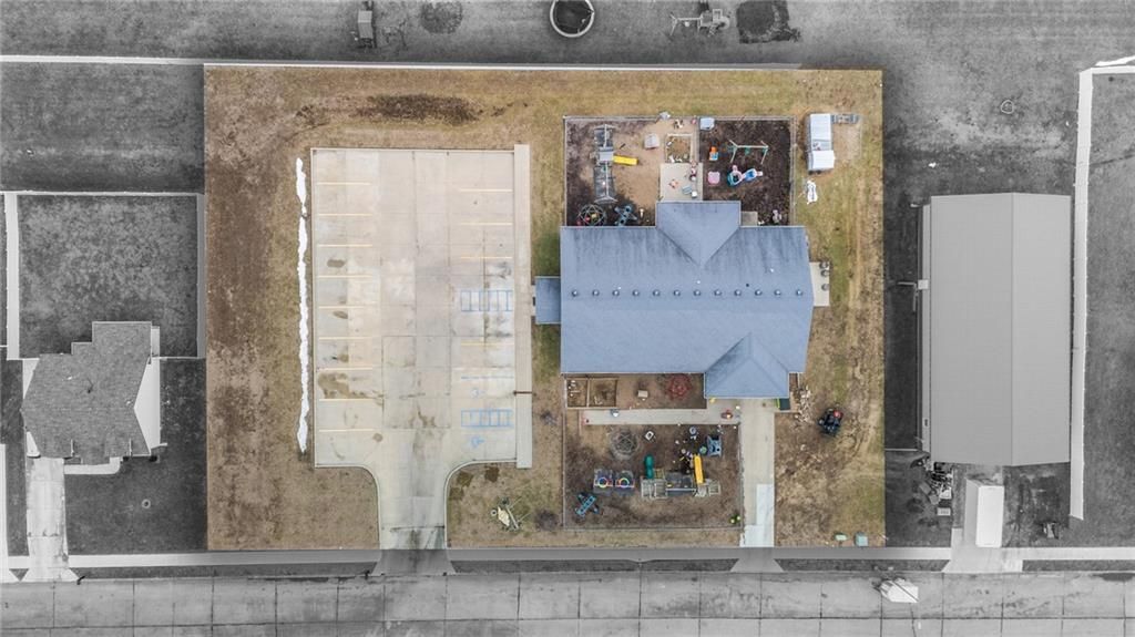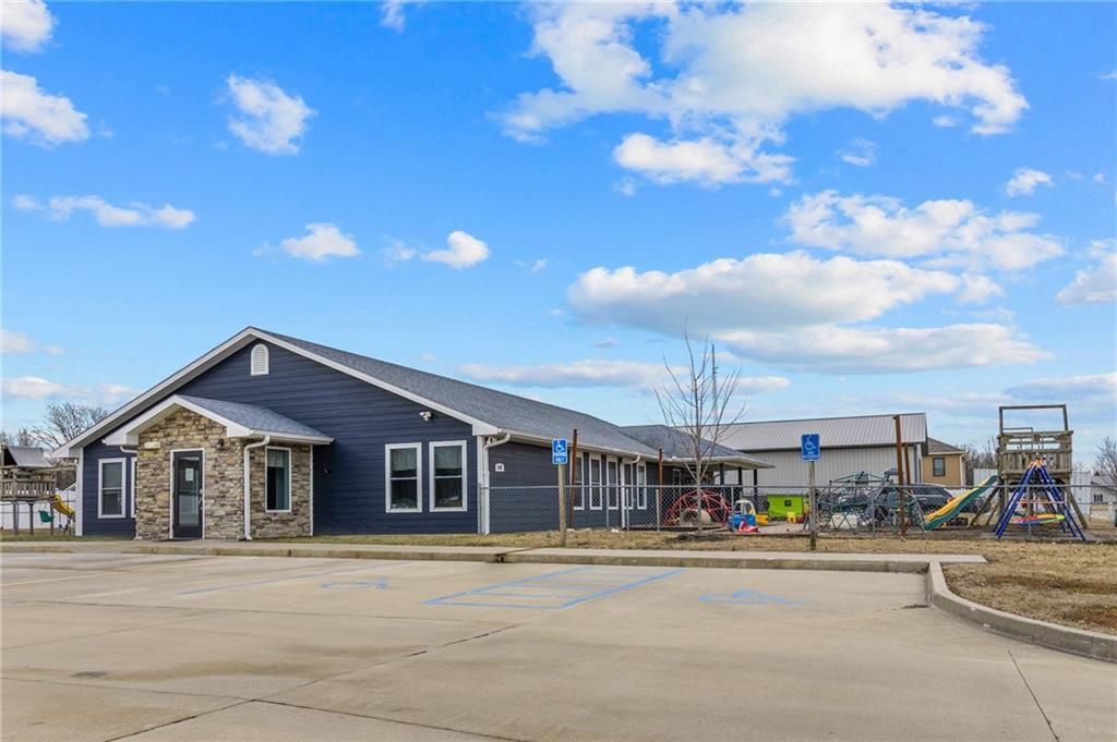 One story ranch style building featuring a private office at the reception area, a full kitchen with a pantry, three large primary classrooms, and three playgrounds. When you enter the building the office is right off the reception entry way. The kitchen has two refrigerators, two ovens, commercial sink, walk in pantry, microwave and cabinets. The classrooms each have wall shelving units, bathrooms, sinks, and a door to the corresponding outside playground. Parking lot has 18 parking spots.