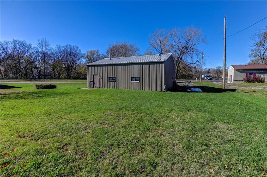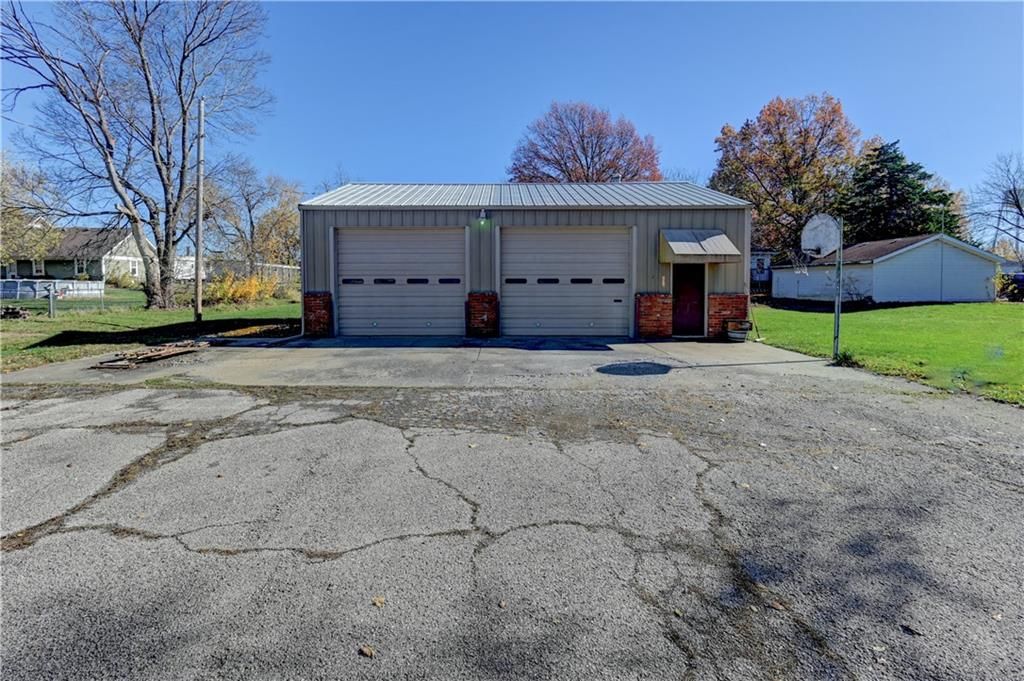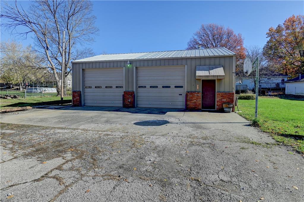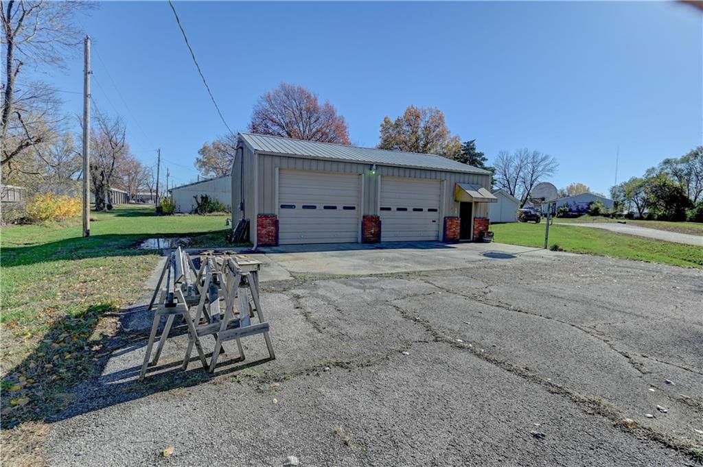 Spacious, open metal building on ideal Peculiar lot right in town! Large, open space with expandable loft area for additional work space or storage. 2 over-sized garage doors that open for loading of goods or cars. Building has electric and water, and features a full bathroom with shower and full kitchen area. Great opportunity for your business needs right in town and so many opportunities for use. Bring your offer today!