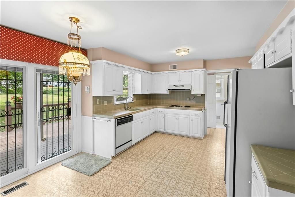 Amazing opportunity to turn this rare find into an amazing gem! Step inside and you will find plenty of space. Formal living room greets you and is open to the formal dining room. Eat-in kitchen has plenty of cabinets for all your cooking needs. Spacious family room with the homes wood burning fireplace and large windows overlooking the backyard. From the kitchen, the oversized back deck leads to the fenced back yard. Back deck is also partially covered. Laundry and half bath are also conveniently located on the main level. Upstairs, the first level has two large bedrooms with walk-in closets and a shared full bathroom. Up another set of stairs, leads you to bedroom three and the homes primary bedroom. Shared bathroom on this level as well can be accessed from the primary bedroom. Basement is huge and ready for some updates to make it an amazing recreation space. Additional storage and workshop area that also has a walk-up to the backyard. Home sits on a acre, level lot and includes a storage shed on the property. Home has new windows, new front door, and new sliding door to the back yard. Plenty of closet space. Huge driveway. Large rooms. Lots of space in this home. Come make this home yours today!