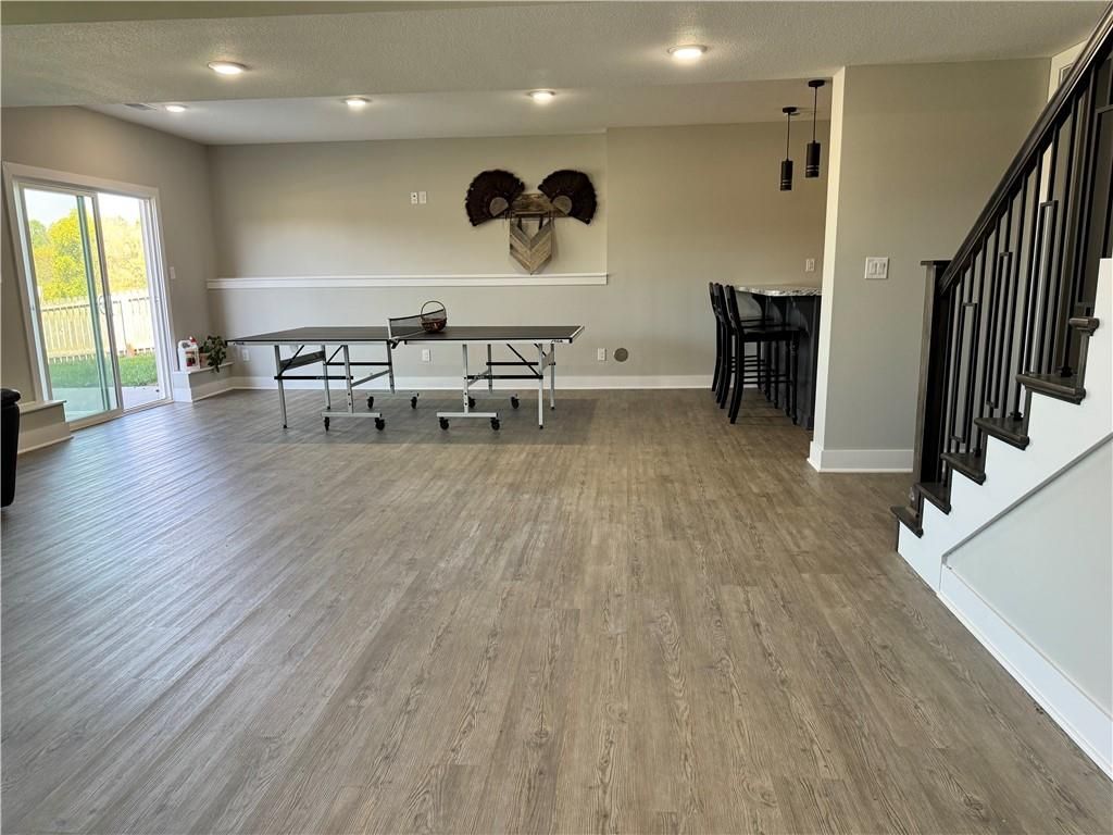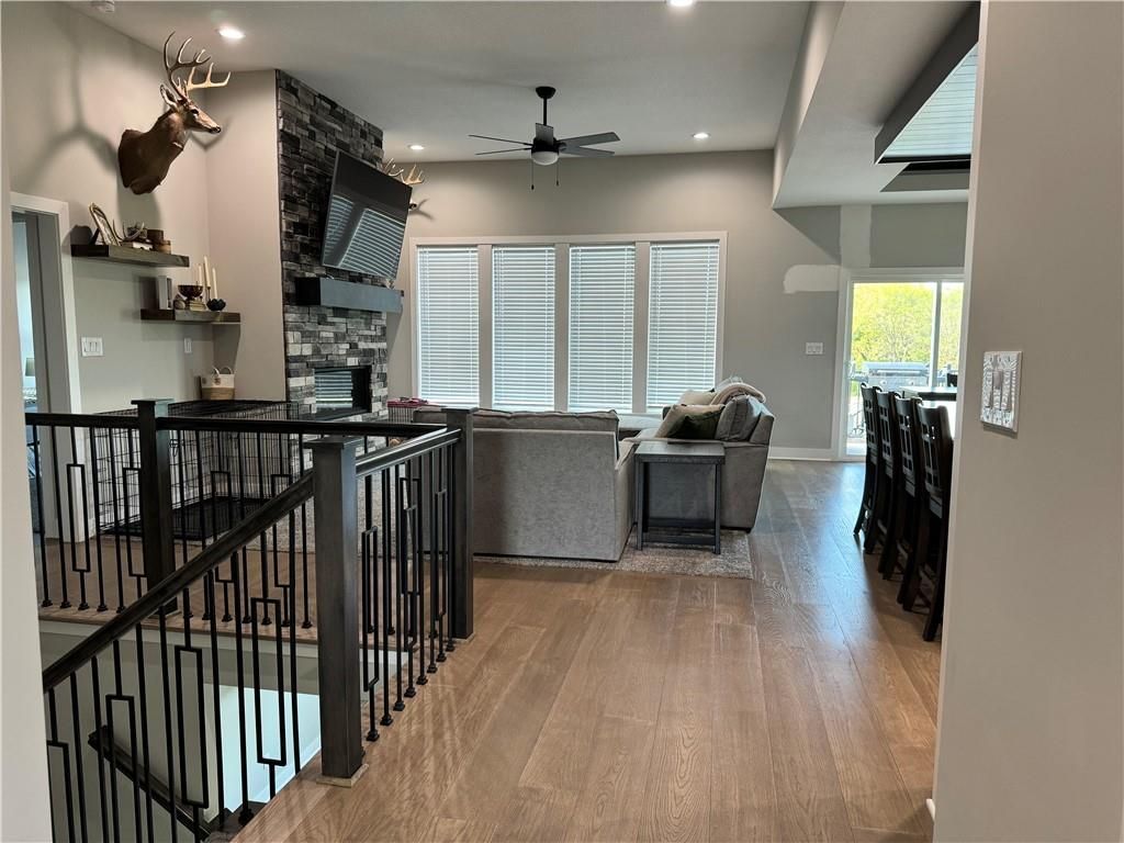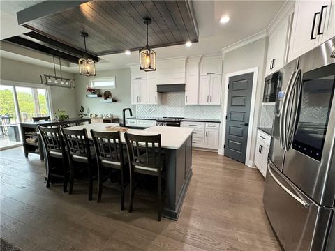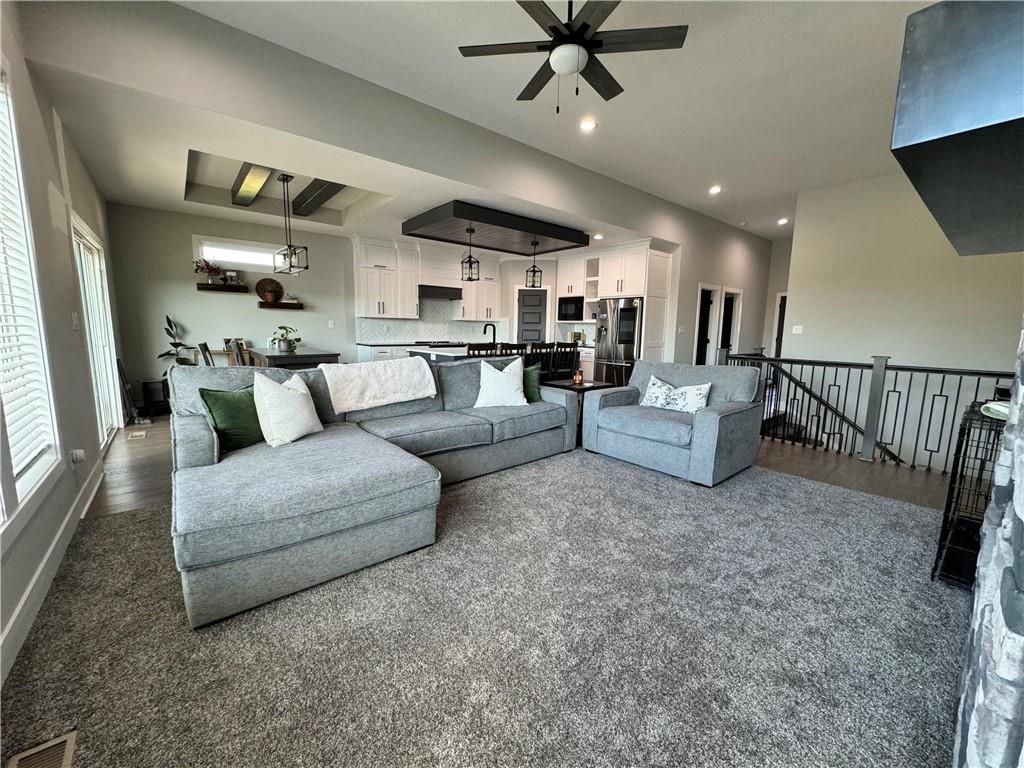 Discover this stunning 4 bedroom, 3 Bathroom upgraded builder home in Kansas City, MO. Thoughtfully designed with luxurious finishes, this home features a gourmet kitchen with quartz countertops, a spacious island, upgraded backsplash, stainless steel appliances, and LED lighting set in stylish drop-down ceiling. The first floor laundry room is conveniently connected to the master suite, making daily living a breeze. The extra deep third car garage provides ample storage space. Step out to the backyard oasis and enjoy a tranquil view with no rear neighbor. A peaceful pond with a gentle fountain creates a serene ambiance, perfect for unwinding on the deck. The walk-out basement enhances your entertaining options with a full bar and additional living space. With upgraded carpet and lighting throughout, this home combines style, comfort, and privacy in a fantastic location. Don't miss the opportunity to make this exceptional home your own. Schedule a viewing today!