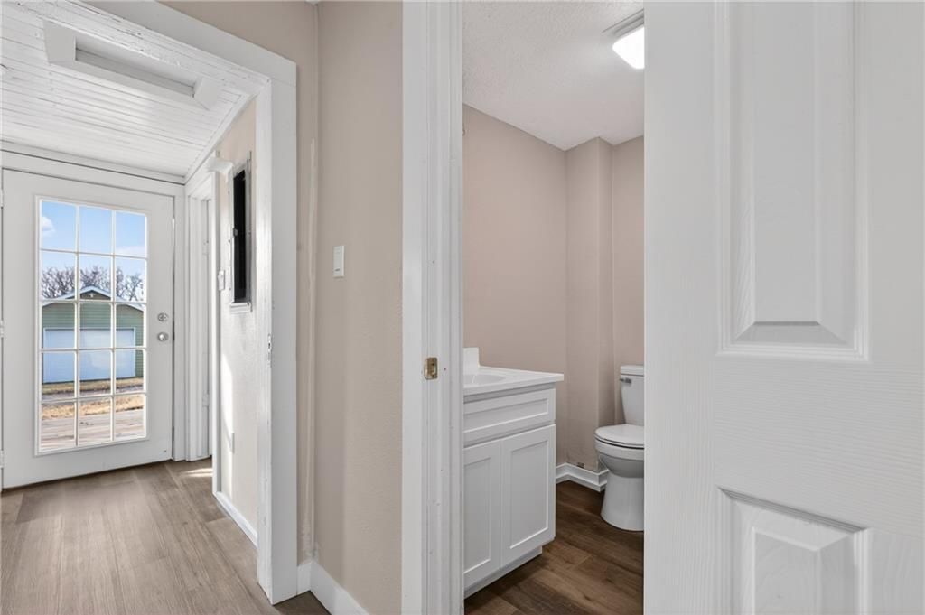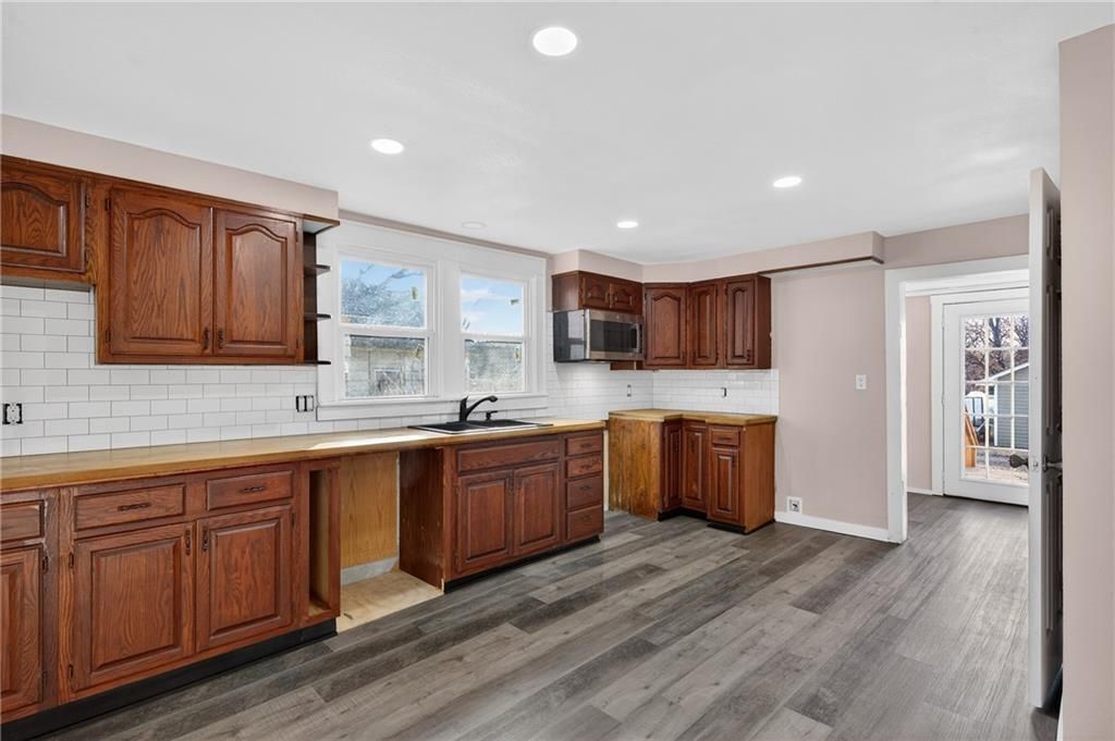 This beautiful home is located in the historical district of Ft Scott & has undergone a complete transformation from top to bottom. Very little has been left untouched bringing this home back to life & ready for your new memories! The large covered front porch is the welcoming center of the home, along with a 17x11 section that's screened in, creating the perfect nook to enjoy a book on a nice day. Step inside & LOVE the beautiful refinished wood floors found in the living room, along with the modern industrial-style hanging lights, giving the space updated character & beauty that it deserves. The large windows throughout the home allow for wonderful natural ight to flow throughout. The separate family/formal dining combo-room creates a versatile area for flexible living. New vinyl plank flooring was added throughout the main level of the home. In the kitchen you'll enjoy an abundance of cabinetry for storage with new stained concrete counter tops & new white subway tile backsplash. Your personal design & appliances will absolutely set this room off! The space is large enough to allow for a kitchen island, coffee bar, or an eat in breakfast table, if you so desire. A new master bedroom was constructed on the main level along with a walk in closet & a slider barn door to complete the modern look. On the second level, three spacious updated bedrooms & a beautiful new full bath are found along with a central closet for storage. Step out the back door to find a new deck that's perfect for overflow dining & relaxation. The 25x20 two car garage with remote entry is only steps away with hobby & storage galore! Some work is still being completed, as weather permits, along with new central heat & air to be installed prior to closing. This home is found in a quiet neighborhood, yet close enough to historic downtown to enjoy the amenities. Instead of mowing all summer, explore the nearby park & love your new life in this beautiful home, at an affordable price!