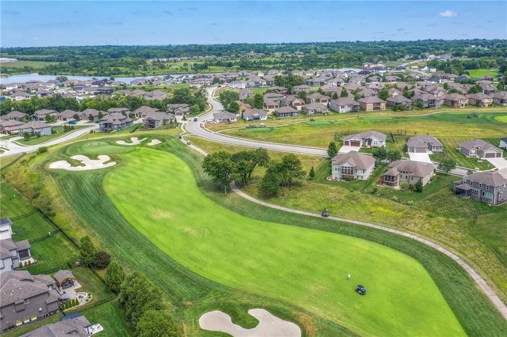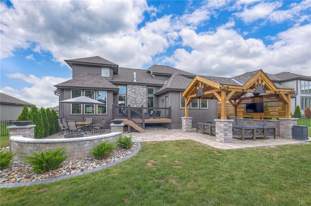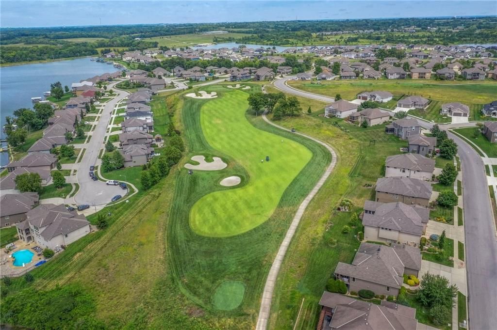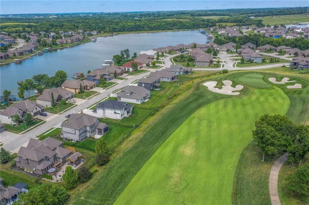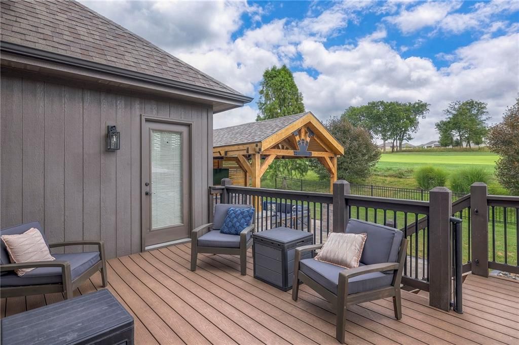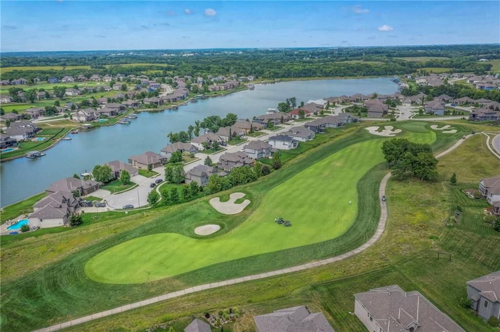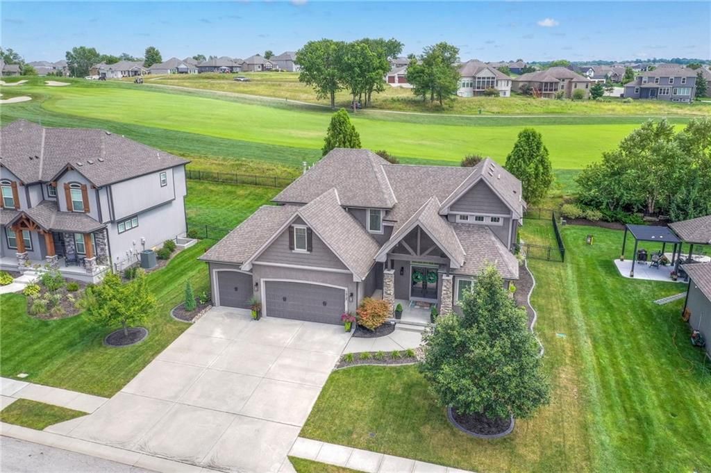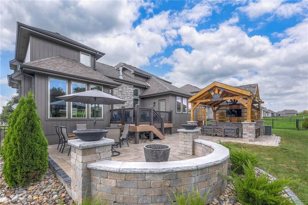 Stunning 1.5 story floorplan on the golf course with spectacular outdoor living space. Beautiful open floor plan with large windows and lots of natural light. Living room with high ceiling and see through fireplace onto the deck. Gourmet kitchen with vaulted ceiling, large island, range, serving area, and walk-in pantry. Eat-in dining area in kitchen with windows and access to covered patio to relax and enjoy. The owners suite on main level with beautiful owners bathroom that has double vanity, tub, and walk-in shower. The owners suite has walk-in closet and is attached to laundry room with built-in cabinets. Second bedroom and full bath located on main level. There is also a little pocket/drop office located on main level. Curved staircase to upstairs with three additional bedrooms, two bathrooms, and loft area. Enjoy the amazing outdoor living space updates located on the 8th fairway: gas firepit, extra-large patio with space for prep kitchen and serving area, sprinkler system, fenced yard, concrete edging, lighting, and more. Large unfinished basement that has tons of potential, stubbed for bath, and great storage. Home located on cul-de-sac for privacy. Perfect location with views of lake from front of home and private backyard on the golf course. Enjoy all that Creekmoor Community offers with pool, restaurant, workout facility, golf course, lake, walking trails, tennis courts, neighborhood elementary and more.