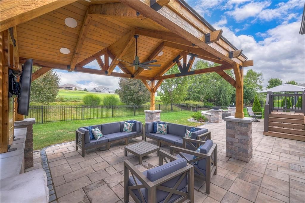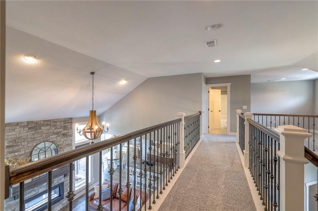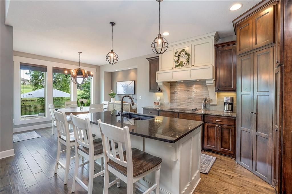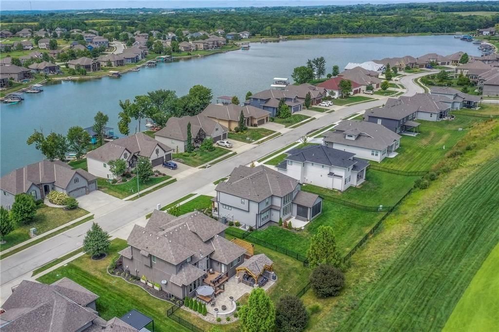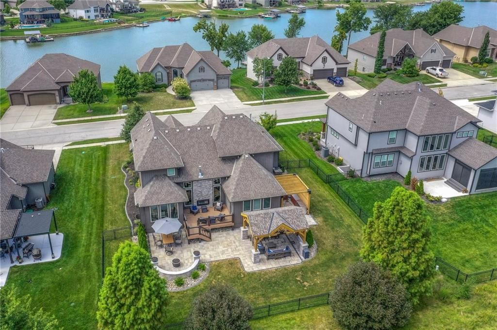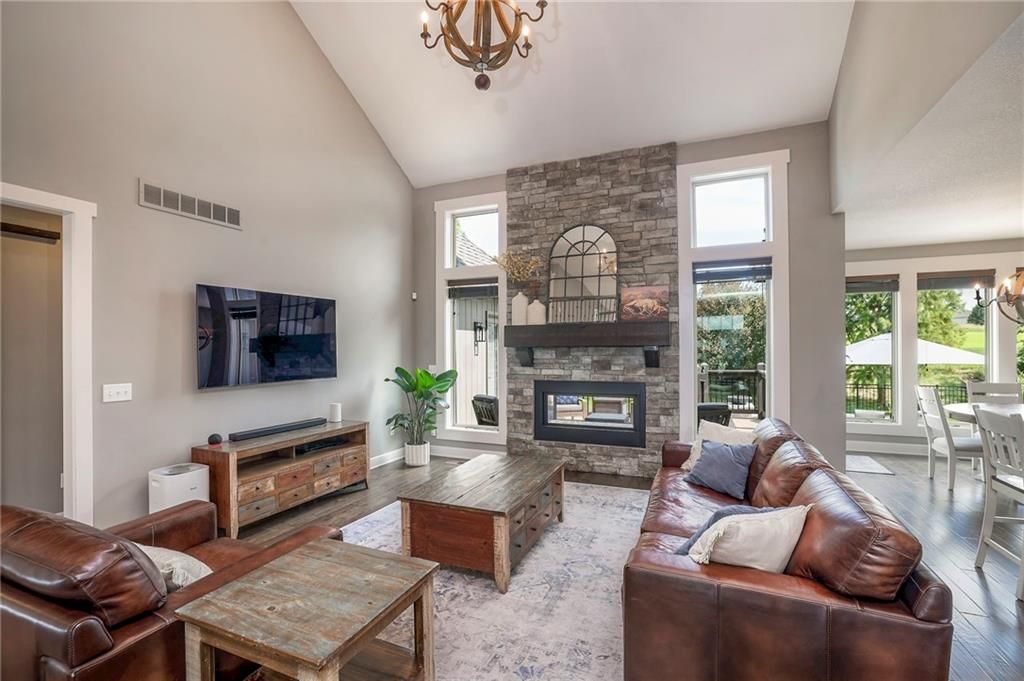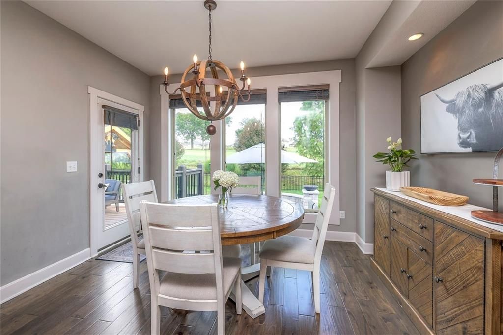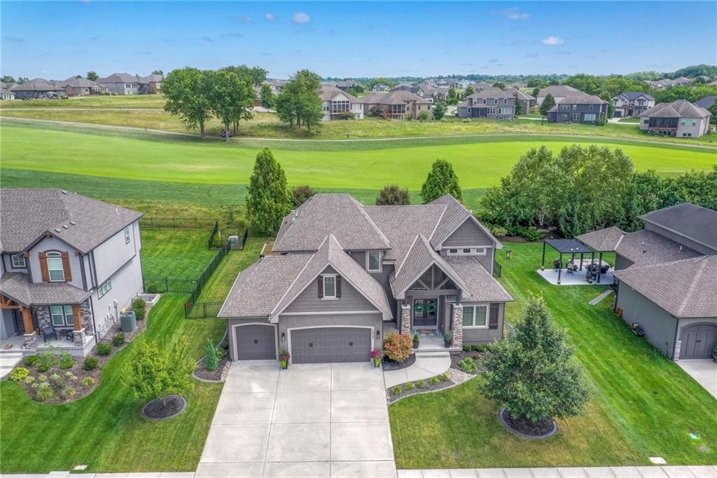Stunning 1.5 story floorplan on the golf course with spectacular outdoor living space. Beautiful open floor plan with large windows and lots of natural light. Living room with high ceiling and see through fireplace onto the deck. Gourmet kitchen with vaulted ceiling, large island, range, serving area, and walk-in pantry. Eat-in dining area in kitchen with windows and access to covered patio to relax and enjoy. The owners suite on main level with beautiful owners bathroom that has double vanity, tub, and walk-in shower. The owners suite has walk-in closet and is attached to laundry room with built-in cabinets. Second bedroom and full bath located on main level. There is also a little pocket/drop office located on main level. Curved staircase to upstairs with three additional bedrooms, two bathrooms, and loft area. Enjoy the amazing outdoor living space updates located on the 8th fairway: gas firepit, extra-large patio with space for prep kitchen and serving area, sprinkler system, fenced yard, concrete edging, lighting, and more. Large unfinished basement that has tons of potential, stubbed for bath, and great storage. Home located on cul-de-sac for privacy. Perfect location with views of lake from front of home and private backyard on the golf course. Enjoy all that Creekmoor Community offers with pool, restaurant, workout facility, golf course, lake, walking trails, tennis courts, neighborhood elementary and more.