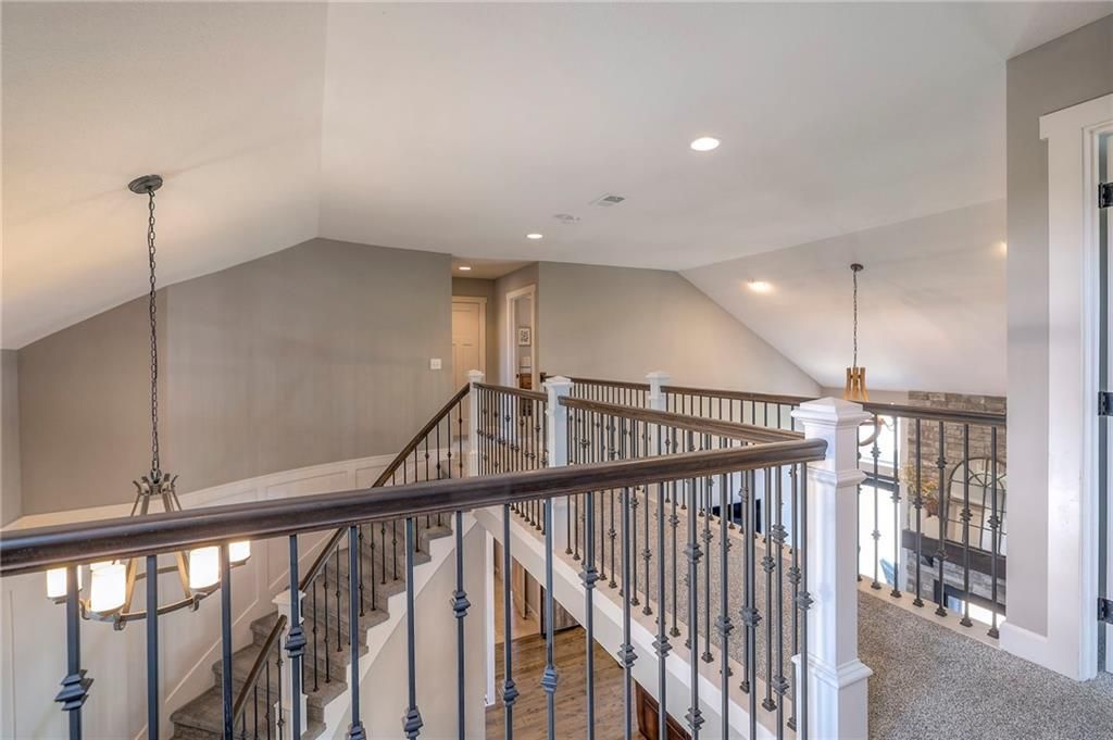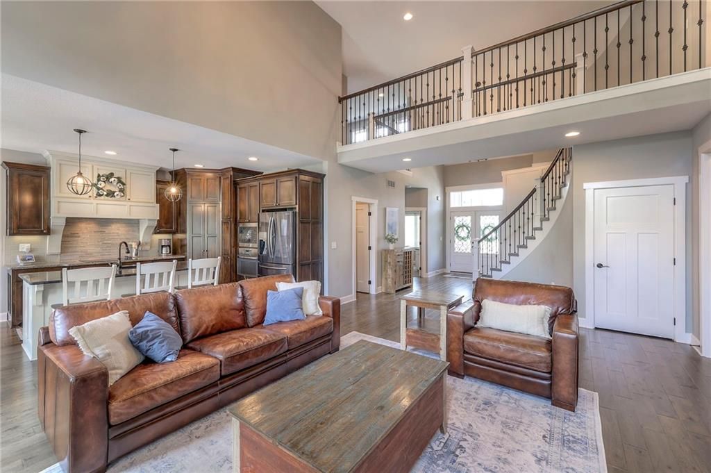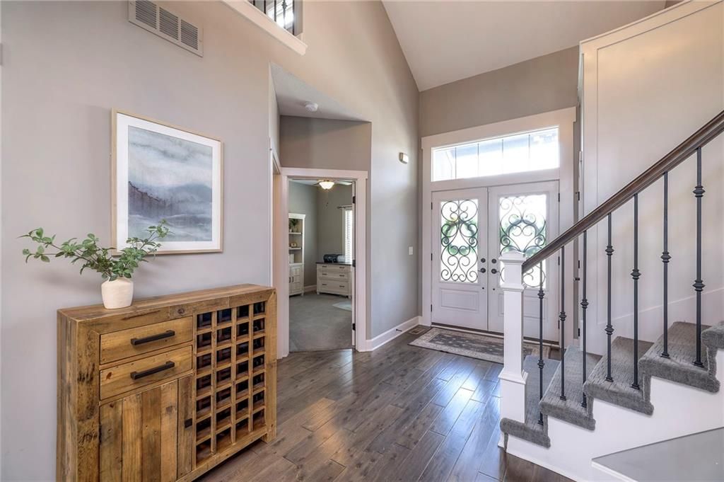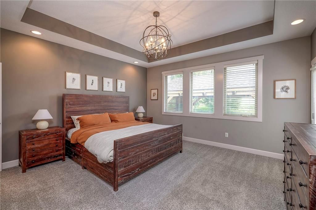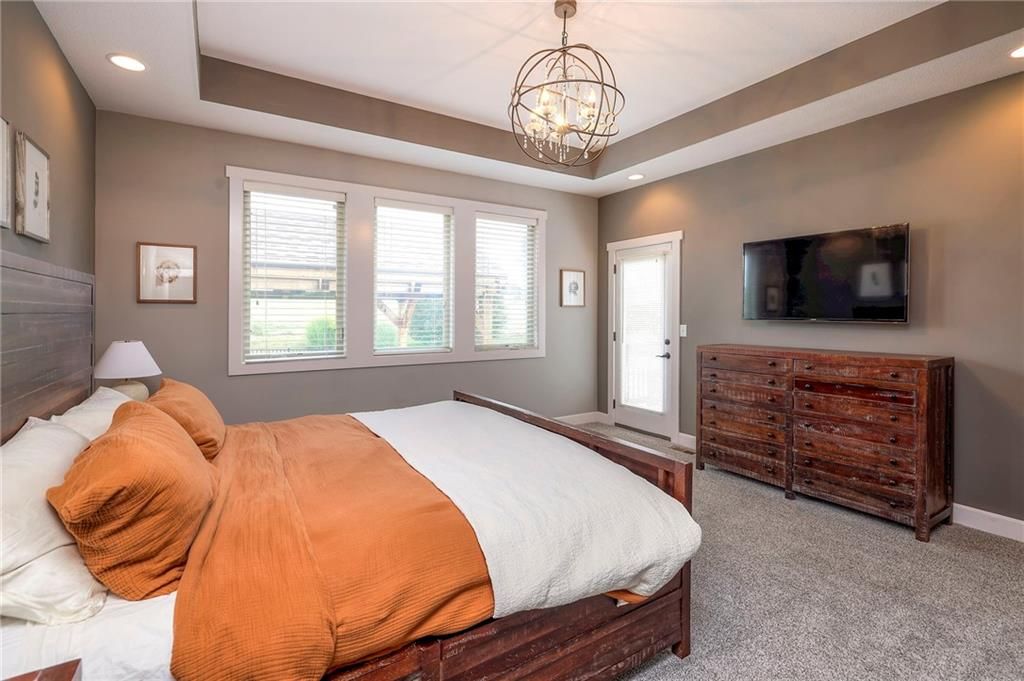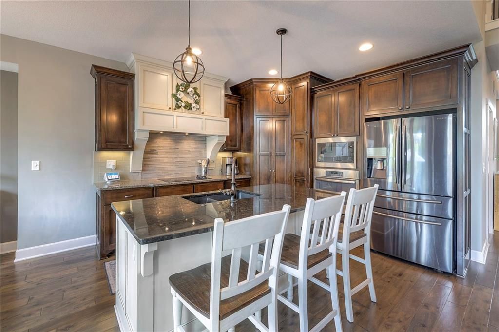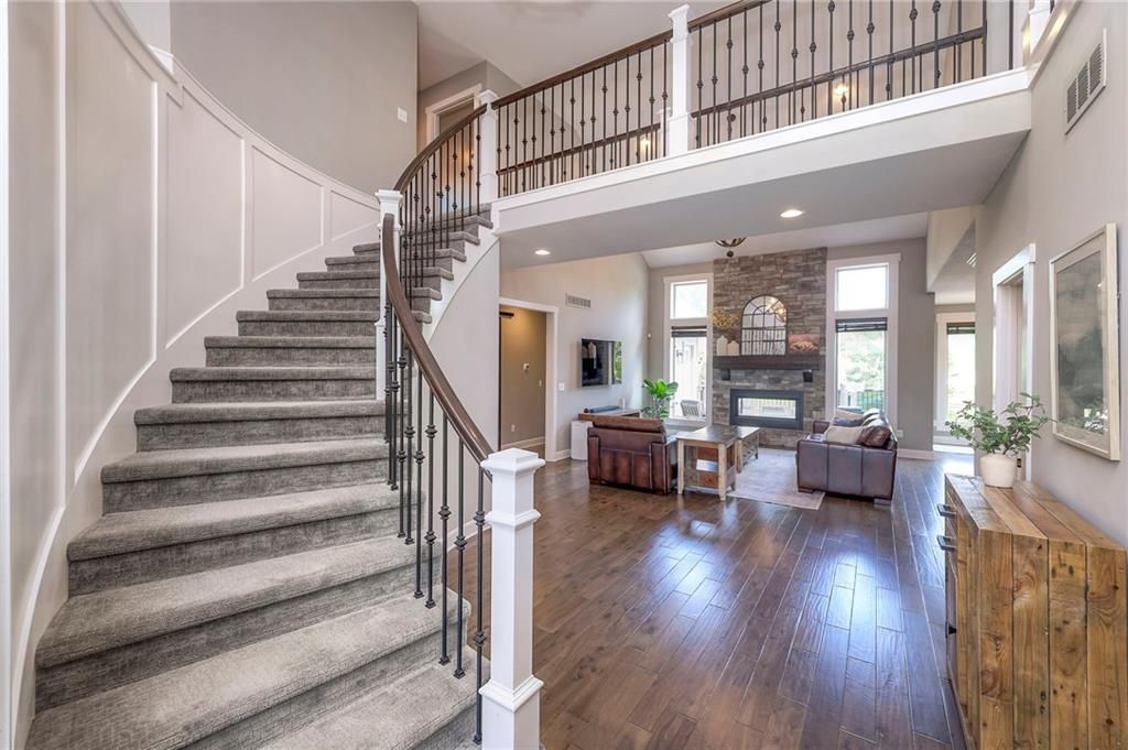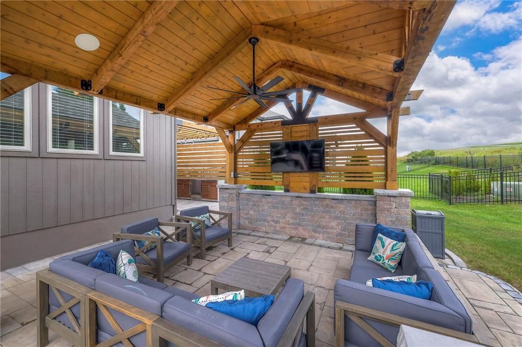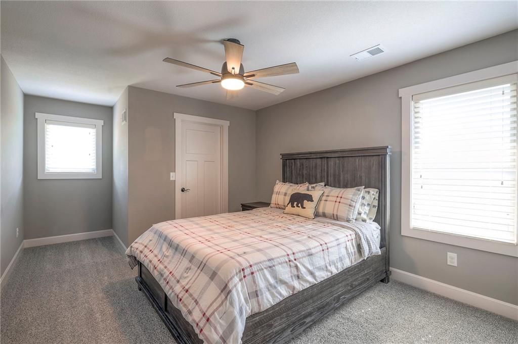 Stunning 1.5 story floorplan on the golf course with spectacular outdoor living space. Beautiful open floor plan with large windows and lots of natural light. Living room with high ceiling and see through fireplace onto the deck. Gourmet kitchen with vaulted ceiling, large island, range, serving area, and walk-in pantry. Eat-in dining area in kitchen with windows and access to covered patio to relax and enjoy. The owners suite on main level with beautiful owners bathroom that has double vanity, tub, and walk-in shower. The owners suite has walk-in closet and is attached to laundry room with built-in cabinets. Second bedroom and full bath located on main level. There is also a little pocket/drop office located on main level. Curved staircase to upstairs with three additional bedrooms, two bathrooms, and loft area. Enjoy the amazing outdoor living space updates located on the 8th fairway: gas firepit, extra-large patio with space for prep kitchen and serving area, sprinkler system, fenced yard, concrete edging, lighting, and more. Large unfinished basement that has tons of potential, stubbed for bath, and great storage. Home located on cul-de-sac for privacy. Perfect location with views of lake from front of home and private backyard on the golf course. Enjoy all that Creekmoor Community offers with pool, restaurant, workout facility, golf course, lake, walking trails, tennis courts, neighborhood elementary and more.