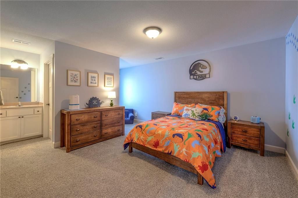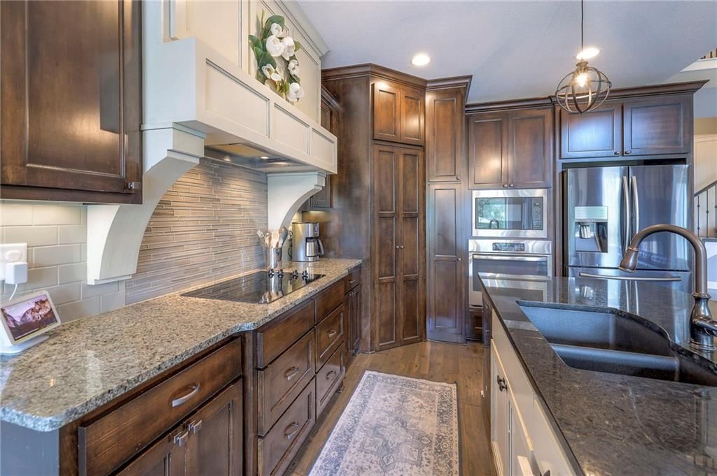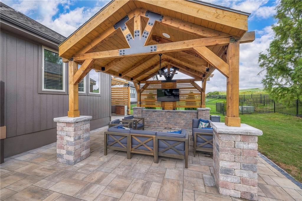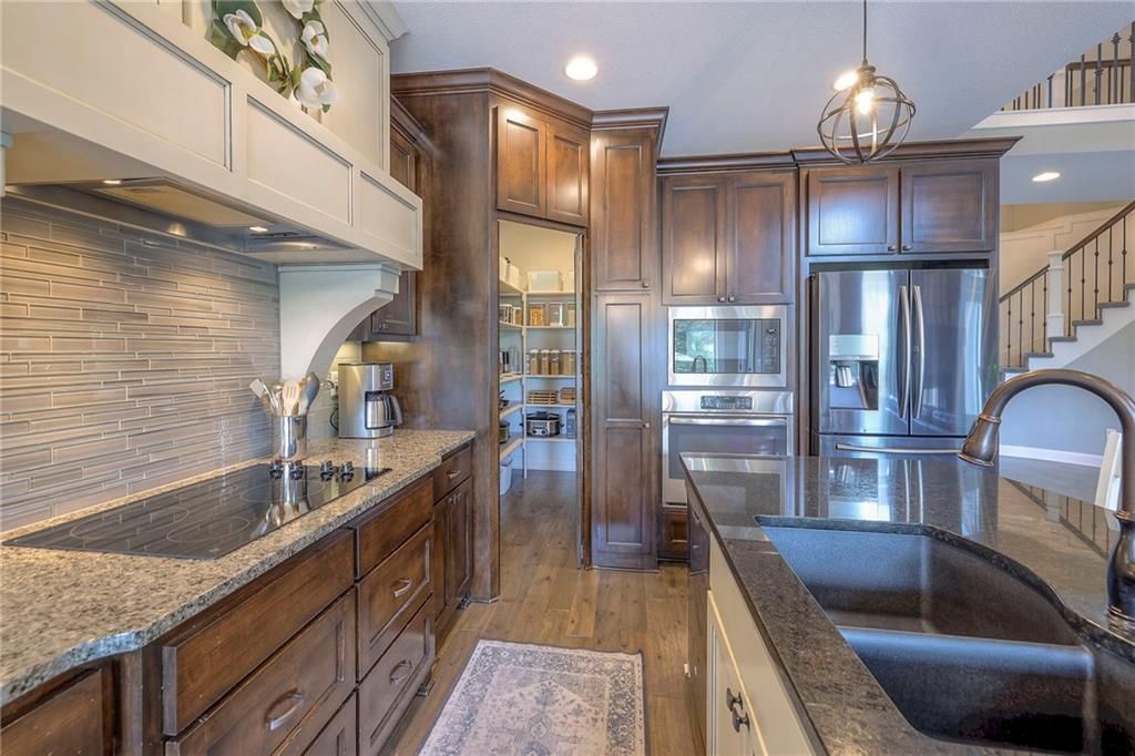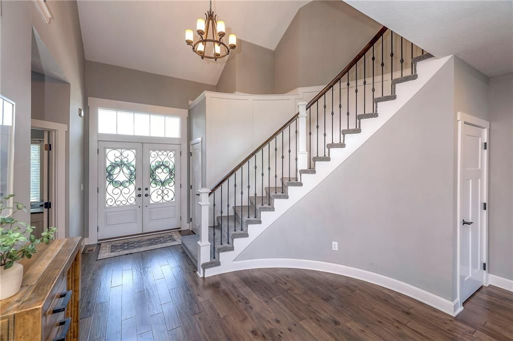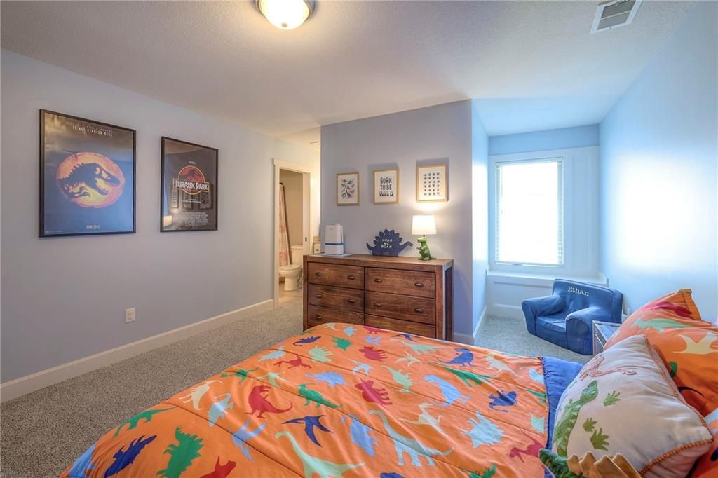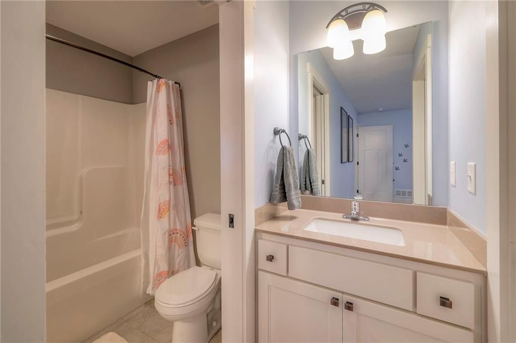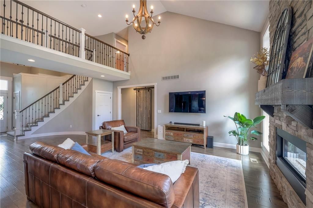 Stunning 1.5 story floorplan on the golf course with spectacular outdoor living space. Beautiful open floor plan with large windows and lots of natural light. Living room with high ceiling and see through fireplace onto the deck. Gourmet kitchen with vaulted ceiling, large island, range, serving area, and walk-in pantry. Eat-in dining area in kitchen with windows and access to covered patio to relax and enjoy. The owners suite on main level with beautiful owners bathroom that has double vanity, tub, and walk-in shower. The owners suite has walk-in closet and is attached to laundry room with built-in cabinets. Second bedroom and full bath located on main level. There is also a little pocket/drop office located on main level. Curved staircase to upstairs with three additional bedrooms, two bathrooms, and loft area. Enjoy the amazing outdoor living space updates located on the 8th fairway: gas firepit, extra-large patio with space for prep kitchen and serving area, sprinkler system, fenced yard, concrete edging, lighting, and more. Large unfinished basement that has tons of potential, stubbed for bath, and great storage. Home located on cul-de-sac for privacy. Perfect location with views of lake from front of home and private backyard on the golf course. Enjoy all that Creekmoor Community offers with pool, restaurant, workout facility, golf course, lake, walking trails, tennis courts, neighborhood elementary and more.