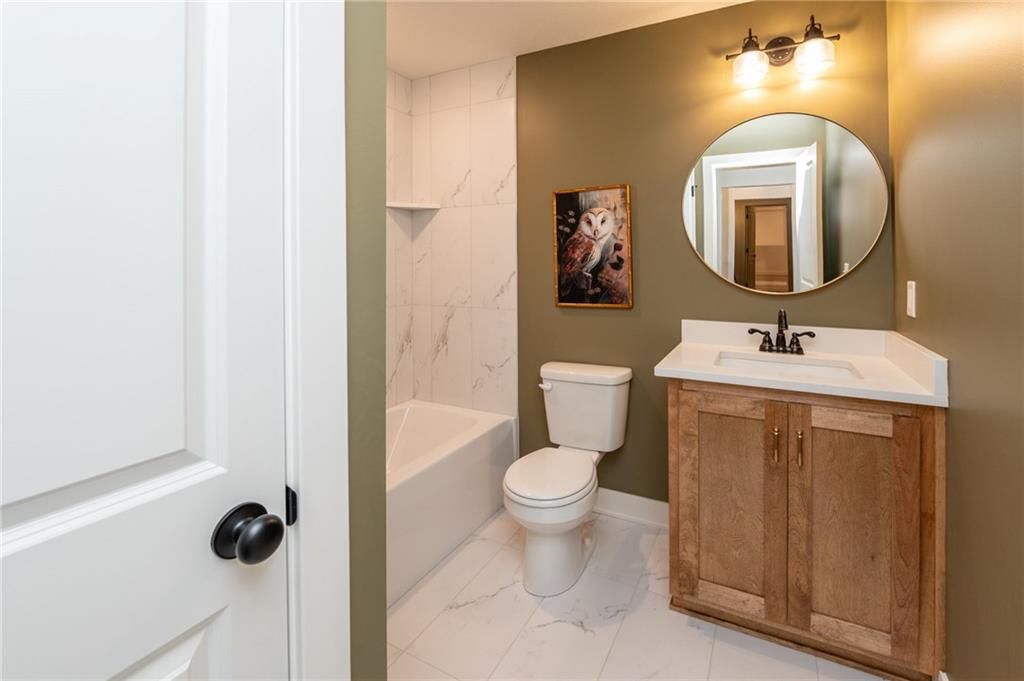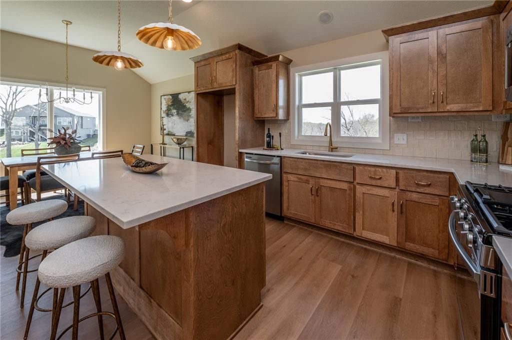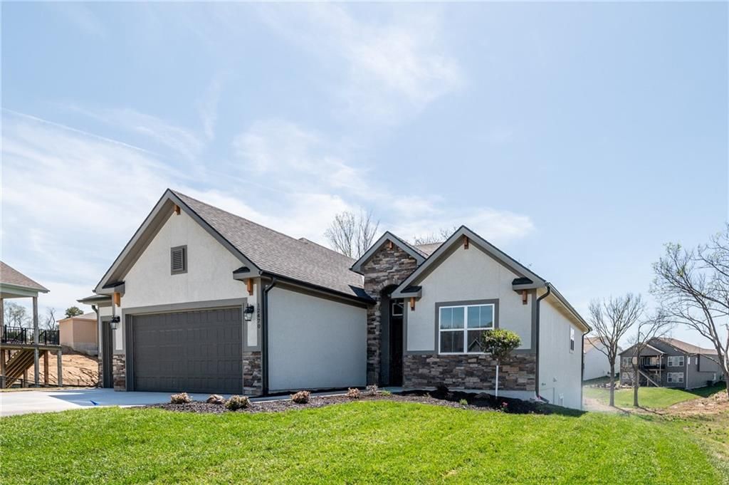 Move In Ready!The Azalea Gold plan by Gary Kerns Home Builders, welcomes you into an open concept reverse floor plan with a wall full of windows to allow for plenty of natural light! This home flows so nicely between all the rooms that allow for all one level living! With a spacious living area that offers a stunning fireplace perfect for a cozy space that's perfect for gatherings or just enjoying the view. The kitchen boasts custom cabinets and a walk-in pantry for extra storage. With the Private master on the main featuring an oversized WIC and Spa like master bath with gorgeous tile and fixtures thru-out. An additional bedroom or office on the main along with another full bath and laundry ,this plan maximizes space and functionality. Downstairs offers two additional bedrooms and full bathroom, a large rec room provides a flexible space for entertainment, making it the ultimate multipurpose room. Outside offers a covered deck to enjoy the view of your beautiful lot! Situated in a cul-de-sac and backing to green space this is a quiet spot to call home! With its thoughtful layout and high-quality finishes, the Azalea Gold is ready to welcome you home. Located in The Running Horse subdivision and in Unincorporated Platte County .