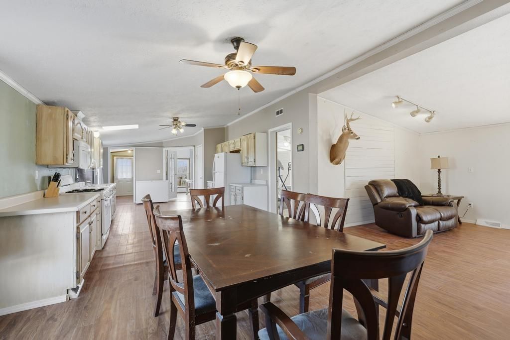 Sitting on 3.5 acres, located one mile from Elm Creek and 1.5 miles from Holister Wildlife area, this manufactured home offers quiet seclusion and space galore! With four bedrooms, plus an office, and a spacious open-concept floor plan, there is room for everyone! The red metal barn is 30'x50', offering a 20' enclosed area with 2 overhead doors and concrete floor, and a 30' covered area that is open to the South and East - perfect for hobbies, storage, projects, ag, or business use. If you're looking for all the perks of country living, at an affordable price point, this is one to check out!