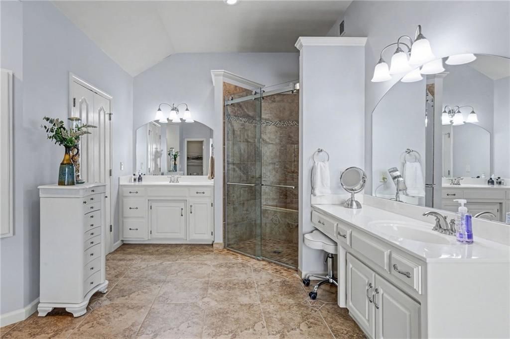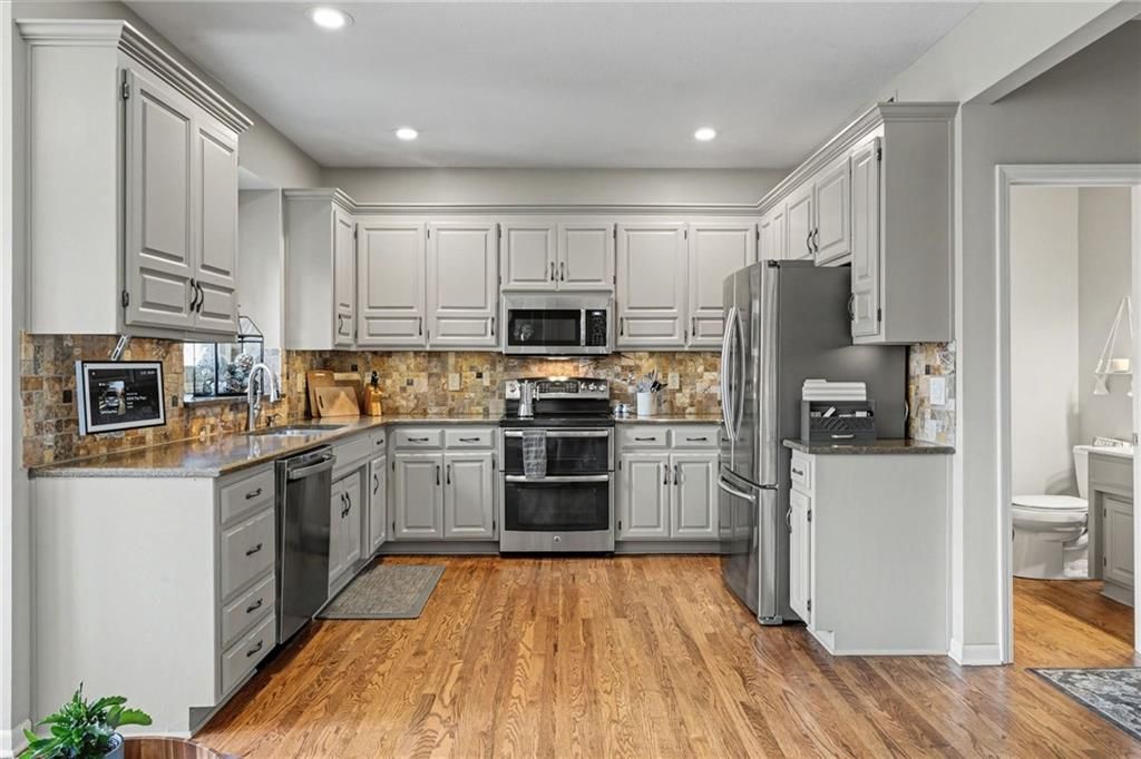 This stunning 2-story, 4-bedroom residence has been meticulously updated with a full Smart Home suite, allowing you to control lighting, climate, and security cameras right from your phone. Beyond the tech, the interior glows with refinished hardwoods and a striking new all-wood staircase leading to a matching upstairs gallery. Enjoy the cozy see-through fireplace in the hearth room kitchen featuring updated painted cabinetry and stainless appliances. The chef's kitchen and basement wet bar both feature zero-maintenance quartz countertops, while smart-controlled blinds in the main living areas offer privacy at the touch of a button. Retreat to a primary suite that rivals any five-star resort, featuring vaulted ceilings and a spa-like bath with a massive zero-entry shower and soaking tub. With brand-new windows (boasting a transferable lifetime warranty), zoned HVAC, and a massive 3-car tandem garage, every detail for effortless living has been handled. ADDITIONAL STORAGE not to miss In master closet there are 2 large WALL panels accessing the attic storage area.....great additional space and there is a ton of storage available in the garage too.