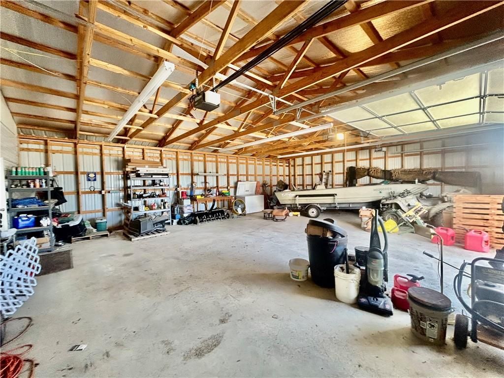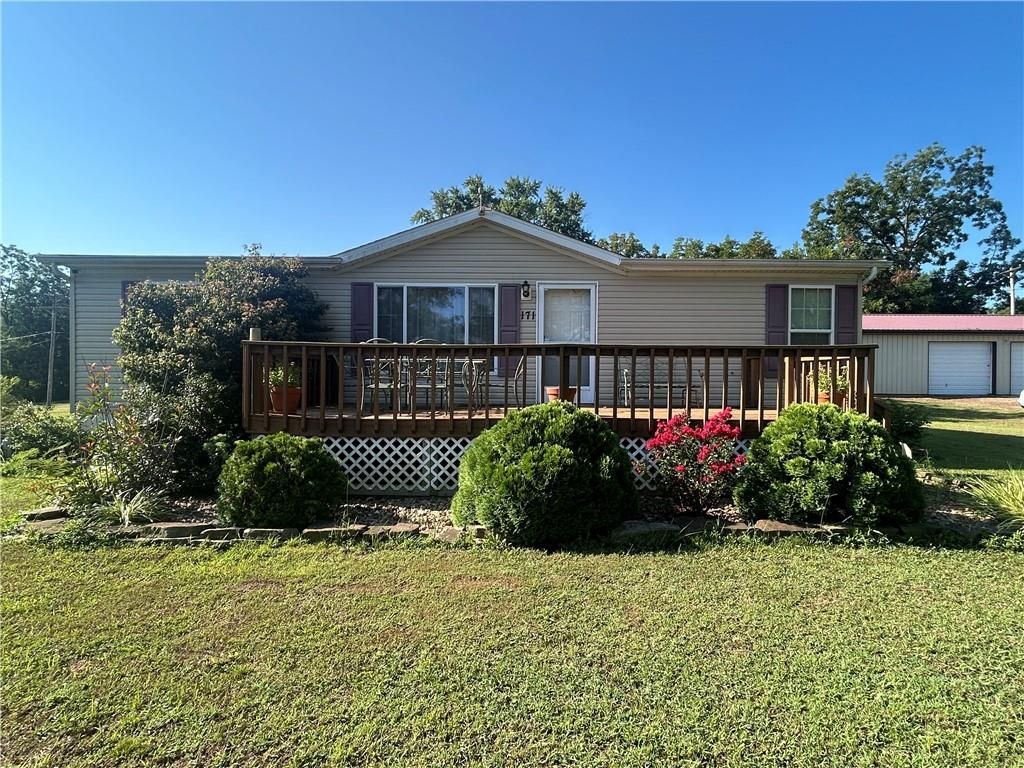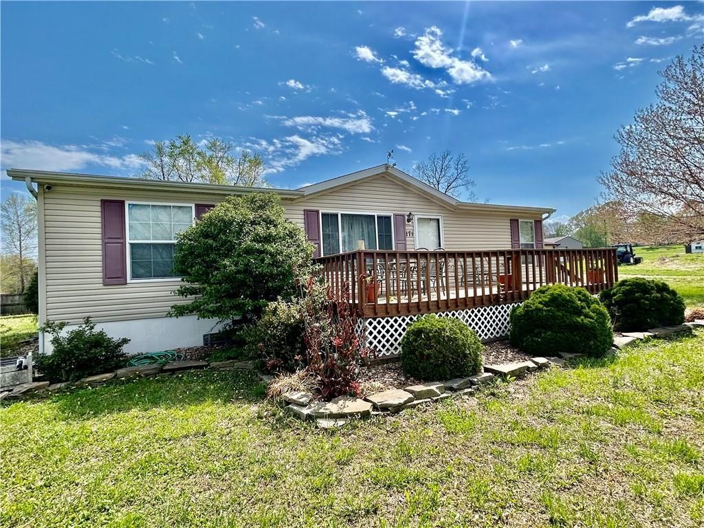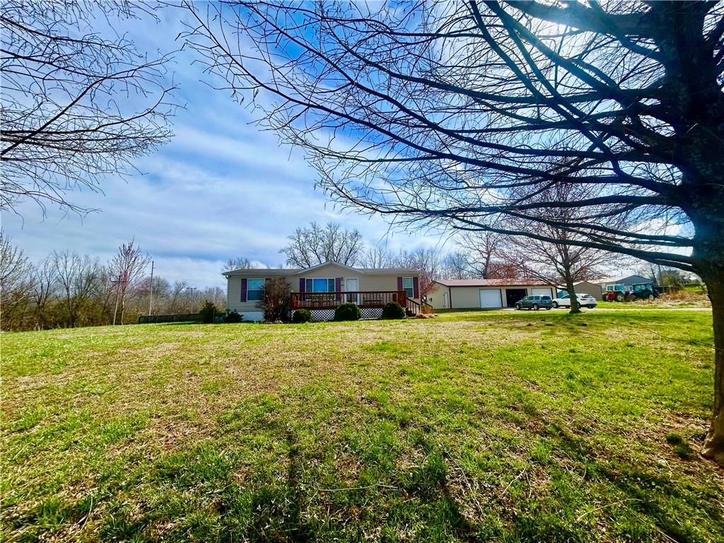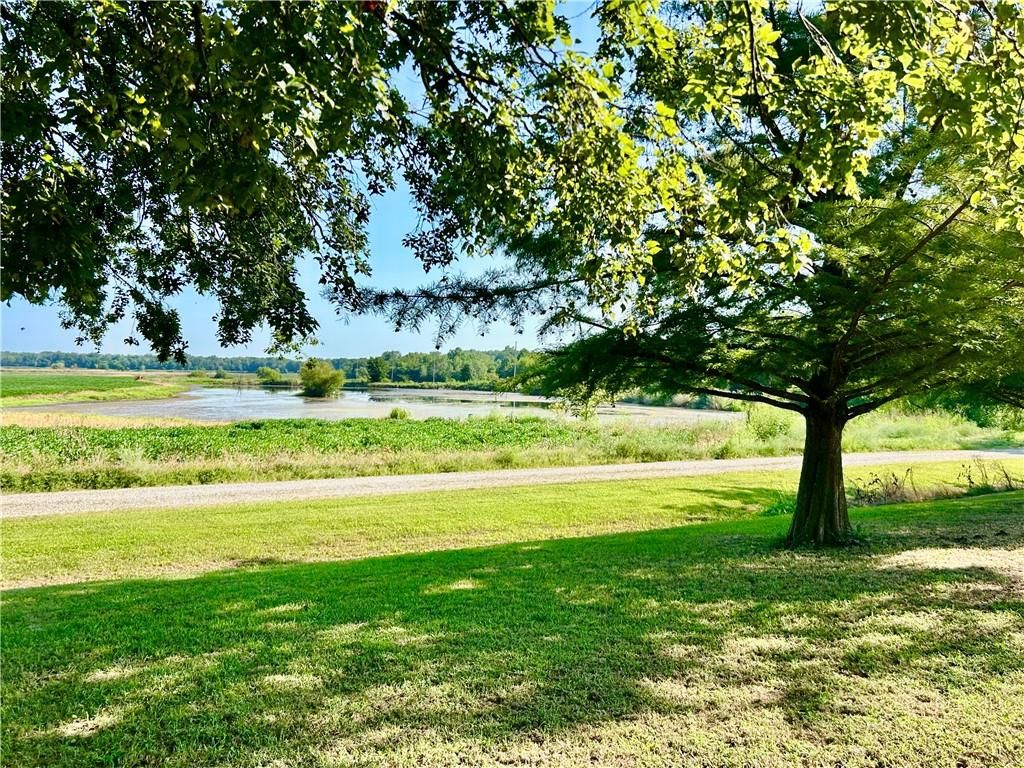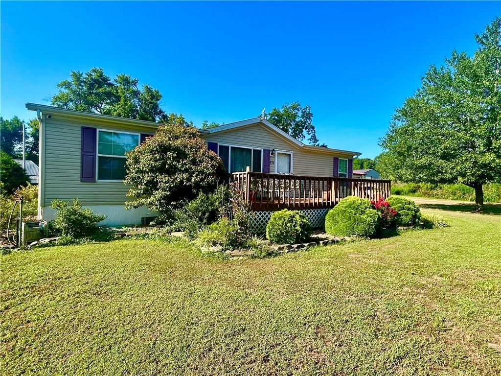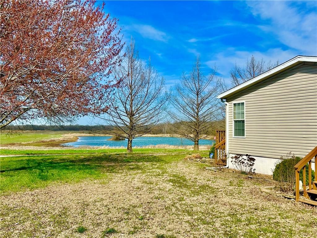 A Green Oasis corner lot and water front view with a comfortable Well maintained manufactured home and massive shop awaits; Newer roof, HVAC and water heater. Wonderful mature trees and landscaping already done. An expansive 3 bay shop has an additional locked hobby room for an office & projects. 3 bedrooms and 2 full baths allow for a comfortable place to spread out. The bedrooms are very nicely sized. Skylights in the kitchen keep the whole main area bright and sunny. Eat at the bar, or in the dining area and enjoy big living areas. Front and covered back decks will allow for wonderful views of the sunrise and sunset while you grill out or sip that morning coffee. Very private and quiet dead end gravel road. NE outer edge of small town. The fishing dock is a public fishing area; fish, or relax and watch.