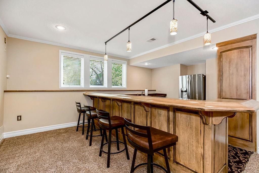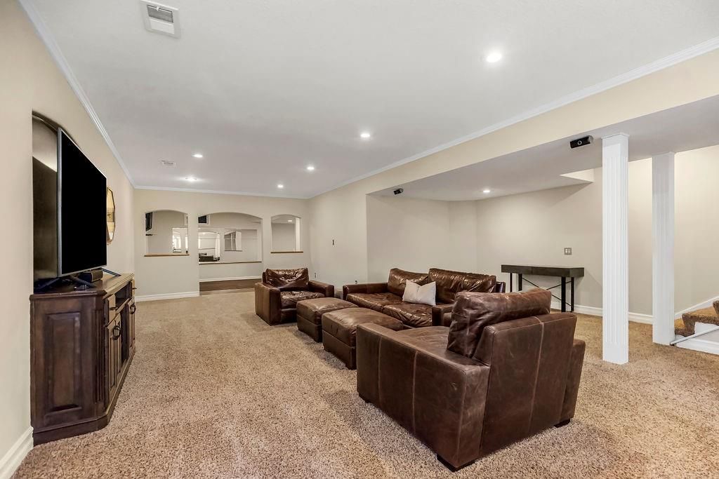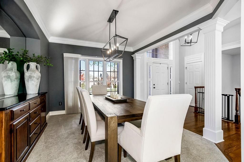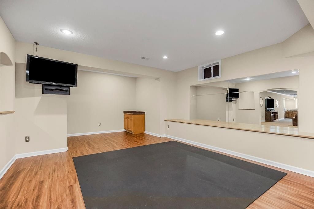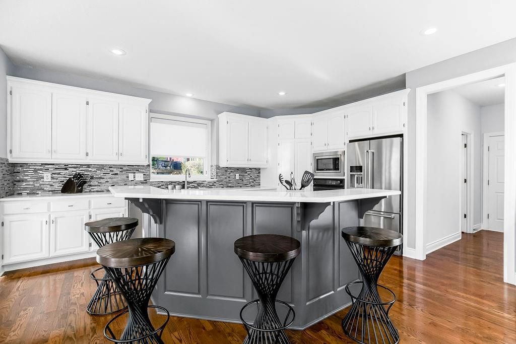Discover the perfect home located in the Estates of Parkhurst in Lenexa. This 1.5 story has it all. The kitchen boasts a large walk-in pantry, quartz counters, gas range, & updated finishes. The home has 4 bedrooms, 3 full baths, and 2 half baths. Other upgrades in this charmer, include the newly renovated primary bath, huge walk in closet in the first floor bedroom, and stack stone fireplaces. The spacious basement is great for entertaining as you can visit the bar in the kitchen area, relax and watch your favorite movies, or exercise in the work out room. This is your home with everything you will want. YOU NEED TO SEE THIS ONE IN PERSON.