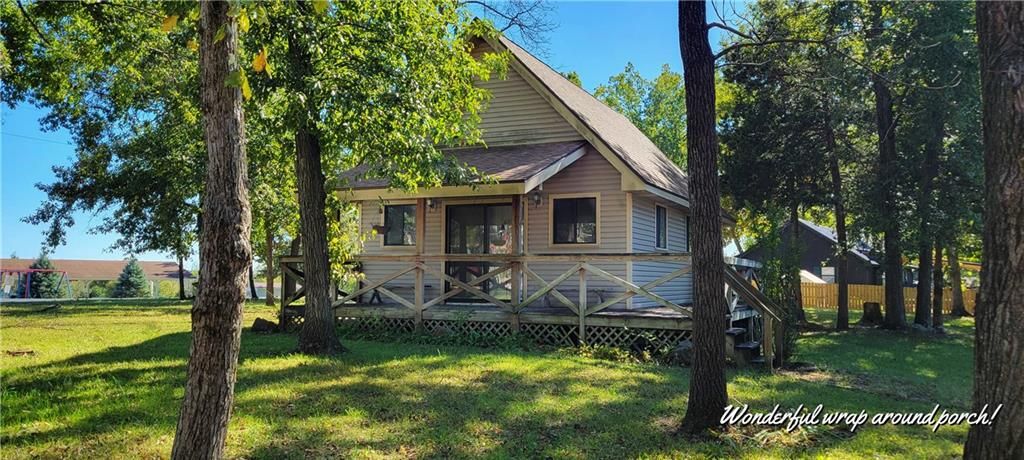 Cozy cabin on large lot with deep detached garage, located in the beautiful Truman Lake subdivision of STERETT CREEK VILLAGE! Soaring ceilings and open floorplan makes for easy lake living. Living room will hold plenty of seating for those weekend guests. Spacious dining area & breakfast bar. Plenty of cabinet space, pantry & appliances are included! Upper loft will hold several beds or would make a wonderful office area. Deep detached garage will hold a fishing boat or a vehicle with room for storage. A wrap-around porch will give you great views from all directions. Located just across the street from the swimming pool, shelter house & pickleball court. This popular subdivision boasts of lots of neighborhood events & full access to Beyonder Marina & restaurants. Just jump on your golf cart & spend the day on the lake. Just a 5 minutes drive to the beautiful, award winning lake town of Warsaw, MO. If you have always wanted a lake house, but couldn't afford it, now is your chance! At this price this one won't last!!