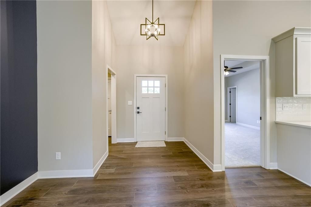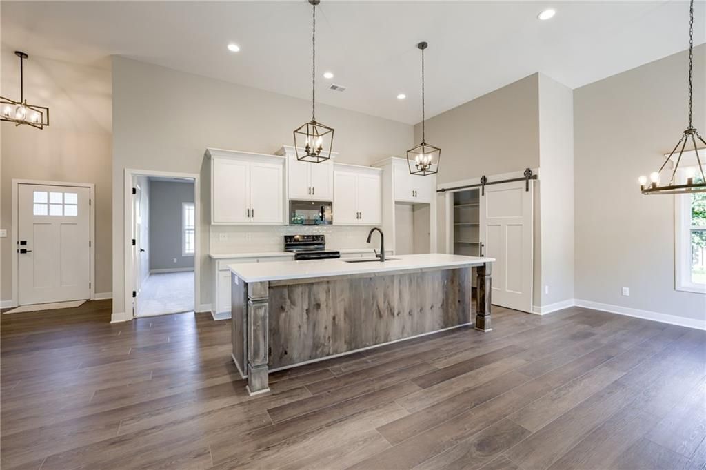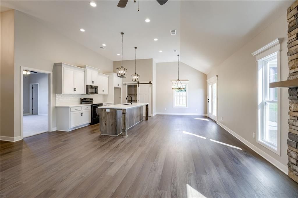This brand new true ranch offers zero entry. No steps! just walk right in! This open plan features high ceilings, fireplace, large stained kitchen island, custom cabinetry, pantry with barn door, quartz countertops and laundry room. Master suite with walk-in closet. Double vanity and walk-in shower. Interior picture may very in colors. Covered porch and extra wide pad. Pull down steps in garage for attic storage. Fridge not included. Located in a craftsman style neighborhood. QUALIFIES FOR USDA HOME LOAN**$0 MONEY DOWN FINANCING