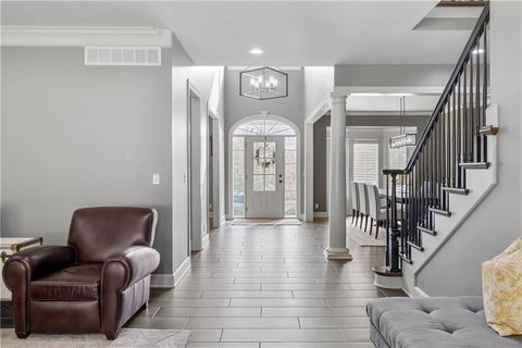 Stunning Renovated Two-Story Home in Bristol Ridge Subdivision! Welcome to this beautifully updated home, nestled in a serene cul-de-sac lot with private treed surroundings. This residence boasts exceptional curb appeal, highlighted by a brand-new composition roof. Step inside to discover a thoughtfully designed interior featuring a modern kitchen with sleek white cabinets, a large center island, stainless steel appliances, and a gas cooktop perfect for culinary enthusiasts. The formal dining room sets the stage for elegant gatherings, while the cozy hearth room, complete with a fireplace and custom built-ins, invites relaxation. The expansive great room is a showstopper, featuring a wall of windows and a stacked stone fireplace that fills the space with warmth and light. A first-floor office offers convenience for remote work or study. Retreat to the spacious primary suite, which includes a charming sitting area and an updated bathroom for your comfort. The large primary closet even has a second laundry hookup for added convenience. All secondary bedrooms are generously sized, each with walk-in closets, ensuring ample storage. The lower level is an entertainer's dream, featuring a vast rec room, a bar with a full kitchen, a media room, and a full bath. There's also a bonus room that can serve as an exercise room or a fifth bedroom, making it versatile for your lifestyle needs. The perfect place to call home for the holidays, this gem offers warmth, style, and space for gatherings or cozy nights. Don t miss the chance to make it yours schedule a showing today!