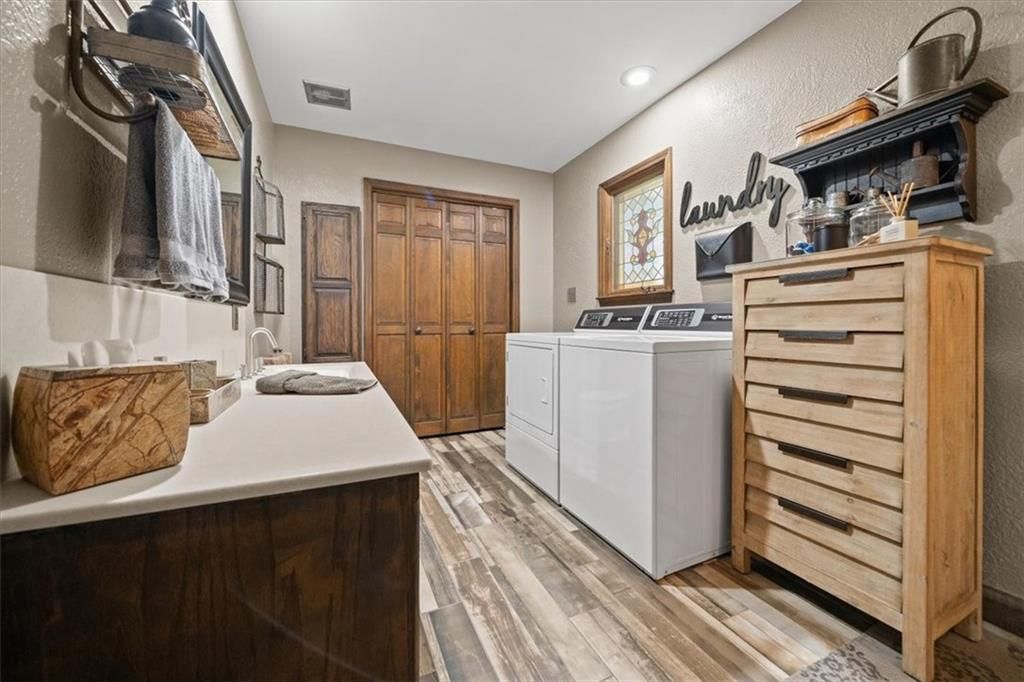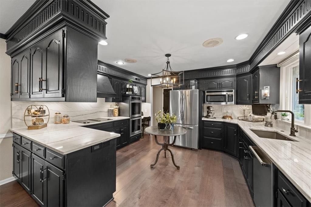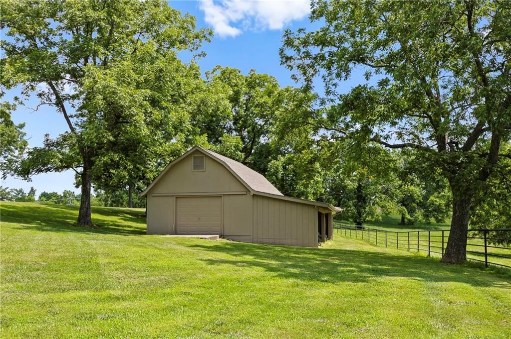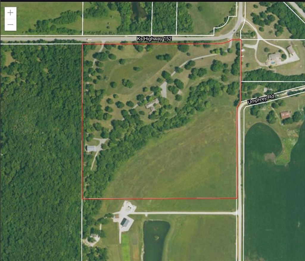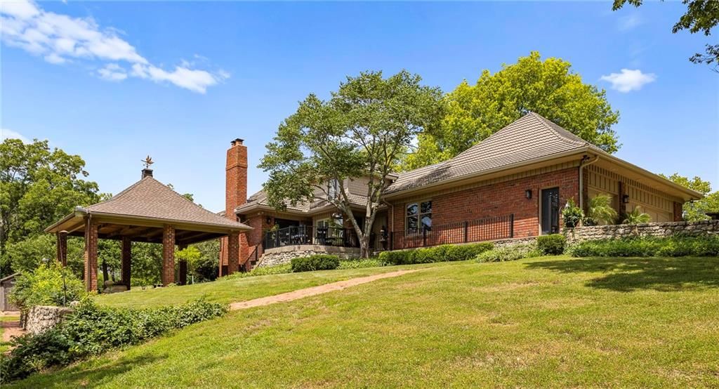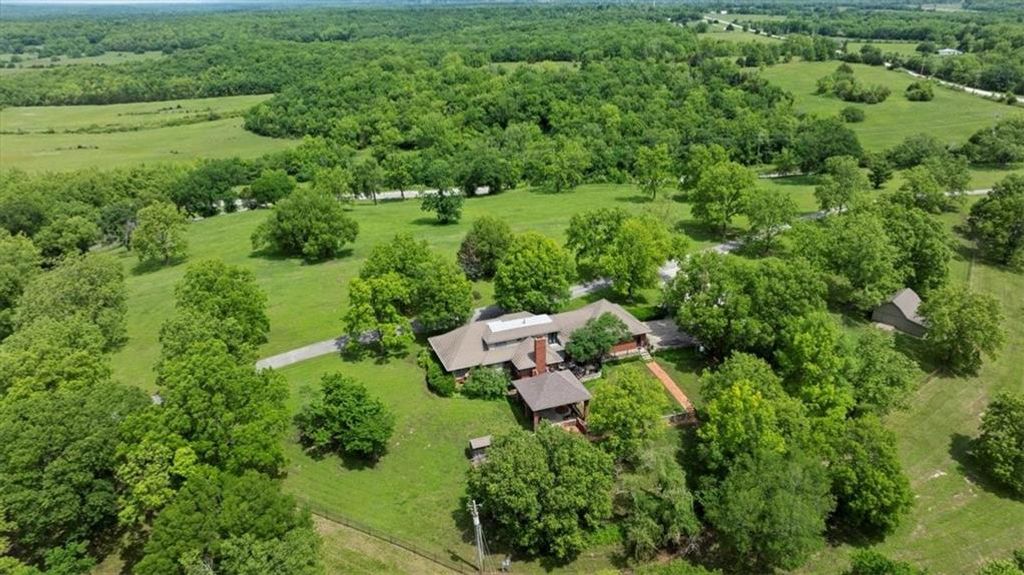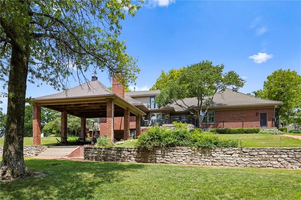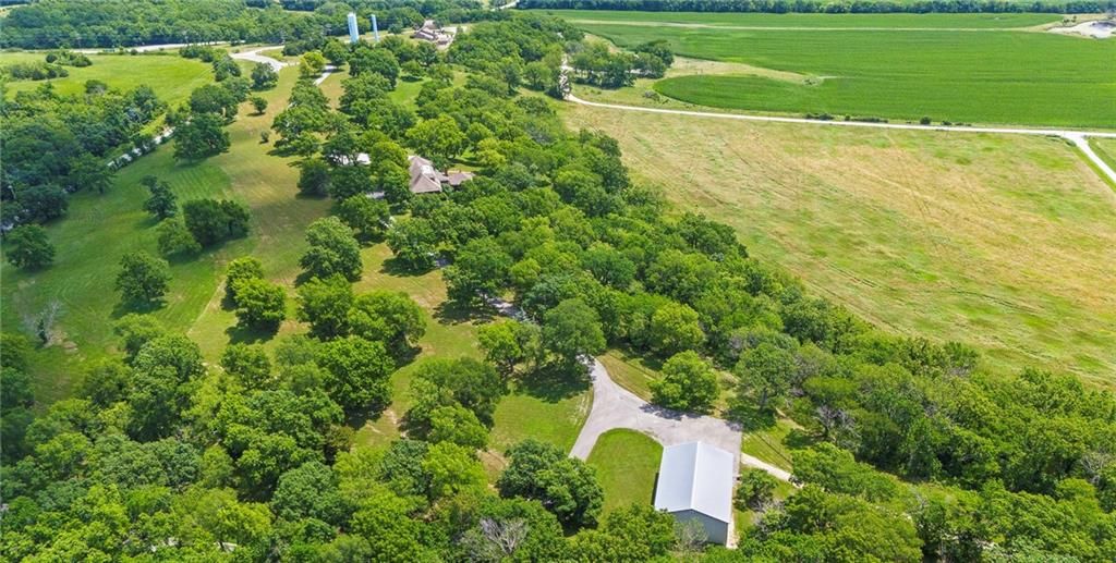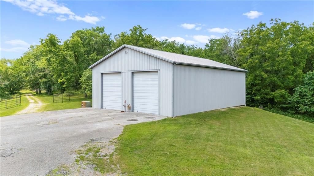 Experience breathtaking panoramic views and total tranquility at this custom-built, all-brick estate, perfectly situated on 38.8 acres of rolling countryside. Thoughtfully designed and impeccably maintained, this stunning property offers the ideal blend of luxury, functionality, and seclusion - just a short drive from Overland Park and Kansas City. Inside, you'll find quality craftsmanship throughout, including a fully remodeled kitchen at the heart of the home. Recent updates span both the main and upper levels, featuring new flooring, interior paint, modern lighting and plumbing fixtures, and beautifully renovated bathrooms. The expansive finished basement is an entertainer's dream, complete with a second full kitchen, cozy fireplace, wet bar, and generous space for relaxing or hosting guests. Step outside to enjoy a newer stamped concrete patio with elegant iron railing - perfect for soaking in the sunrise or winding down at sunset. Most windows have been replaced, and the durable stone-coated steel/asphalt roof with new 6 gutters ensures long-term peace of mind. Additional features include a circulating hot water system, newer HVAC units, and a recently replaced hot water heater. Two versatile outbuildings complete the property: a 40x60 insulated shop with electric strip heat, water, and dual 220V RV hookups, plus a 20x28 utility building with lean-to and loft - ideal for storage, hobbies, or workspace. This is more than a home - it's a rare opportunity to enjoy refined country living with the convenience of nearby city access. Don't miss the first-ever chance to make this amazing property yours!