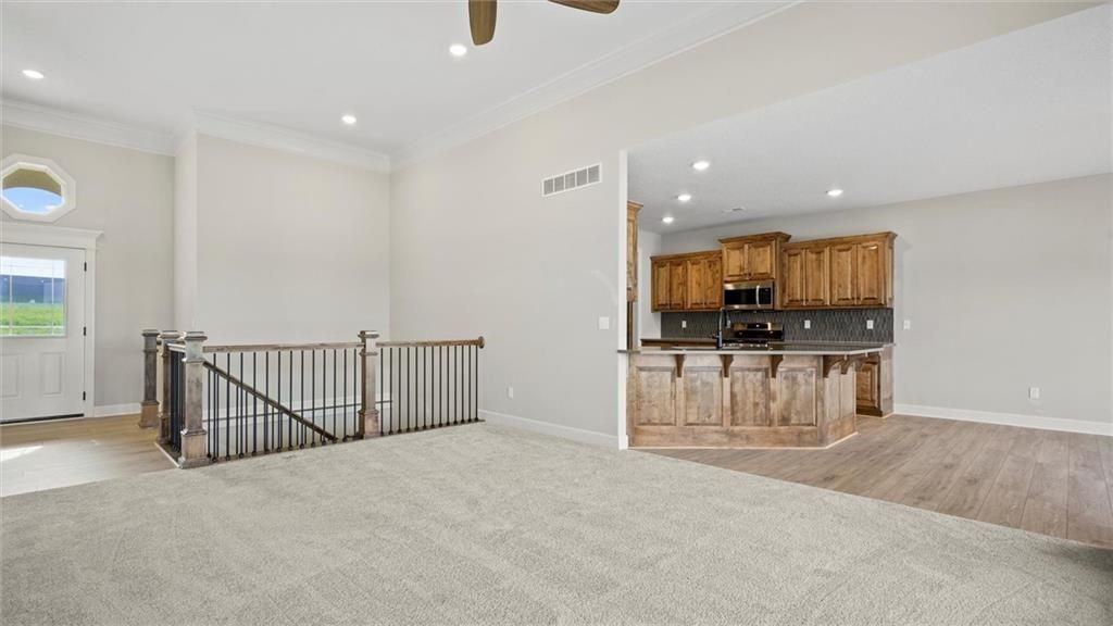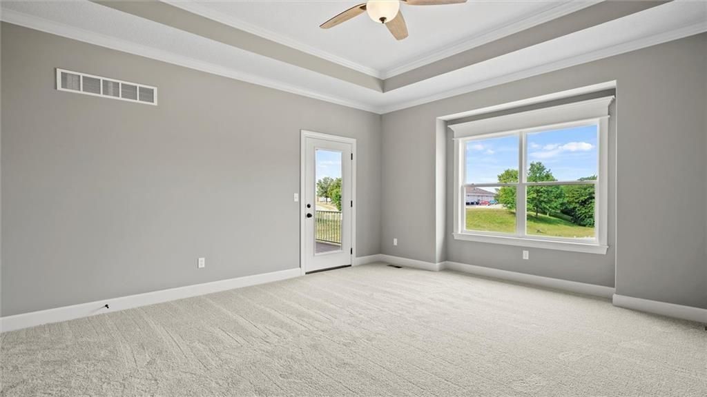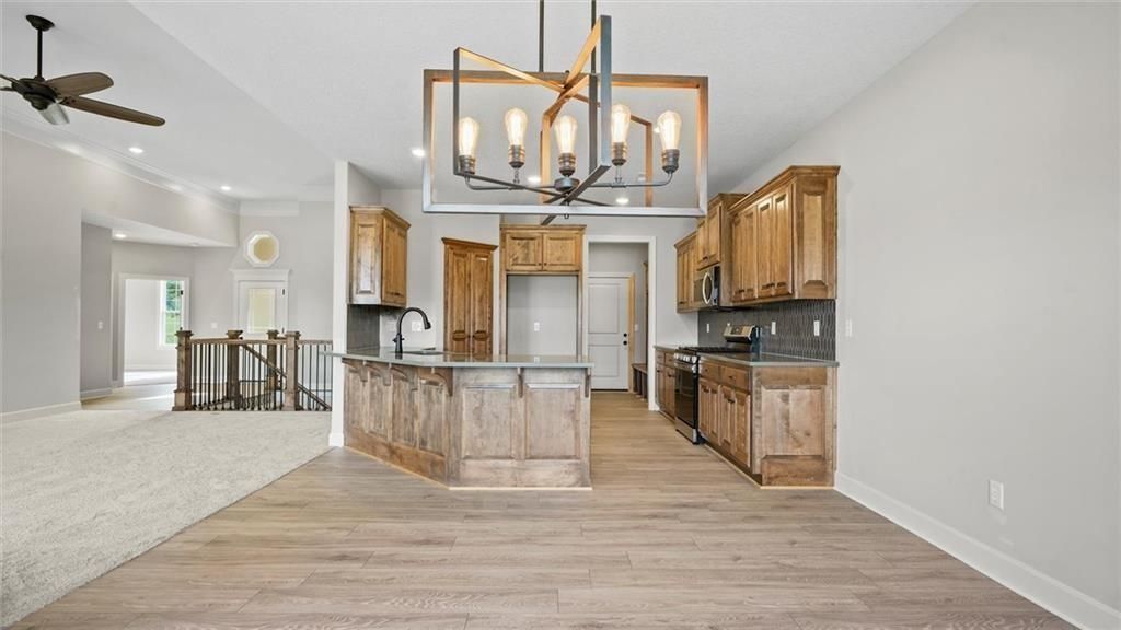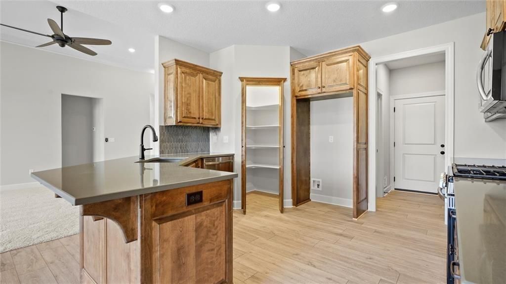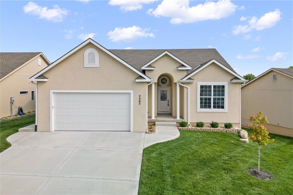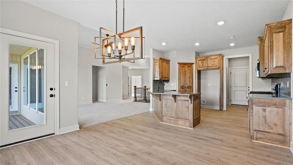 Back on market. Buyers contingency fell though. Welcome to your dream home in this maintenance free - 55 and over age restricted neighborhood! This stunning new construction boasts almost 1600 square feet on the main level and an additional estimated 1300 square feet of finished basement area, giving you plenty of room to spread out and make yourself at home. Conveniently located near shops and with easy access to the 69 highway, this home offers the perfect combination of privacy and accessibility. As you enter the home, you'll immediately notice the large semi-open floor plan and abundance of natural sunlight, thanks to the generously sized windows throughout. The main level features two spacious bedrooms, with a third bedroom located in the walkout basement. The master bedroom is a true retreat, complete with a large master bath featuring a walk-in closet, double-headed shower, and double sink. Plus, with a private entry door to the covered back porch, you'll feel like you have your own private oasis. The beautiful kitchen is a chef's dream, with custom cabinets, a walk-in pantry, and custom countertops. The laundry is conveniently located off the kitchen, along with a storage area to kick off your shoes and jacket. This home doesn't disappoint in upgrades, with high-end finishes and attention to detail evident throughout. The finished basement provides even more living space, with a large living area that walks out to the backyard. There's also one large basement bedroom with a full bath next to it, perfect for guests. Downstairs includes 2 additional storage rooms, so you'll never run out of space for all your belongings. Outside, the neighborhood is maintenance-free to include mowing as well as snow removal with a walking trail and a nearby neighborhood pool for your enjoyment. The home also includes a water sprinkler system maintained and paid by the HOA. With a two-car garage, you should never have to worry about parking again.