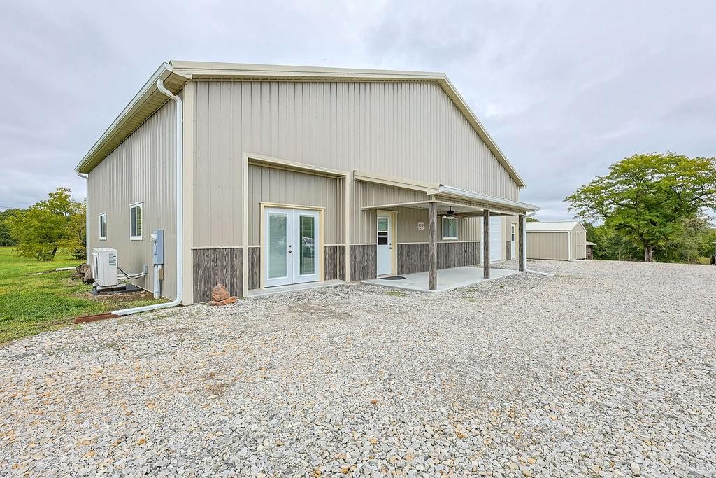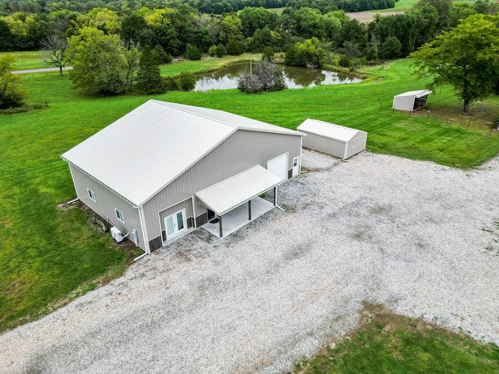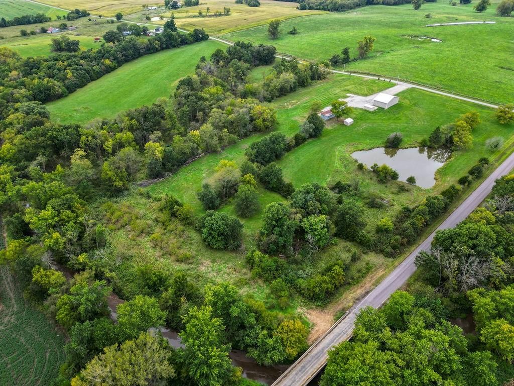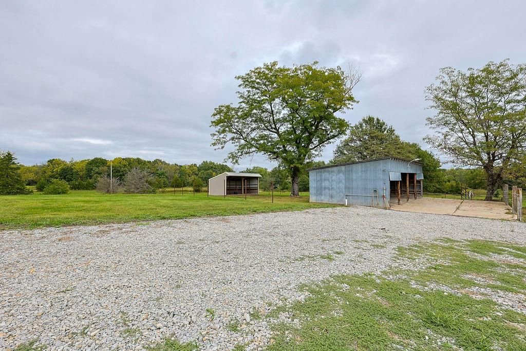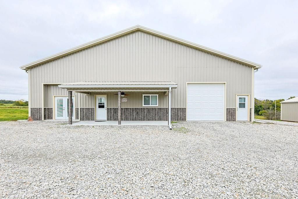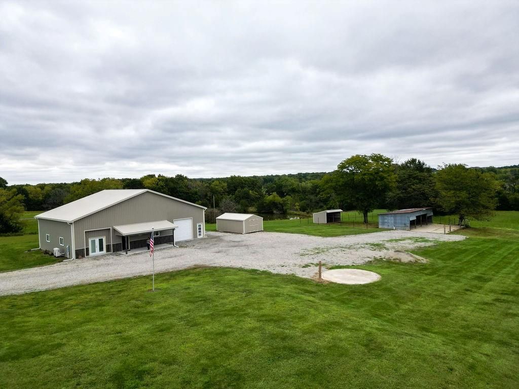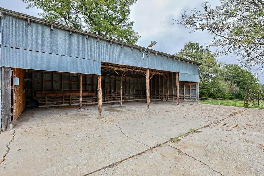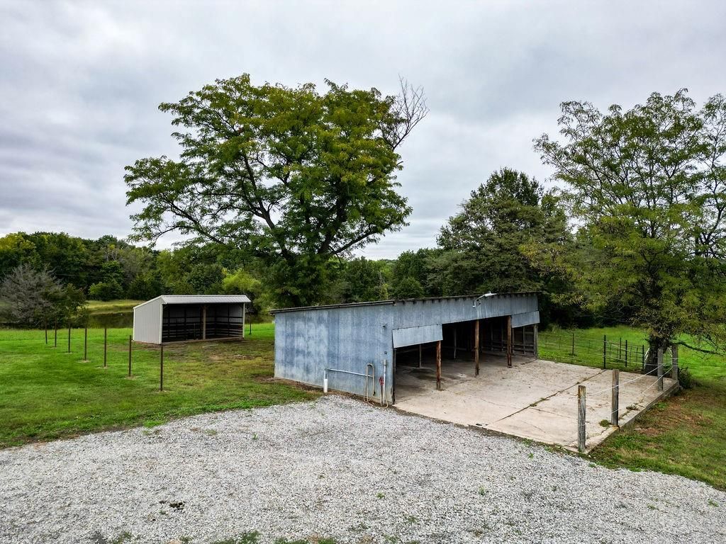 Fabulous 30.6 acre property at the corner of Hedge and W blacktop Highway! The acreage has a nice mix of pasture and timber and pond and creek! A GREAT HUNTING PROPERTY!! A beautiful barndo with a 1 bed, 1 bath huge living room and open kitchen concept! Several outbuildings! 1,600 sq ft (40 x 40) living space on the house and the garage is 800 sq ft (20 x 40) Plenty of room to renovate the main structure to suit your needs if you need more bedrooms or bathrooms!
