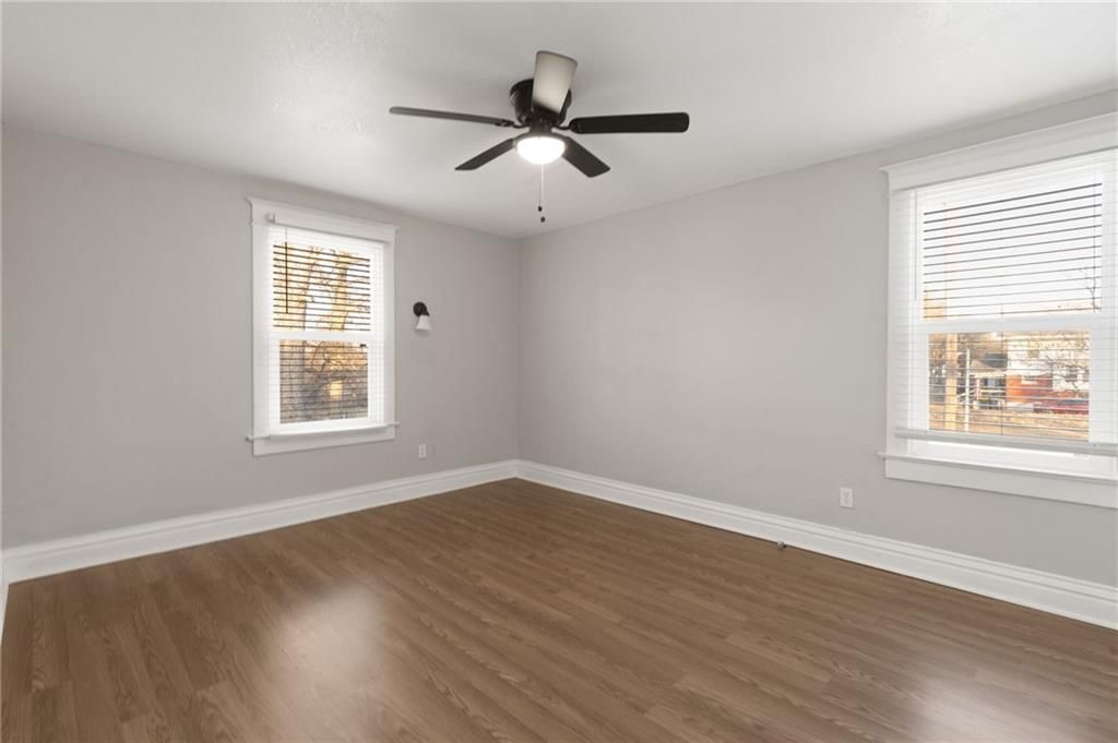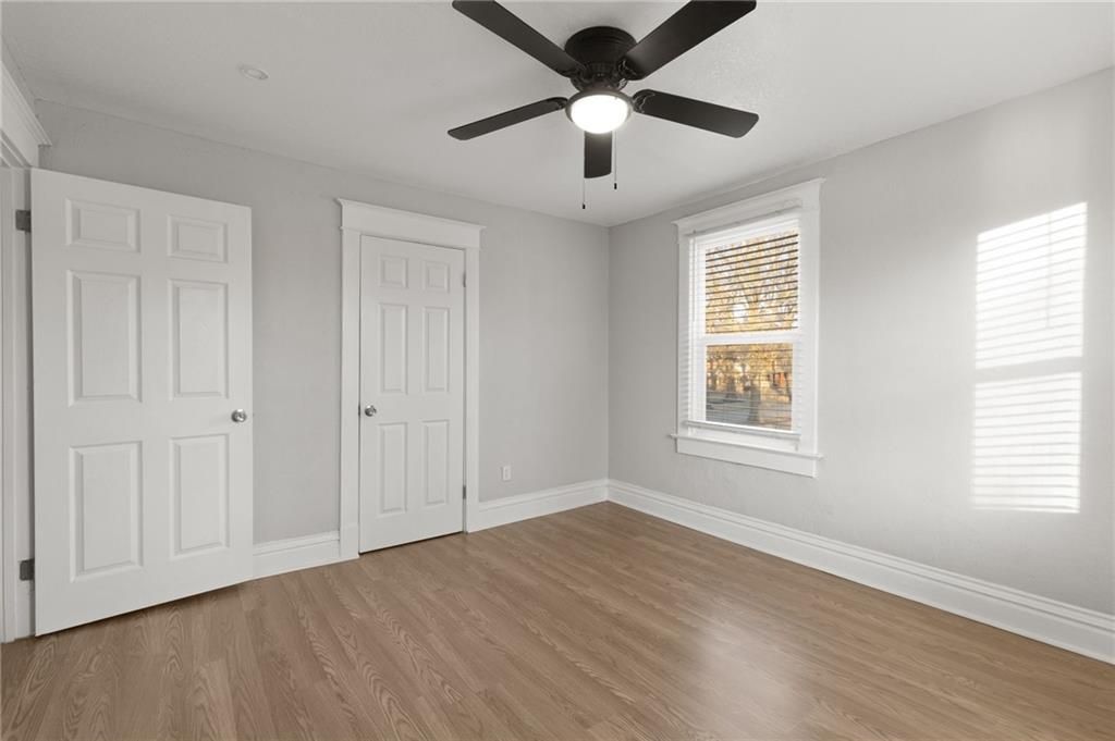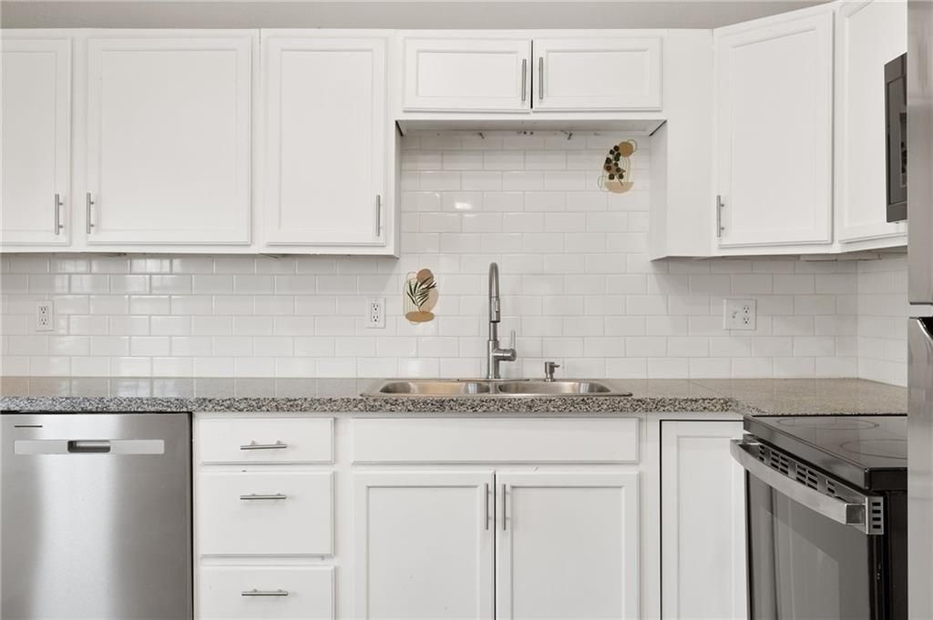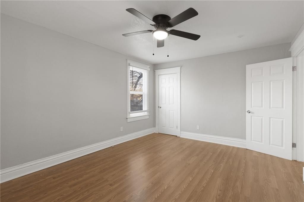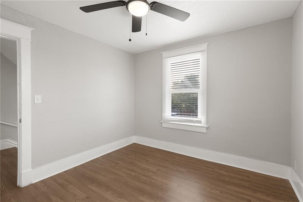 Step into this beautifully updated home where every detail has been thoughtfully refreshed. The bright, open foyer welcomes you with gleaming hardwood floors, soaring ceilings, and an elegant staircase that sets the tone for this stunning property. Natural light pours through oversized windows, highlighting the fresh neutral paint and crisp white trim throughout. The heart of the home features a completely renovated kitchen with white shaker cabinetry, sleek granite countertops, modern subway tile backsplash, and stainless steel appliances - perfect for both everyday living and entertaining. Retreat to the spa-like bathroom showcasing designer marble-look tile flooring, modern fixtures, and a dramatic black accent wall in the shower/tub area that creates a striking contemporary feel. The spacious backyard offers mature trees and endless potential for outdoor enjoyment. This home combines classic architectural charm with modern updates - truly a rare find that's move-in ready and waiting for you!