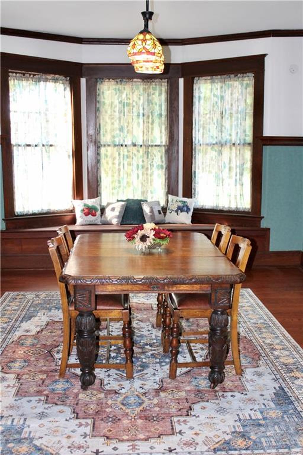 Experience small-town living at its finest with this exquisite 5-bedroom, 3-bath residence - where timeless elegance meets modern comfort. This beautifully maintained home is a true standout, offering classic craftsmanship, rich woodwork, and custom built-ins that speak to a bygone era of quality and care. The remodeled kitchen blends historic charm with thoughtful updates, while fresh paint throughout highlights the spacious, light-filled interiors. Large sunroom just off the kitchen creates the perfect spot for morning coffee or quiet reading. The formal dining room, complete with pocket doors, invites unforgettable gatherings, and the inviting living room features a striking electric fireplace that adds warmth and style. Outside, the welcoming front porch offers a peaceful space to relax and enjoy the charm of this friendly community. A full basement provides abundant storage, and recent updates - including a brand-new roof (2023) and new HVAC (2024) - are already complete. This is truly a home that must be seen in person to be fully appreciated. From its elegant details to its warm, welcoming spaces, every inch of this property reflects pride of ownership. Schedule your private tour today and discover everything this exceptional home has to offer.