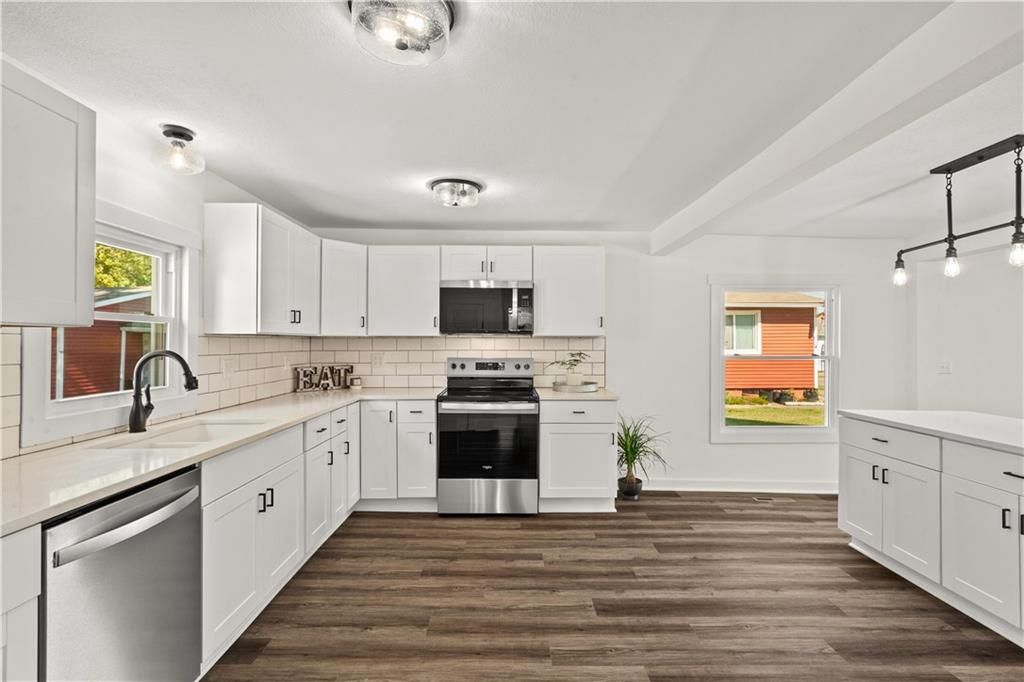 Beautifully updated 3 bedroom, 2 bath home with a large mud room/laundry on nearly half an acre backing up to park! This property has been renovated with a new roof, all new thermal windows, new HVAC, updated electrical with a new 200 amp breaker box, new siding on garage, front and back of house. The detached 2 car garage has a Clean BASEMENT and sump pump. Inside you'll find new luxury vinyl plank flooring, new carpet and fresh paint. The kitchen offers plenty of storage with a pantry, center island, loads of new cabinets, quartz counter tops, new Range, microwave and dishwasher. Bathrooms have been completely refreshed with new tub, showers, vanities and toilets. With its prime location, modern updates, and spacious layout, this home is truly move-in ready! Owner/agent