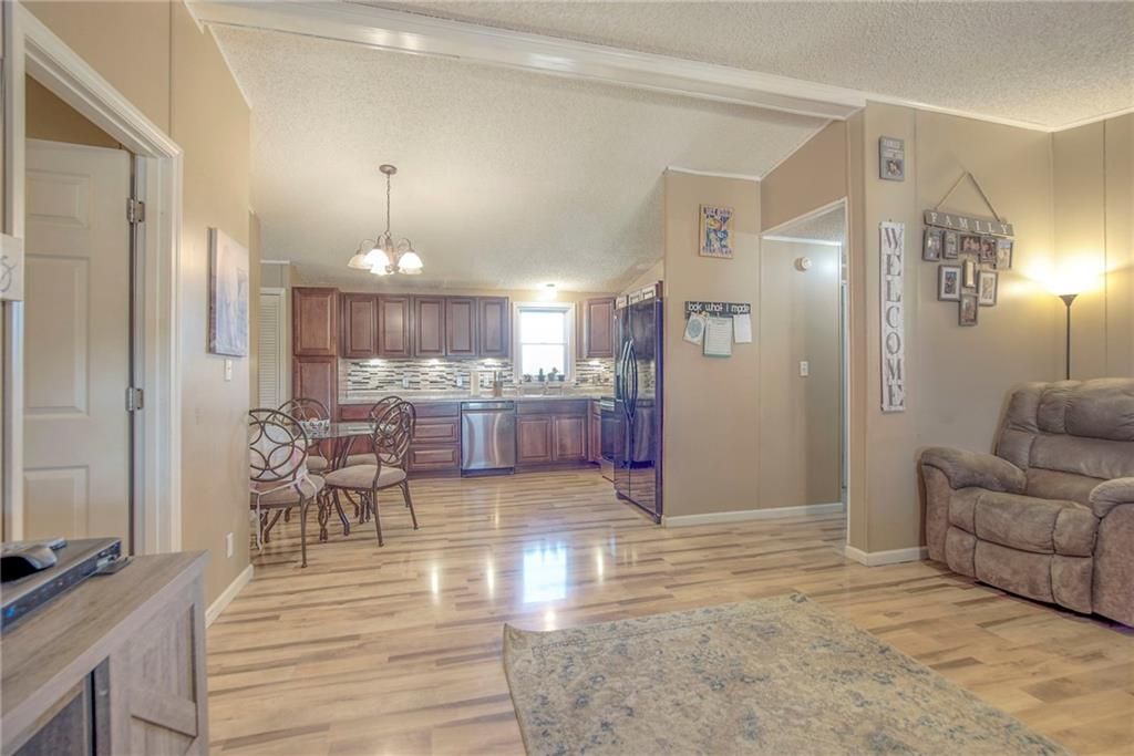 You will fall in love with this cozy home nestled on 17.5 acres!!! Serene setting in the country located on pavement and quick access to 169hwy. Offering gorgeous views, 2 ponds (top pond is stocked) and mature trees. Large Quonset 35x45 for storage. Large, detached shop/garage 60x48 with concrete floor. You will fall in love with the open and spacious living/kitchen. Manufactured home with NEW ROOF (in past year), newer windows and newer hot water heater. Don't miss this opportunity to own acreage!