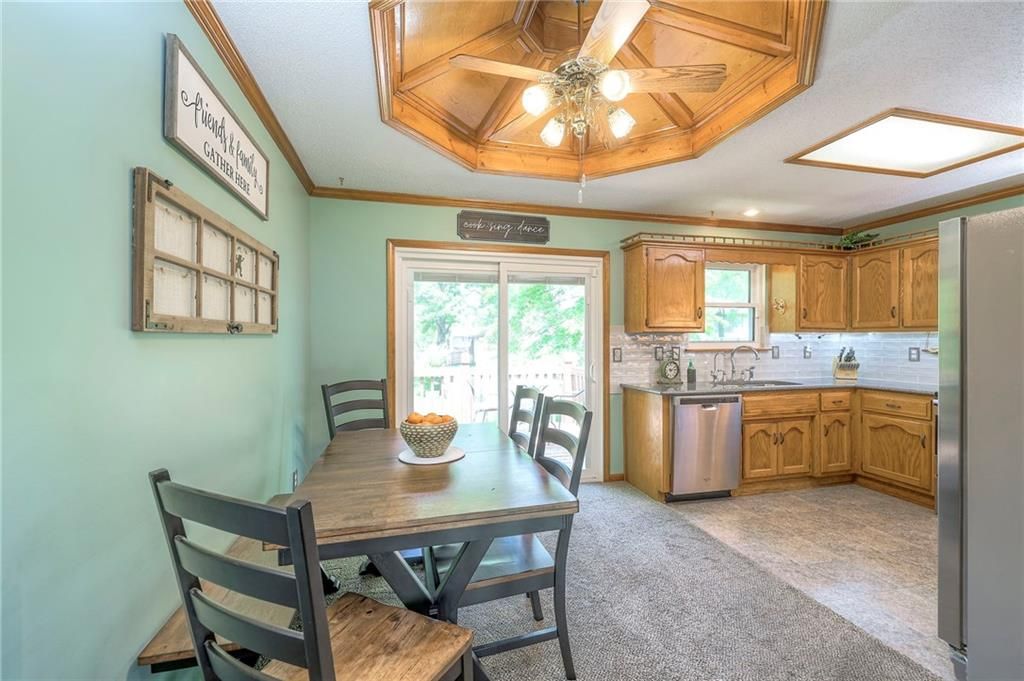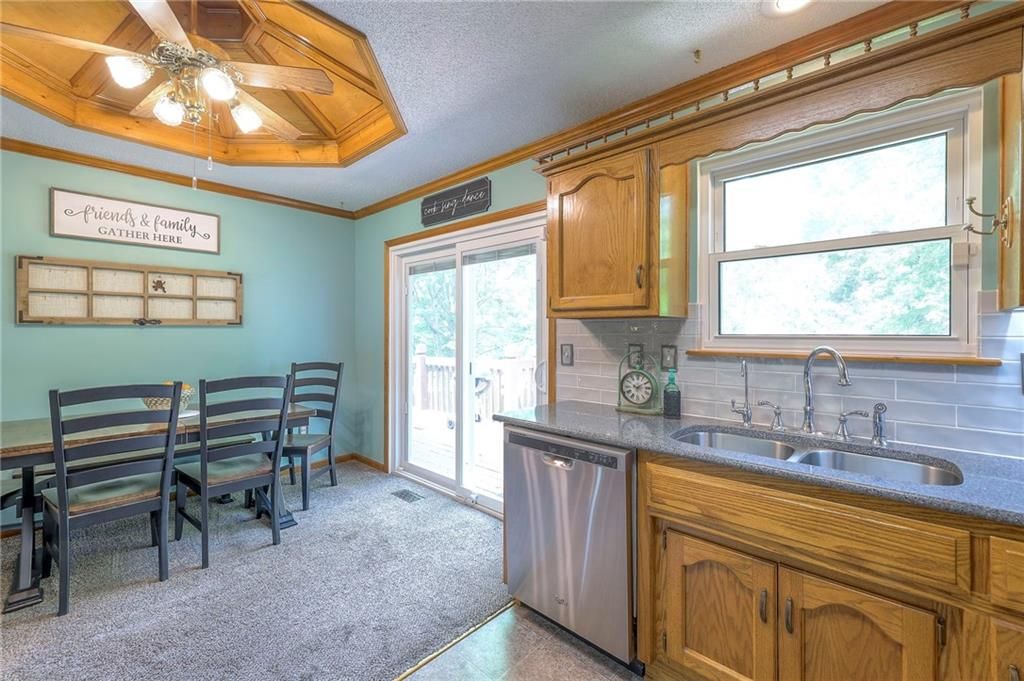Tucked away on a beautifully treed lot, this split-level home is full of space, comfort, and charm. The furnace is just 3 years new, and the water heater is only 2 years new! Inside, you'll find a bright and airy great room with vaulted ceilings and tons of natural light. The kitchen has plenty of cabinet space, stainless steel appliances, and walks right out to a big deck - perfect for sipping your morning coffee or grilling with friends on summer nights.The primary suite is cozy and comfortable, with its own access to the deck for a little extra peace and quiet. Two more bedrooms, a full bath, and handy bedroom-level laundry make everyday living easy. Downstairs, there's a spacious family room that's great for movie nights, game days, or just hanging out. And the oversized two-car garage gives you plenty of storage and room to tinker. Welcome Home! Taxes and SqFt per county record. Room sizes approx. No preferences or limitations or discrimination because of any of the protected classes under Fair Housing.