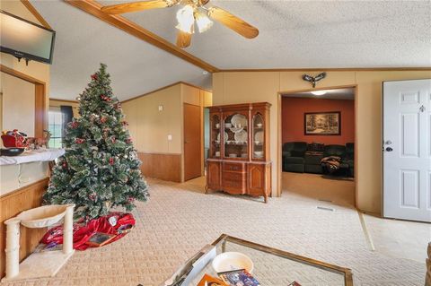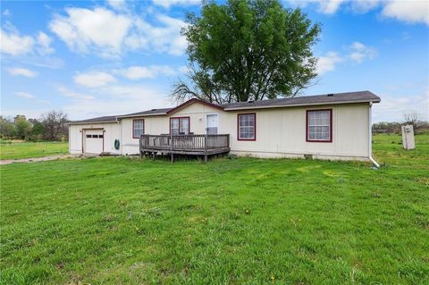 Peaceful Acreage with Tremendous Potential! Set on 2.97 spacious acres, this 3-bedroom, 2-bathroom double-wide home offers a rare opportunity to enjoy country living with room to make it your own. Situated on a permanent foundation and featuring an attached 2-car garage, the home provides a solid footprint for renovation or personal updates. Inside you'll find a functional layout with generous living space, including a large kitchen, dining area and primary suite with a private bath. Whether you're looking for an investment project, a full-time residence with land, or a weekend getaway, the potential is here. Outside, the nearly 3-acre lot offers plenty of room for gardening, recreation, or future outbuildings. Located just minutes from Osawatomie, this property combines convenience with the serenity of rural living. Home is being sold it its present condition.