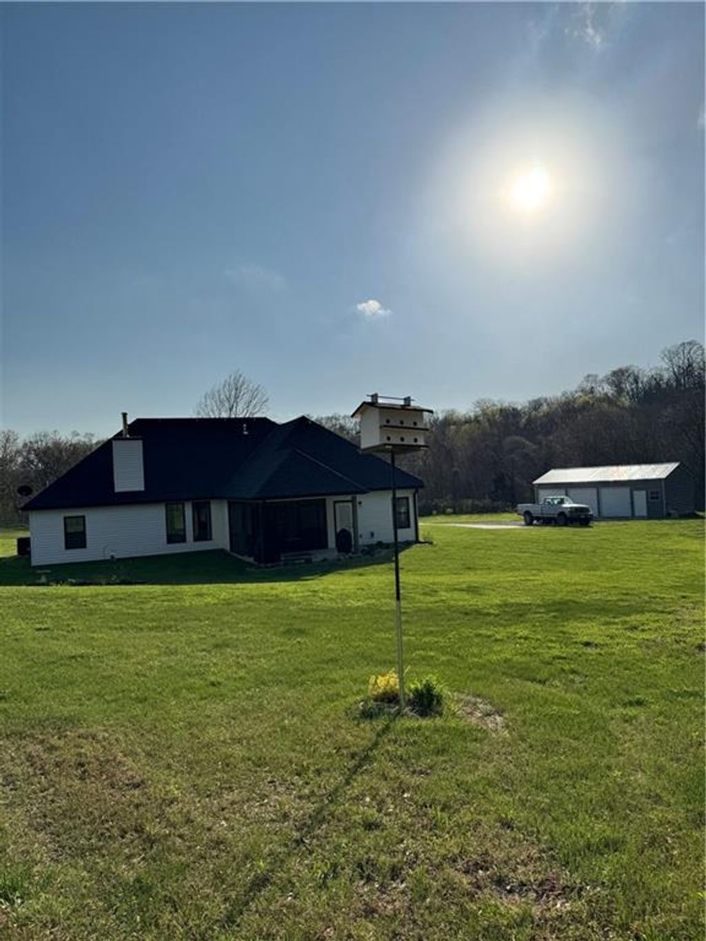 Welcome to your serene retreat! This stunning all-level home sits on a sprawling 10-acre lot, with the possibility of purchasing an additional 11 conjoining acres (MOL) at an additional cost. This property offers both tranquility and plenty of space for outdoor activities. Whether you're looking to enjoy the peaceful countryside or indulge in some outdoor adventures, this property has it all. This newly built (2021) 3 bedroom, 2 bathroom, all level home provides a spacious layout designed for comfort and convenience. Cozy up by the wood-burning fireplace while enjoying views of your beautiful property. The home features a chef's dream kitchen with granite countertops, a large island, walk-in pantry, and stainless-steel appliances, including a gas stove. Perfect for family gatherings, the dining room flows into a screened-in sunroom and a covered patio, where you can take in the breathtaking views of the surrounding scenery. Enjoy privacy and luxury with a spacious en-suite bathroom featuring a double vanity, soaker tub, and a large walk-in shower. The master suite also boasts his and her walk-in closets, providing ample storage space. Outdoors you will find a 3 stall, concrete shop ideal for workshops, storage, or hobby space. You will also find cattle fencing surrounding the property and a large chicken coop, making this the perfect spot for farming or raising livestock. Beautiful landscaping surrounds the home with a variety of fruit trees, offering fresh produce throughout the seasons. With an abundance of mushrooms, deer, and turkeys, this property is perfect for hunters and nature enthusiasts alike. This is a rare opportunity to own a gorgeous country home with all the space and features you've been looking for. Whether you're seeking a peaceful retreat or an active farm lifestyle, this property offers everything you need. Schedule your private tour today and come see all that this incredible home has to offer!
