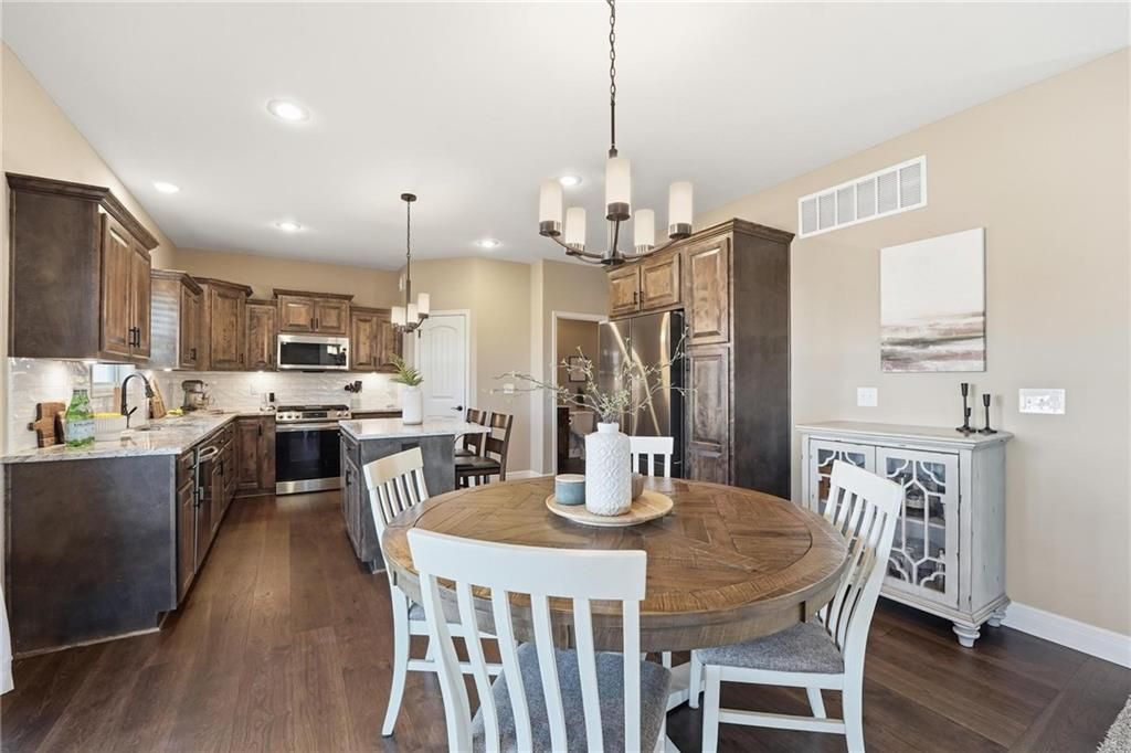 The kind of floor plan that just works - open, bright, and designed for how people live today. This nearly new 2024 Waterford two-story offers 4 bedrooms, 2.5 baths, and 1,966 sq ft, plus a 3-car garage, a fully fenced backyard, and a walk-out basement for future flexibility. The main level features an easy open-concept flow with a well-appointed kitchen with island + pantry, a spacious great room anchored by a gas fireplace, and convenient access to outdoor living - perfect for everyday life and entertaining. Upstairs, unwind in the private owner's suite with a large walk-in closet, double vanity, and walk-in shower, plus three additional bedrooms to fit guests, a home office, or hobbies. Downstairs, the walk-out basement is already stubbed for a future bathroom, giving you a head start on adding finished space later while still enjoying excellent storage today. Outside is where this home really shines: an extended deck with steps, an extended concrete patio, and a completely fenced backyard backing to an elementary school - ideal for play, privacy, and convenience. Neighborhood amenities include a pool and play area with an annual HOA of $815.Since the home was built, the sellers have made meaningful outdoor improvements, including adding a full fence and extending the deck with new stairs down to the backyard - a major upgrade in both usability and everyday convenience. Additional highlights include a 3-car garage, covered deck, and patio extension, plus energy-conscious features and Gerken thermopane windows. HOA amenities include a pool and play area.