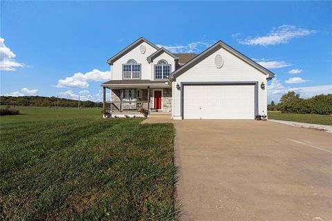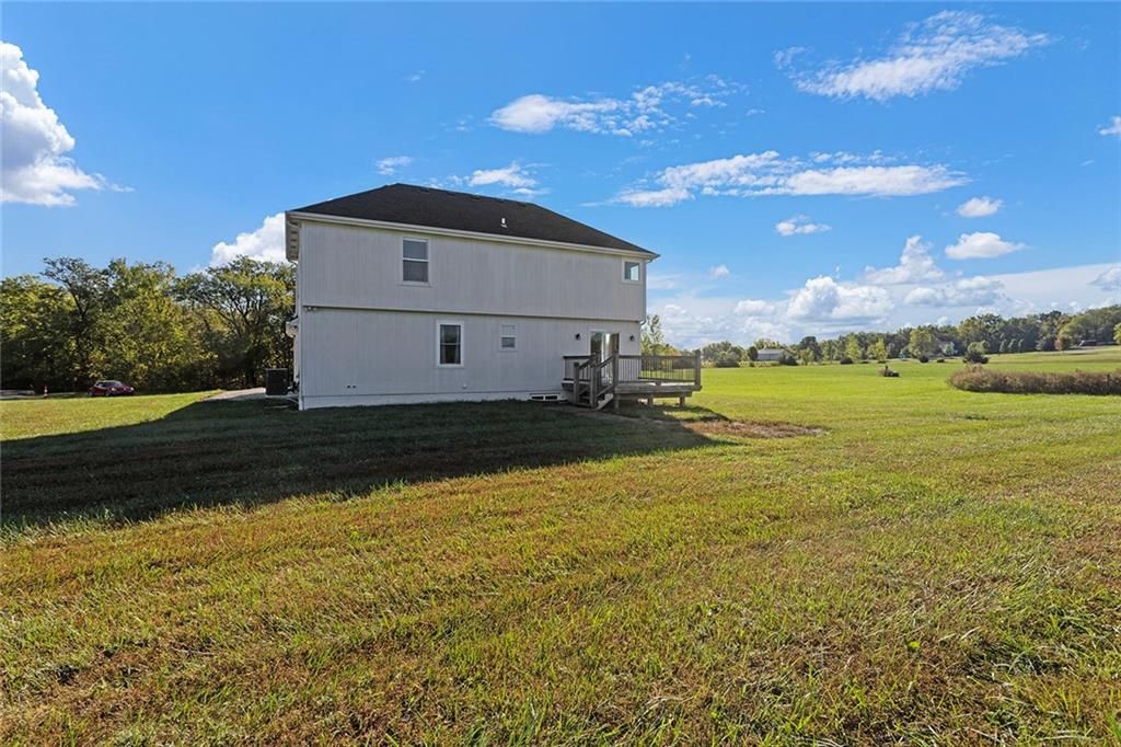 Welcome to 4373 Hackberry Lane, where peaceful country living meets modern comfort. Nestled on 5 flat acres in the Odessa School District, this stunning 4-bedroom, 4-bathroom home offers the space, privacy, and functionality you've been searching for. Step inside to an inviting home filled with natural light. The spacious eat-in kitchen features custom cabinetry, ample counter space, and a large dining area perfect for gatherings. The living room offers beautiful views of the surrounding acreage, making it the perfect place to relax and unwind. The tucked away family room offers a cozy fireplace, and extra room to entertain. The primary suite provides a private retreat with an ensuite bath, and walk-in closet. Downstairs, you'll find a finished area ideal for a 4th bedroom, entertaining, a home gym, or an office, with plenty of room for your lifestyle needs. Outside, enjoy the wide-open land featuring a large shop with electricity, perfect for hobbies, storage, or business use. A peaceful pond adds to the property's charm, making it ideal for nature lovers or anyone craving space to roam. Located just minutes from Interstate 70, this property offers quick access to nearby towns, shopping, dining, and the Kansas City area, all while maintaining the tranquility of rural Missouri living. Additional 5 acres available, with utilities in place, for buyers seeking more land.
