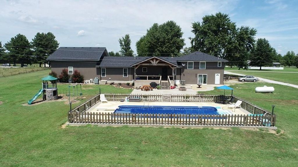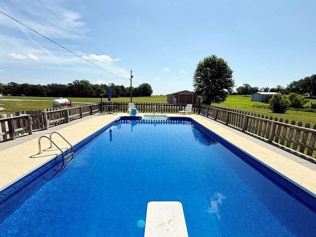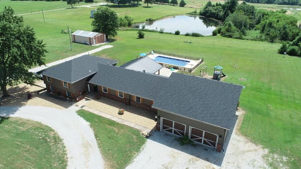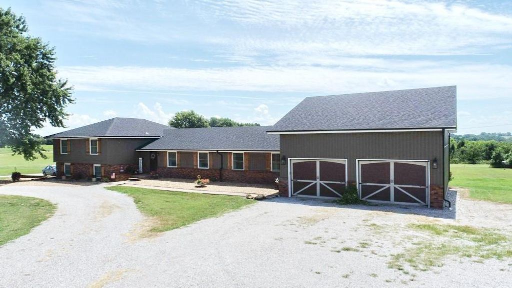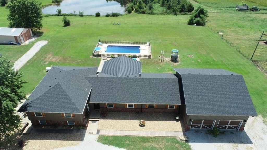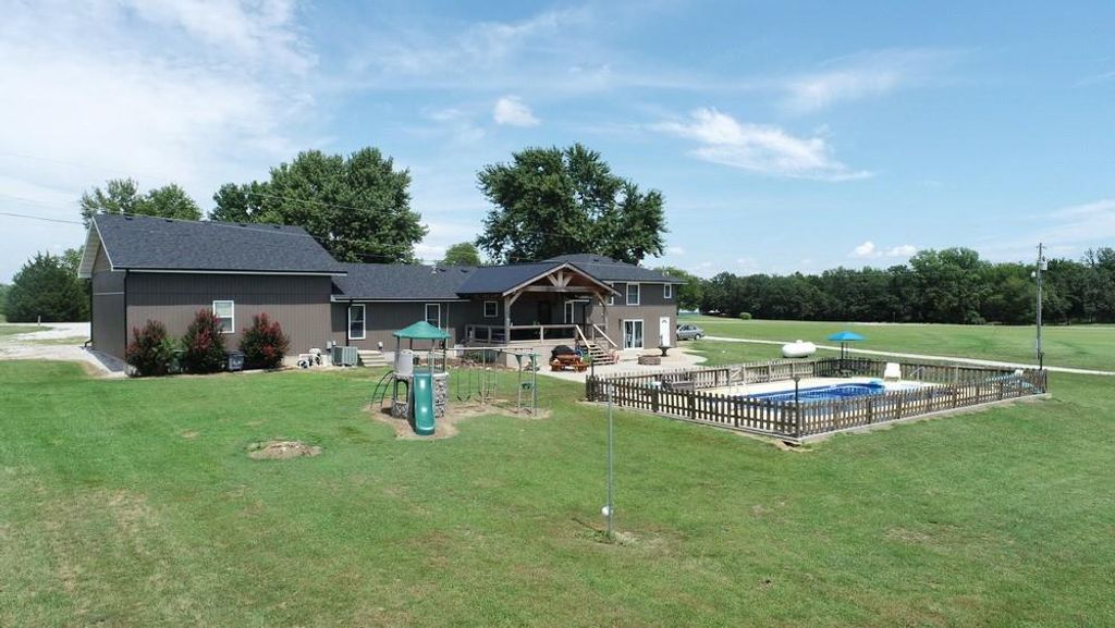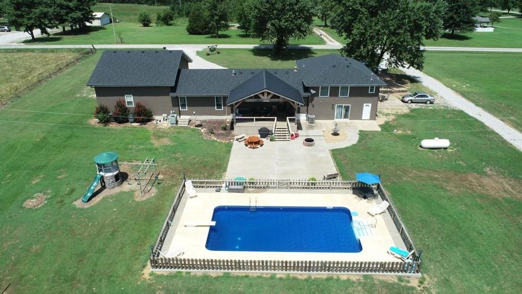 Luxury Country Home on Small Acreage in El Dorado Springs, MO. High-end homes are few a far between, so don't miss this one. Located on a lightly-traveled, paved road only 2 miles from the city limits, is a 6 bedroom, 3.5 bathroom home with luxury space both inside & out. On 4.2 manicured acres is a stunning home with over 4,500 sq ft of finished living space that is both beautiful & functional. The heart of the home is the spacious kitchen & dining area that currently seats over 20 people comfortably. The kitchen boasts granite countertops, a large kitchen island, custom cabinets, tile backsplash, professional-grade 48 range, stainless appliances, & attractive lighting. Featuring a custom-built, gas fireplace, the 26'x23' living room has been, & will continue to be, the center of large gatherings & memory making. Beyond the living room is a bonus recreation room as well as a functional mudroom from the garage. A second living area in the basement provides additional space to gather & relax as well as walk-out access to the patio and pool behind the home. The home features 6 spacious bedrooms. The master suite has an en-suite bathroom with walk-in tile shower as well as a nice walk-in closet. Additionally, 2 more full-bathrooms & 1 half-bathroom give functional flexibility to the household & its guests. While the inside of the home is enough to be desired, the exterior puts it over the top! The home has been given a fresh face-lift this year that makes for excellent curb appeal. Brand-new in 2024 are the vertical siding, shutters, gutters, exterior doors, & roof making this both beautiful & low-maintenance for years to come. The stunning back porch features a vaulted ceiling & bold beam work that perfectly complement the home & the outdoor area beyond. A large patio area creates space for dining & leads the gem of the backyard: a 36' x16' in-ground pool. This property is the complete package: location, size, condition, & style! Call today to schedule a showing!