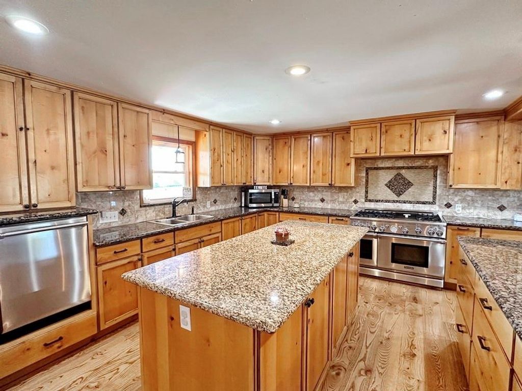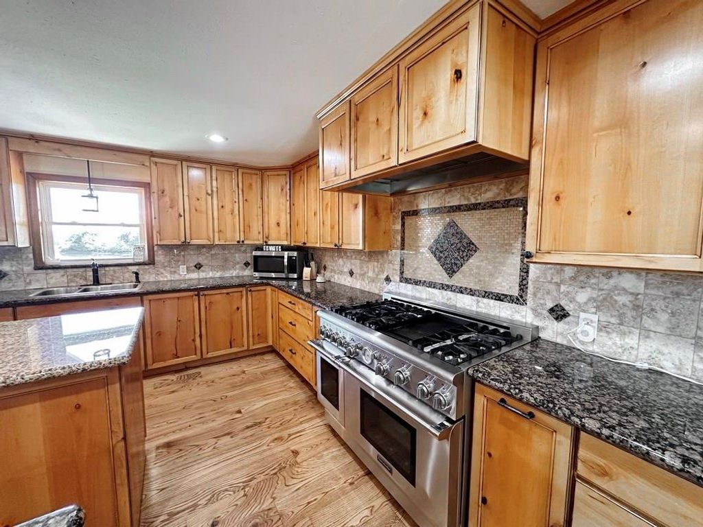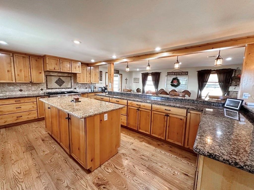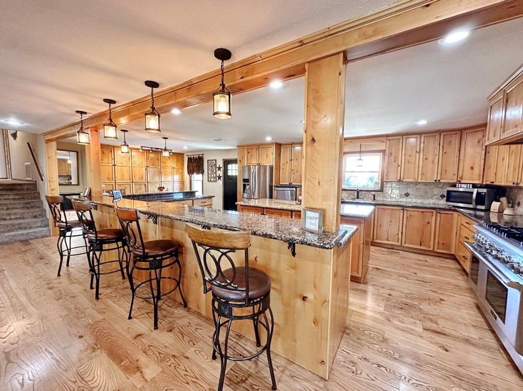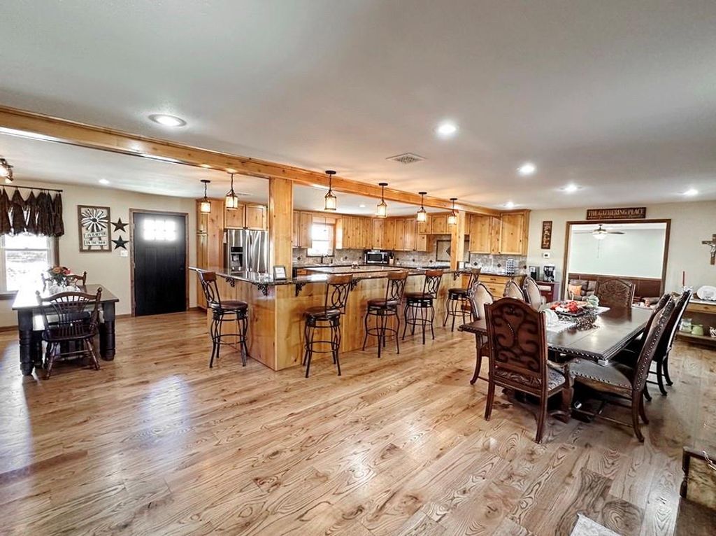 Luxury Country Home on Small Acreage in El Dorado Springs, MO. High-end homes are few a far between, so don't miss this one. Located on a lightly-traveled, paved road only 2 miles from the city limits, is a 6 bedroom, 3.5 bathroom home with luxury space both inside & out. On 4.2 manicured acres is a stunning home with over 4,500 sq ft of finished living space that is both beautiful & functional. The heart of the home is the spacious kitchen & dining area that currently seats over 20 people comfortably. The kitchen boasts granite countertops, a large kitchen island, custom cabinets, tile backsplash, professional-grade 48 range, stainless appliances, & attractive lighting. Featuring a custom-built, gas fireplace, the 26'x23' living room has been, & will continue to be, the center of large gatherings & memory making. Beyond the living room is a bonus recreation room as well as a functional mudroom from the garage. A second living area in the basement provides additional space to gather & relax as well as walk-out access to the patio and pool behind the home. The home features 6 spacious bedrooms. The master suite has an en-suite bathroom with walk-in tile shower as well as a nice walk-in closet. Additionally, 2 more full-bathrooms & 1 half-bathroom give functional flexibility to the household & its guests. While the inside of the home is enough to be desired, the exterior puts it over the top! The home has been given a fresh face-lift this year that makes for excellent curb appeal. Brand-new in 2024 are the vertical siding, shutters, gutters, exterior doors, & roof making this both beautiful & low-maintenance for years to come. The stunning back porch features a vaulted ceiling & bold beam work that perfectly complement the home & the outdoor area beyond. A large patio area creates space for dining & leads the gem of the backyard: a 36' x16' in-ground pool. This property is the complete package: location, size, condition, & style! Call today to schedule a showing!