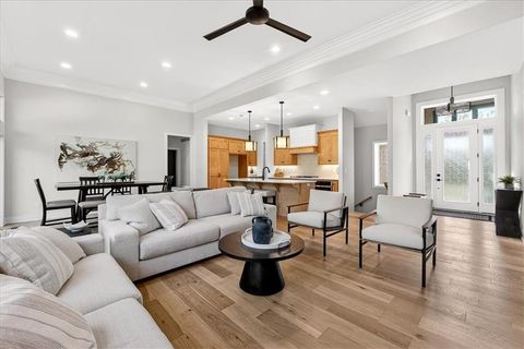 BUILDER MODEL CLOSE out!!! Steel Creek STUNNING ranch/reverse plan with full finished basement on beautiful private lot! Upgrades galore, prepare to be impressed with this large open floorplan with tons of light and designer decor. Kitchen will WOW you with upgraded quartz countertops and designer tile. Primary bedroom and bath with amazing walk in closet! 2 additional bedrooms on the main level (use one for an office!?). Head downstairs to find the incredible rec room and GORGEOUS full bar for all your entertainment needs PLUS large 4th bedroom AND BONUS room!!! Overland Ridge is a Julian development offering a fantastic location, community pool and beautiful setting and great location. Do not miss this quality built home- tour today! More photos coming soon!