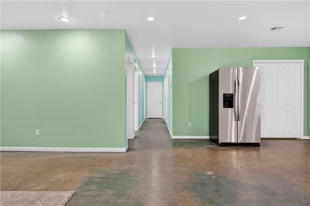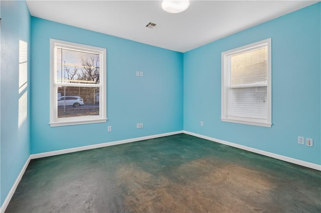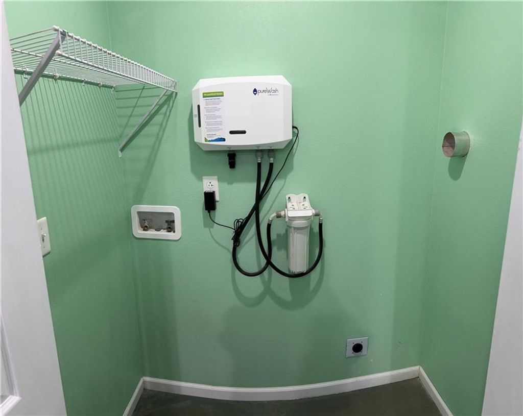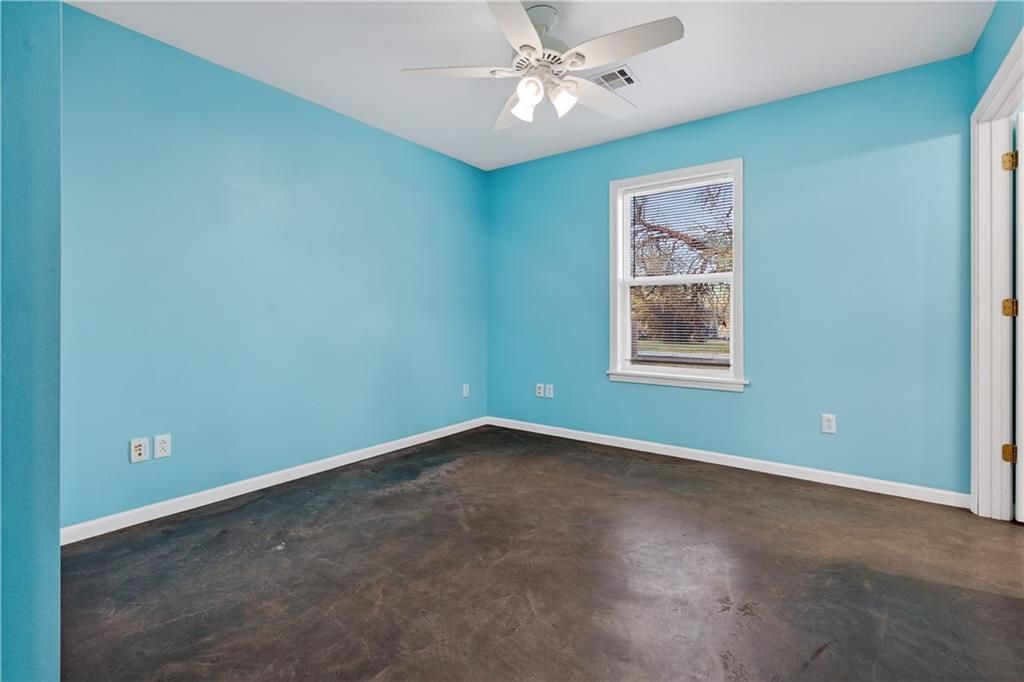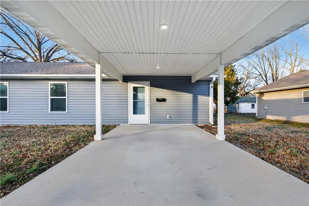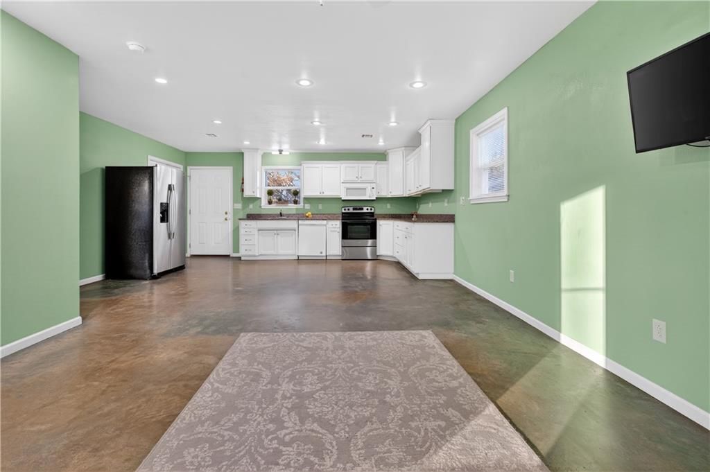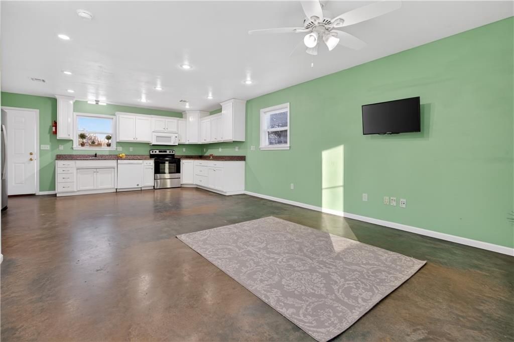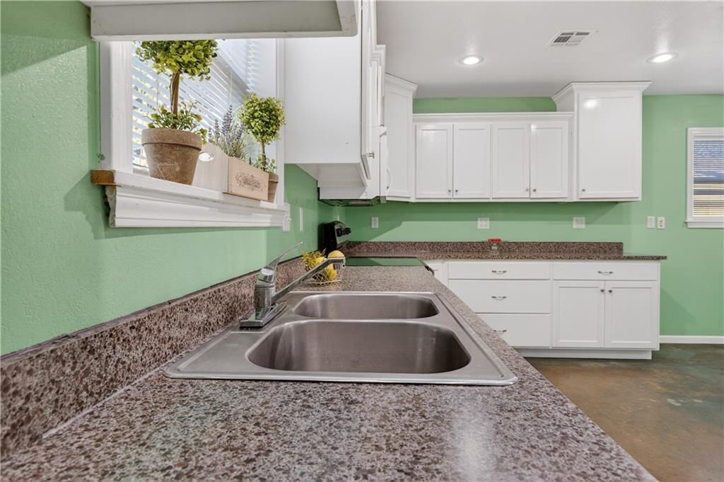 Only 10 years old, this cozy 3 Bedroom, 2 Bath is an exceptional offering! Approaching the home you'll find a beautiful 19x11 covered front porch with decorative white pillars, recessed lighting & additional parking pad space, large enough for patio furniture & relaxation. No need to struggle as you carry in groceries, this home is one level with no steps to contend with. The freshly painted, open design, of the living room, dining & kitchen space creates a feeling of happiness with great natural light that flows throughout the home. You'll love cooking in the kitchen with new stainless appliances, white cabinetry & granite style laminate countertops with abundant storage & space to be creative during meal preparation. The kitchen/dining area offers opportunity to add your own kitchen island with bar seating, or a more traditional table, depending on your personal taste. Throughout the home you'll find stained concrete flooring designed for a modern, sleek, appeal along with lasting durability. In the primary bedroom, retreat to the ensuite full bath to soak away the stress after a long day. The 2nd full bath, found near the 2nd & 3rd bedrooms, offers a wall separation between the sink & toilet, to allow for privacy while others can be present getting ready for their day. This home was built with energy efficiency & safety in mind with 19" of blown insulation, thermal windows, heat pump central electric heating system & much more! In the laundry you'll find a Green Tech system connected to the laundry lines which allows for less detergent use & a hot water free system. No need to worry during stormy weather, a concrete storm room/pantry is found off the kitchen providing peace of mind & functional versatility. If you love the outdoors, the large back yard is an open slate, waiting for your personal touch to be added. Close your eyes & just imagine: entertaining with friends, a pergola, firepit, and plenty of room for fido to play! The options are vast!