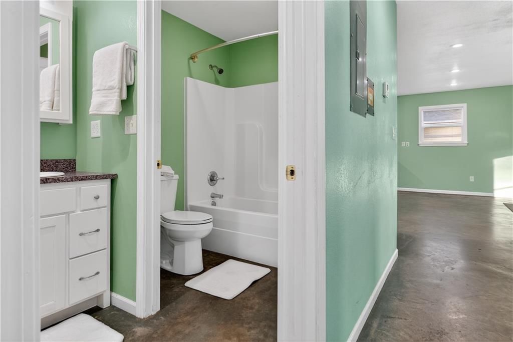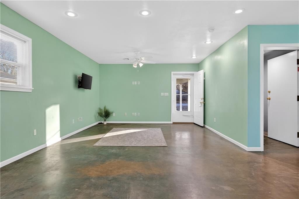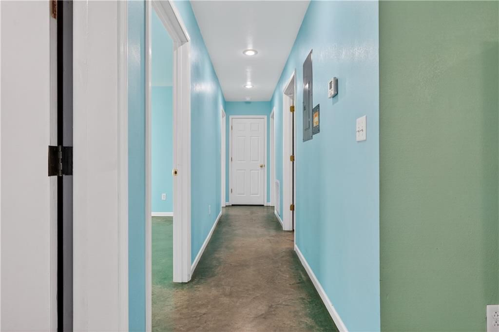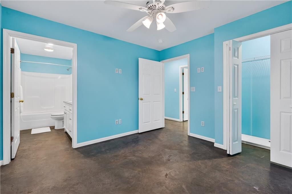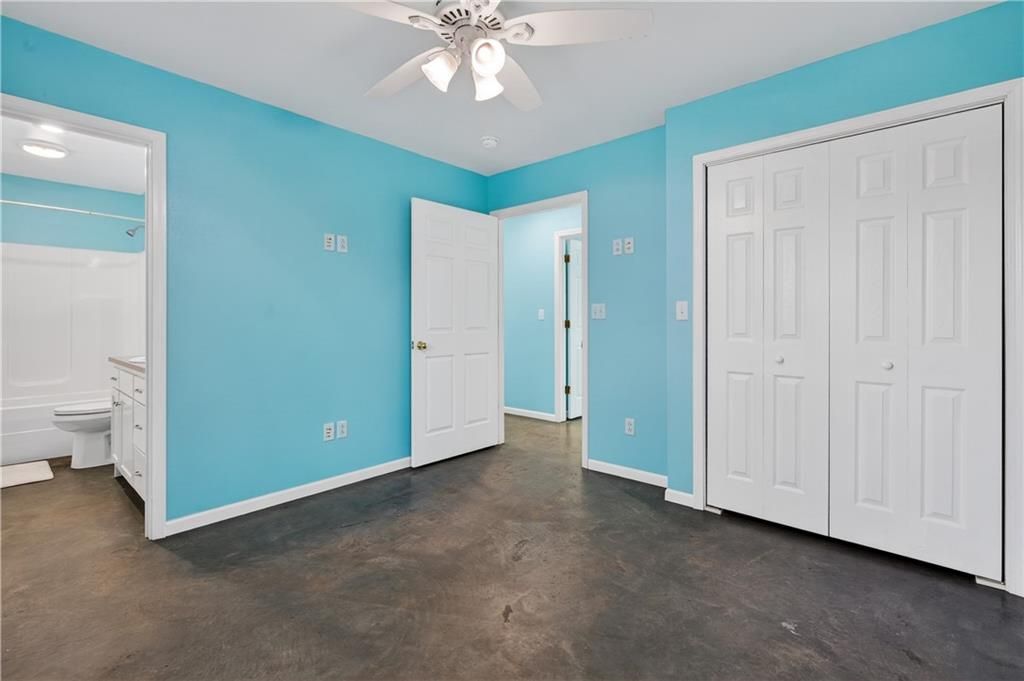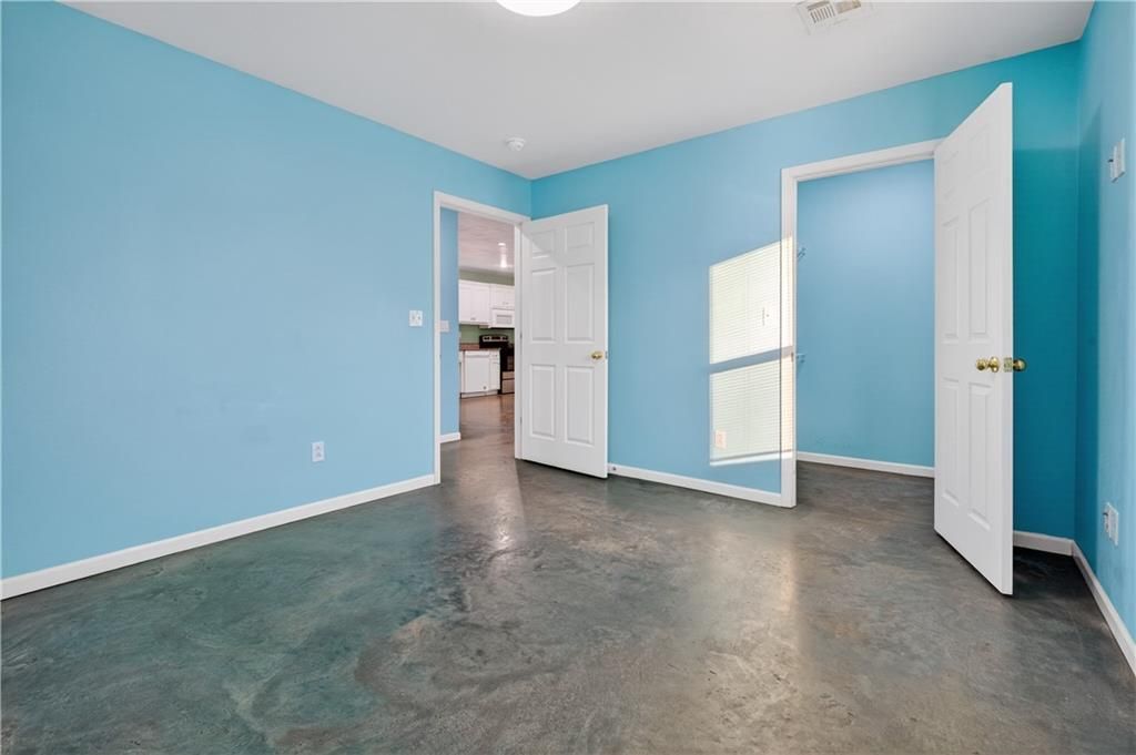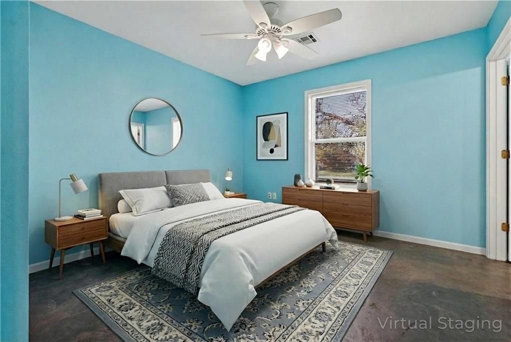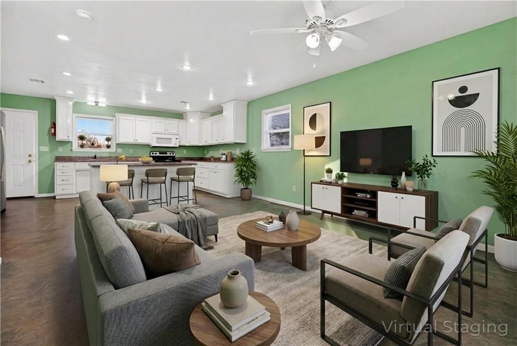 Only 10 years old, this cozy 3 Bedroom, 2 Bath is an exceptional offering! Approaching the home you'll find a beautiful 19x11 covered front porch with decorative white pillars, recessed lighting & additional parking pad space, large enough for patio furniture & relaxation. No need to struggle as you carry in groceries, this home is one level with no steps to contend with. The freshly painted, open design, of the living room, dining & kitchen space creates a feeling of happiness with great natural light that flows throughout the home. You'll love cooking in the kitchen with new stainless appliances, white cabinetry & granite style laminate countertops with abundant storage & space to be creative during meal preparation. The kitchen/dining area offers opportunity to add your own kitchen island with bar seating, or a more traditional table, depending on your personal taste. Throughout the home you'll find stained concrete flooring designed for a modern, sleek, appeal along with lasting durability. In the primary bedroom, retreat to the ensuite full bath to soak away the stress after a long day. The 2nd full bath, found near the 2nd & 3rd bedrooms, offers a wall separation between the sink & toilet, to allow for privacy while others can be present getting ready for their day. This home was built with energy efficiency & safety in mind with 19" of blown insulation, thermal windows, heat pump central electric heating system & much more! In the laundry you'll find a Green Tech system connected to the laundry lines which allows for less detergent use & a hot water free system. No need to worry during stormy weather, a concrete storm room/pantry is found off the kitchen providing peace of mind & functional versatility. If you love the outdoors, the large back yard is an open slate, waiting for your personal touch to be added. Close your eyes & just imagine: entertaining with friends, a pergola, firepit, and plenty of room for fido to play! The options are vast!