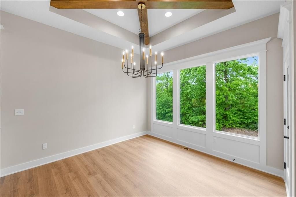This beautifully designed 4-bedroom, 3-bathroom home offers over 3,500 square feet of luxurious living space, blending high-end upgrades with everyday functionality. From the moment you enter through the impressive 8-foot double front doors, you'll be welcomed by the warm elegance of engineered hardwood flooring and custom trim details throughout the main level. The heart of the home features a spacious great room with built-ins, seamlessly flowing into a gourmet kitchen adorned with upgraded quartz countertops, an upgraded hutch, and a large walk-in pantry - perfect for entertaining or everyday living. The primary suite is a private retreat with a generous walk-in closet and direct access to the laundry room for added convenience. A second main-floor bedroom with a vaulted ceiling and a full bath provides ideal space for guests or a home office. Enjoy seamless indoor-outdoor living with a large covered deck overlooking the walkout lot, and a covered patio below for extra entertaining space. The walkout lower level expands your living area with an extended rec room, a full wet bar, and a cozy stone fireplace, plus two additional bedrooms and a full bath. With 8-foot interior doors on the main level, thoughtful tile and trim upgrades throughout, and exceptional craftsmanship at every turn, this home is a rare blend of style, space, and comfort.