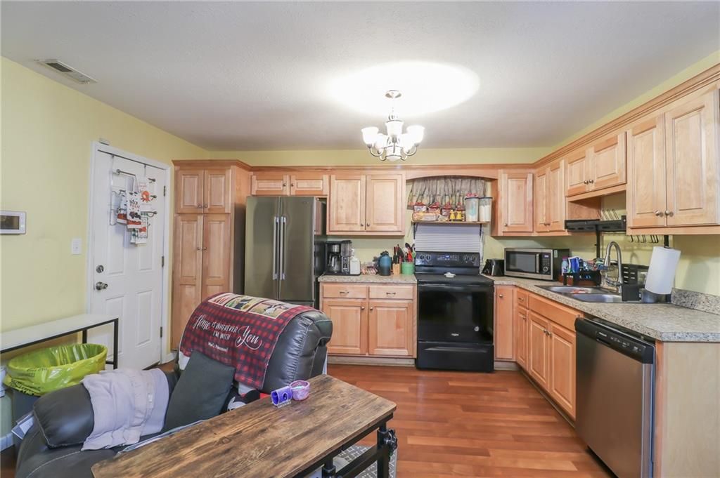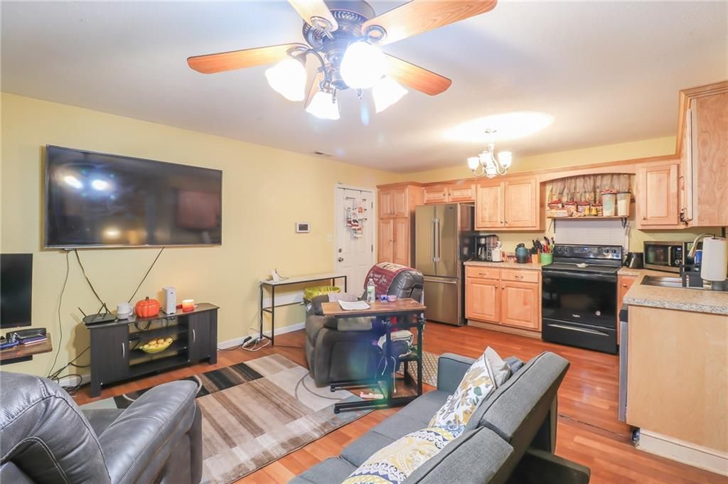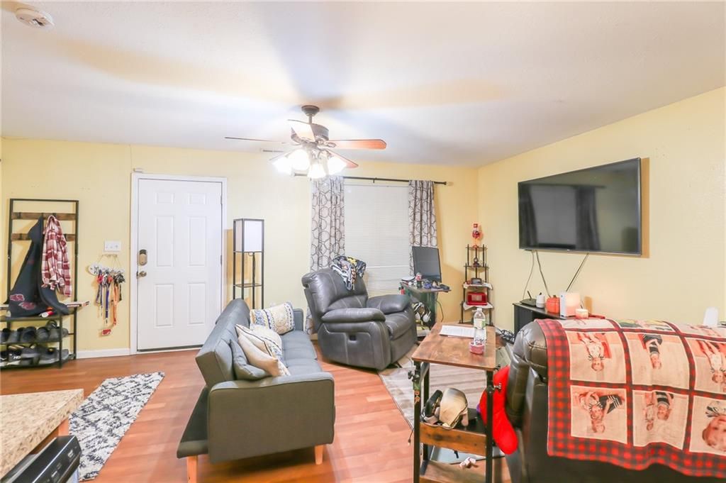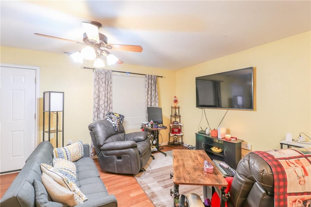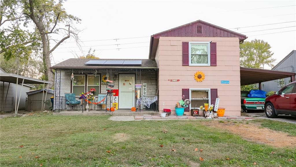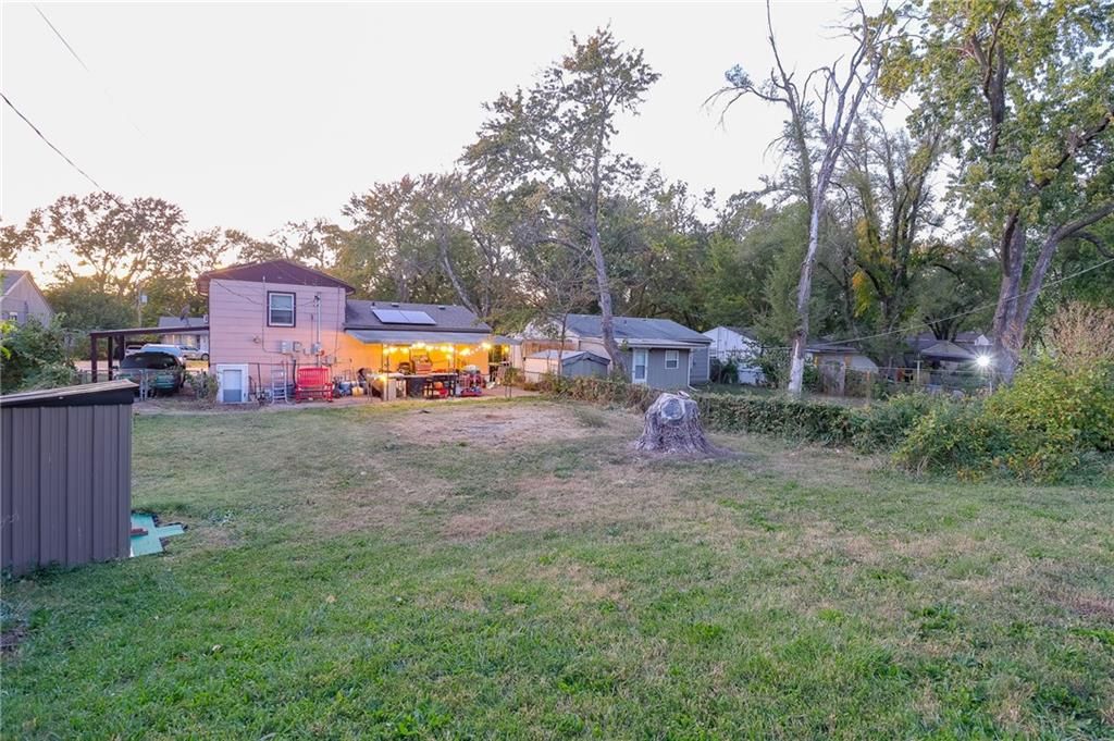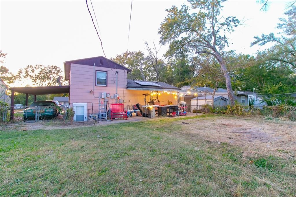 **MOTIVATED SELLERS** Check out this charming 1.5 story home in a prime location right off I-435! This delightful 1.5 story home features 3 bedrooms, 1 bathroom. As you enter, you'll be greeted by an inviting open concept living area that seamlessly flows into the kitchen, adorned with beautiful cabinetry and ample counter space for all your culinary adventures. The upper level boasts two generously sized bedrooms, while the lower level is dedicated to the Master bedroom and a convenient laundry room. Step outside to a huge fenced-in backyard, ideal for gatherings and outdoor fun, complete with a storage shed and carport. Recent upgrades include a new A/C unit (just 3 years old) and energy-efficient solar panels, making this home both comfortable and economical. This is a property you won't want to miss!