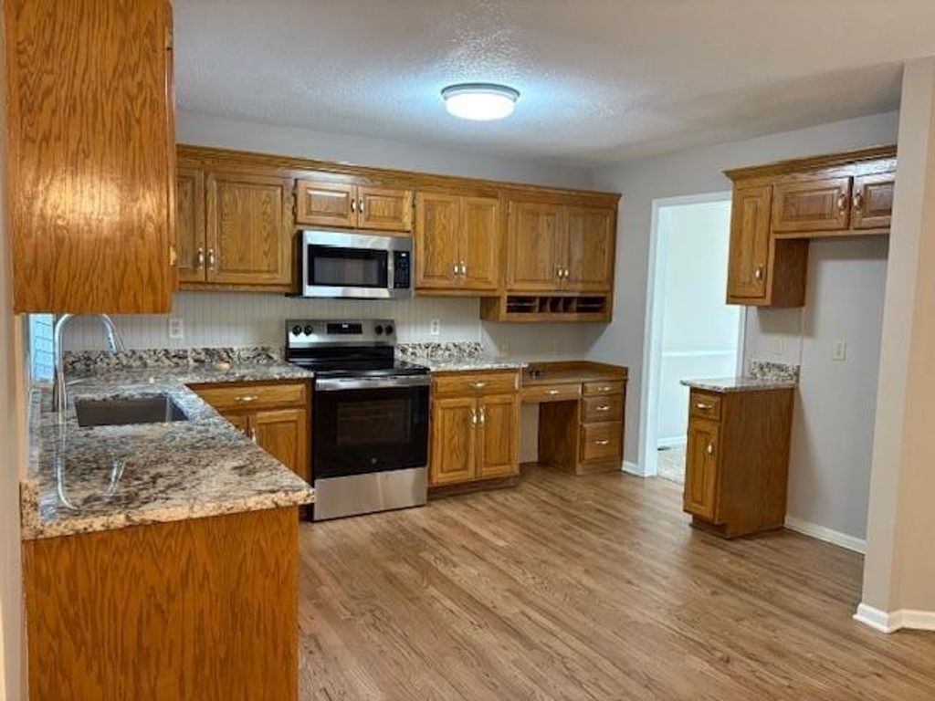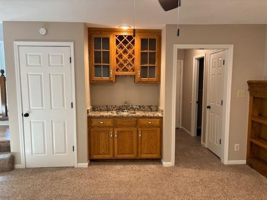 This home is located in the well-established neighborhood called Stonecrest. This contemporary two story home has many nice features. The main level offers a formal dining room along with an eat-in area off the kitchen. You may exit this area onto an oversized deck and treed yard. The kitchen offers an abundance of stained cabinets, new granite and wainscoting backsplash along with new stainless appliances(refrigerator coming). The great room is off the kitchen and offers a wet bar with new granite, book shelves and a wood burning fireplace. The entry, kitchen and eat in area offers newly refinished hardwood floors. The Laundry room is conveniently located on the main level across from a 1/2 bath. The lower level has an additional room for entertaining, plus additional unfinished area that can be finished later. Lots of storage. The upstairs has 4 nice size bedrooms and 2 full bathrooms. The exterior and interior have been freshly painted. This home is conveniently located minutes away from Ft. Leavenworth, the Legends, Kansas City, shopping and entertainment. All this and Great schools make this property a must see. Seller will pay $4000.00 for closing costs or buy down.