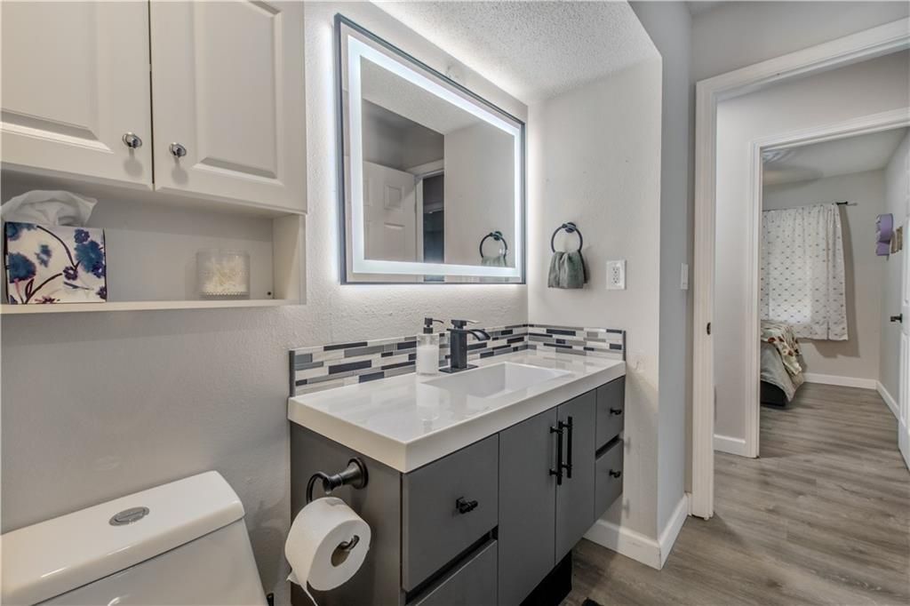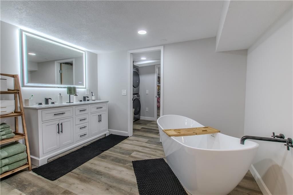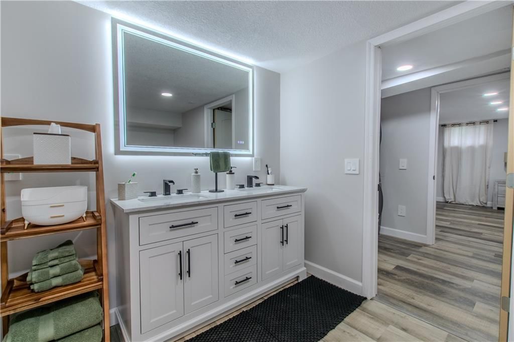 You do not want to miss this beautifully remodeled ranch home! Nestled at the end of the road, this home has a large privacy fenced backyard with a shed. Upon entering you'll see the new vinyl flooring and paint throughout. New kitchen includes new cabinets, counters, esthetic shelving, pantry, and appliances that stay! The updated bathroom will be sure to catch your eye with new vanity, smart mirror and bedrooms are great sized with good closets. Going downstairs you'll notice the sleek stairway, 2nd living room area, and upon entering the huge master suite with a large closet and amazing master bathroom. This bathroom includes a double sink vanity, spa-like tub, and walk-in shower with 2 rain shower heads; perfect bathroom for relaxation. This home has all smart lights throughout you can change the colors and access through the "Alexa app" to off/on etc., NEST thermostat, and one of the few homes with access to 2G Fiber Internet. Also has a new furnace and tankless water heater. Come check this one out before it's gone!