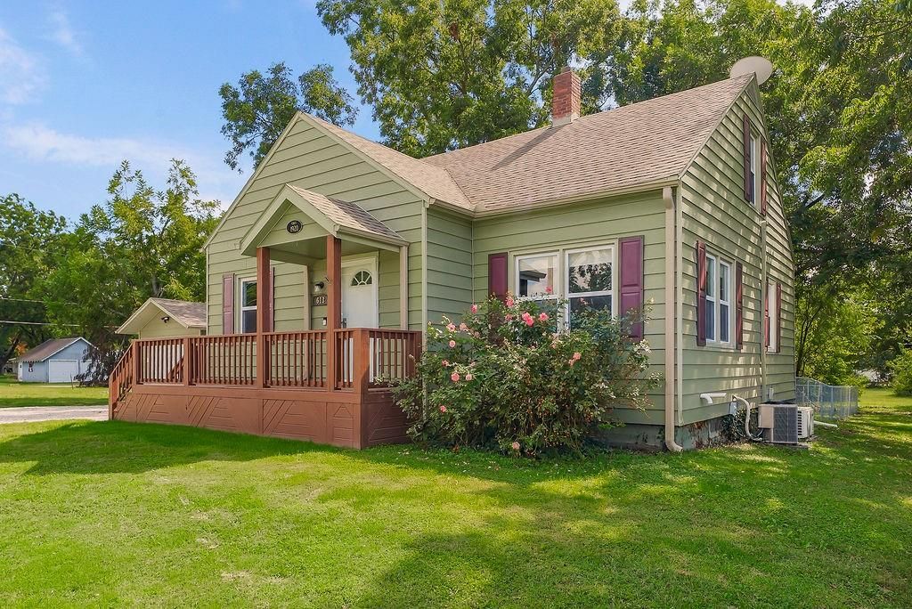 Price Improvement! Right in the heart of LaCygne your new home awaits! Close enough to the amenities and yet far enough to be away from it all, this house has what you need! With a completely remodeled kitchen (with new appliances) and bathroom (remodeled by Bathfitters), window upgrades, new basement stairs, new gutters and downspouts, new front and rear porches plus the basement has been made water tight by Thrasher that comes with at 25 year warranty! This property has so much more to offer and all it needs is you! This 2 bed 1 bath does have an office or storage room upstairs that could be a bedroom with the addition of a closet. It also has 2 out buildings, the garage and a mancave / she shed ready for your ideas. With a completely fenced in yard, a couple of doggie doors and high speed fiber, you may never want to leave! The house both inside and out has been completely painted as well. With all that done, all it needs is you! Schedule today because it wont last long!