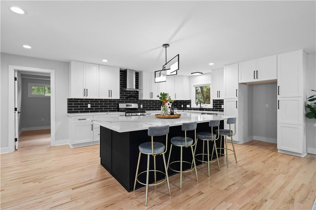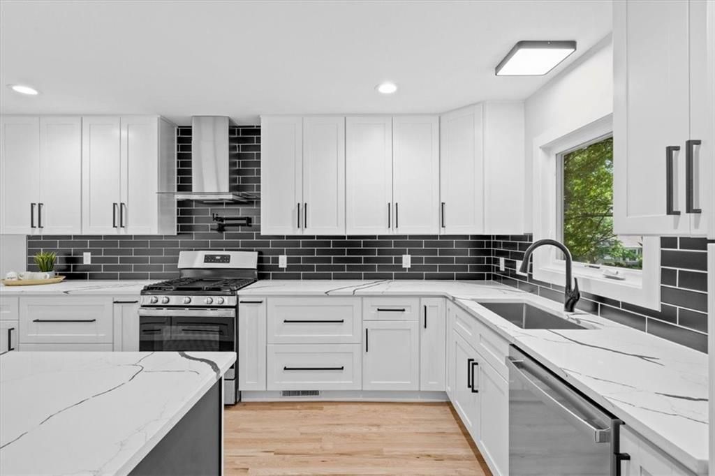 Welcome home to this beautifully renovated ranch in the heart of Prairie Village. As you walk in, you will see the gorgeous open concept with high ceilings and lots of natural light. This modern home has a first floor primary bedroom and laundry. The kitchen boasts very large island that can seat seven and is perfect for family gatherings and entertaining. Every aspect of this property has been carefully considered and upgraded. From the extensive kitchen remodel and every bathroom updated, there's nothing else to do then move in! Updates included: Epoxy-coated garage floors, air conditioning unit, new windows, new electrical system and new driveway. This home sits on a beautiful large corner lot, close to shops, restaurants, parks, and more! This home is an absolute must see!