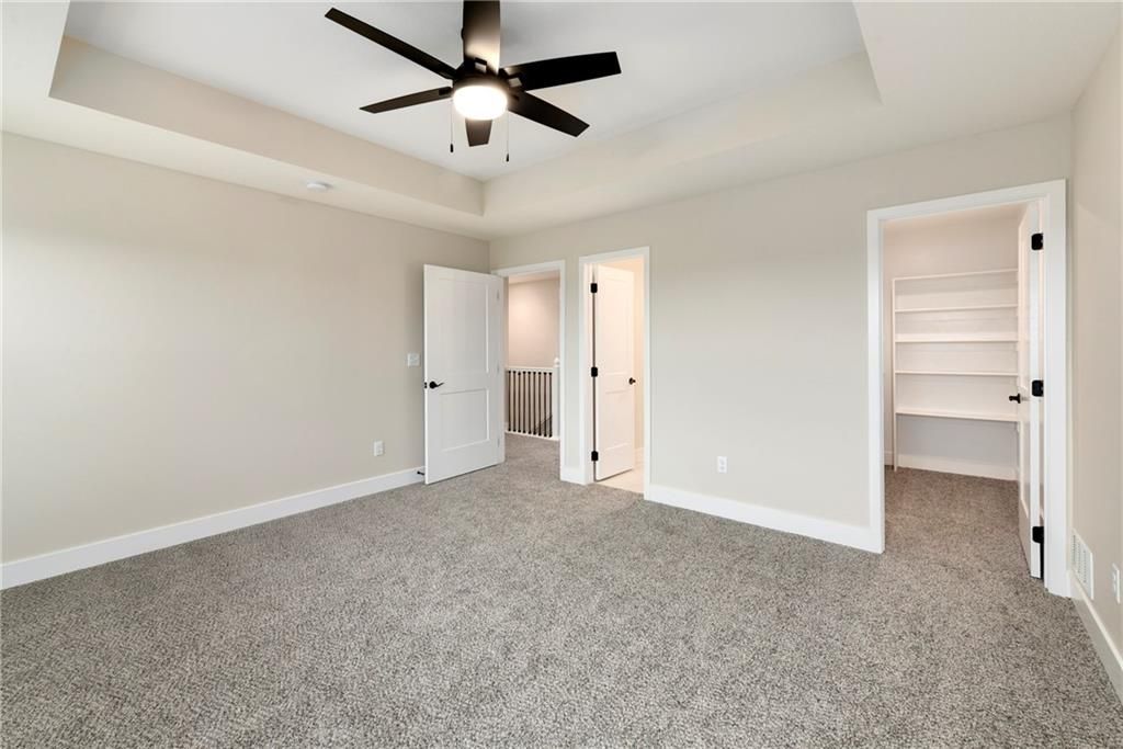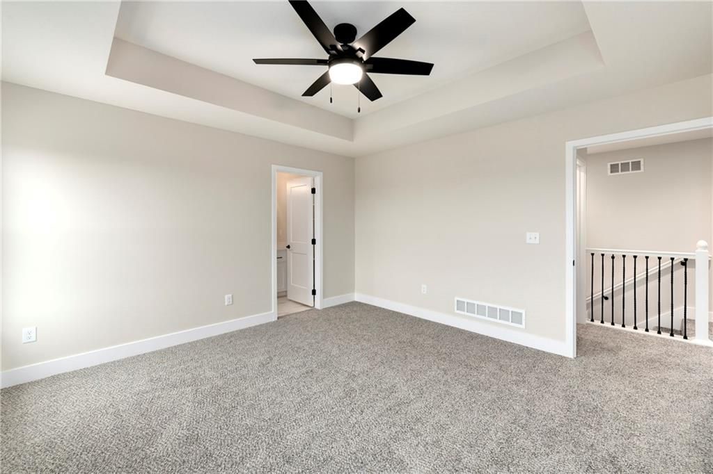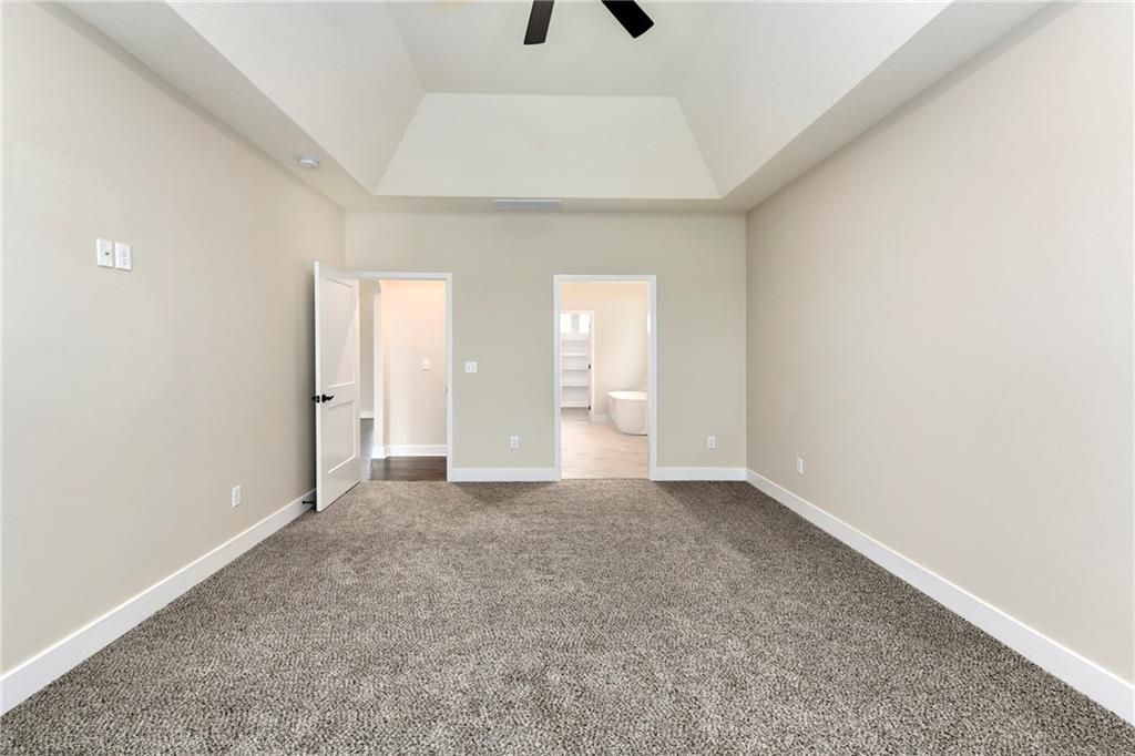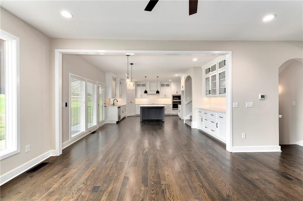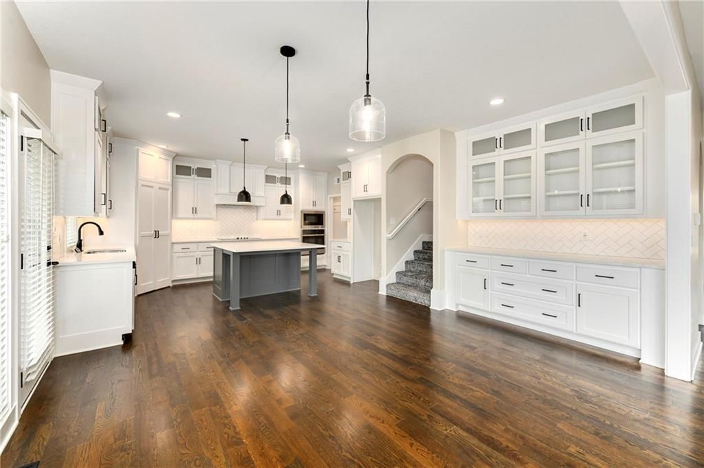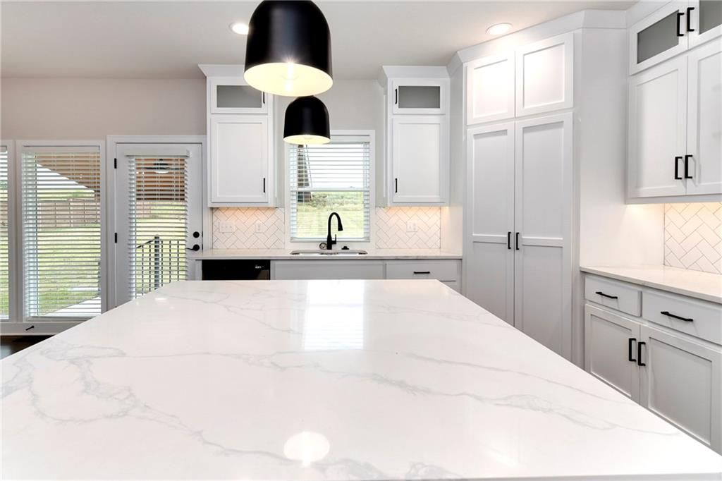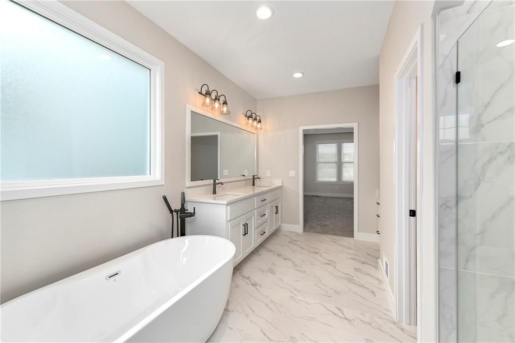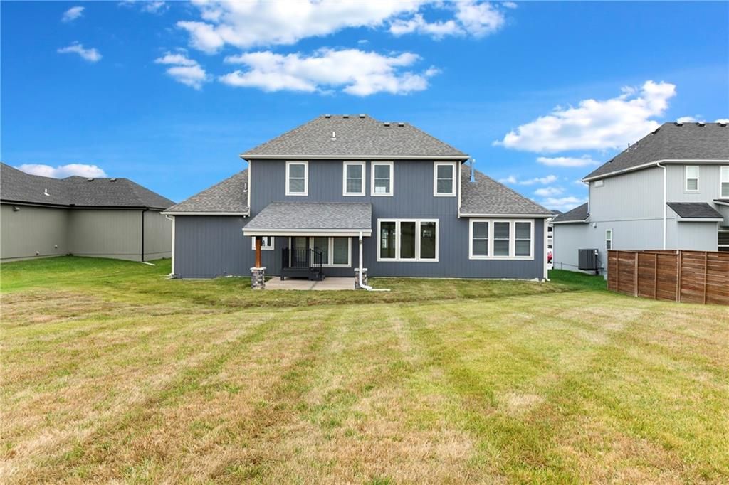 This thoughtfully designed 1.5-story offers a spacious open plan and high-end details throughout. Enter through the inviting foyer to the formal dining room, featuring rustic cedar columns and wainscoting. The living room showcases a stunning stacked stone fireplace with a rustic mantel and a picturesque view of the backyard. The open feel of the home is enhanced by the tucked-away staircase, adding to the inviting flow of the space. The kitchen is truly a chef's dream with a large center island and seating, a beautiful herringbone backsplash, quartz countertops, smooth cooktop, and glass transom cabinets. A walk-in pantry and butler's pantry with glass cabinets add extra storage and style. You'll love the thoughtfully placed sink overlooking the peaceful backyard. The main level primary suite is a true retreat with a vaulted ceiling and spacious walk-in closet with French doors. The luxurious bath includes a freestanding soaker tub, double vanity, coffee bar, and an arched entry to the walk-in shower. Rounding out the main floor are a laundry room, mudroom with coat hooks and boot boxes, and a half bath. Upstairs, you ll find three generously sized bedrooms, each with raised ceilings, en-suite private baths, and walk-in closets. There's also a walk-in linen closet for added convenience. The full basement is ready for your customization, with rough-in for full bath, an egress window for a future bedroom, and a sheetrocked ceiling - perfect for a future movie theater or entertainment space. Enjoy outdoor living on the covered patio with ceiling fan and take in the serene views. The landscaping is complete, and blinds are already installed in some areas. Built with superior craftsmanship by a boutique custom builder, this home is move-in ready with the builder available to handle any final punchlist items. Located in a wonderful neighborhood within a top-rated school district and best of all - no HOA dues! This JWM Custom Home is the total package!