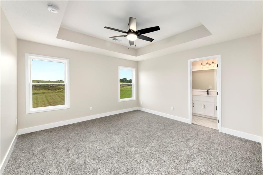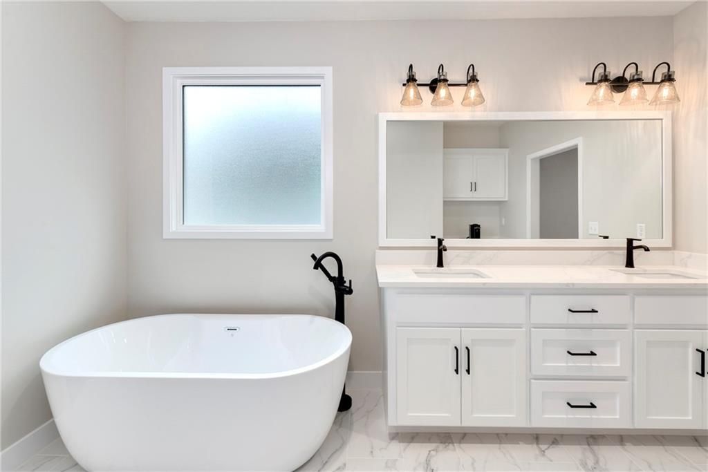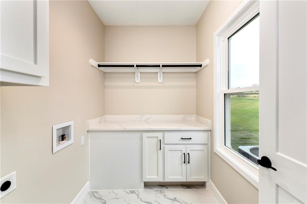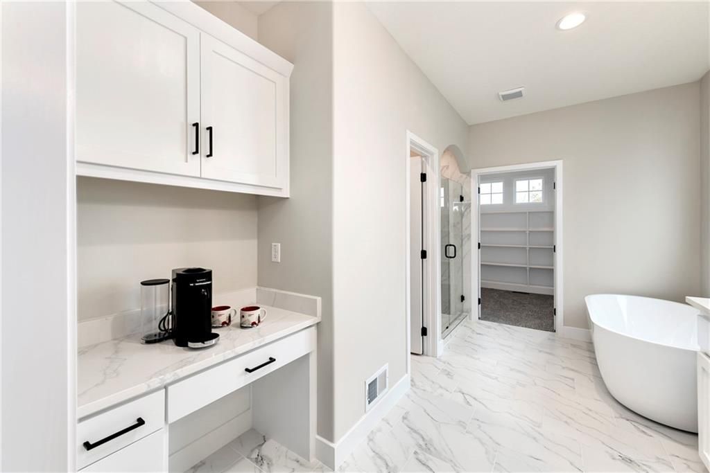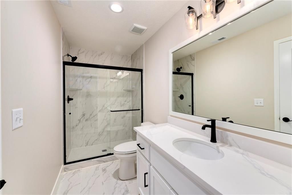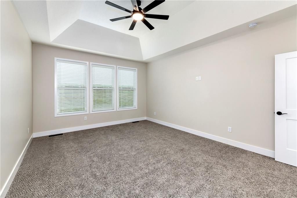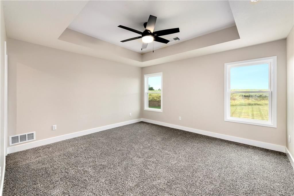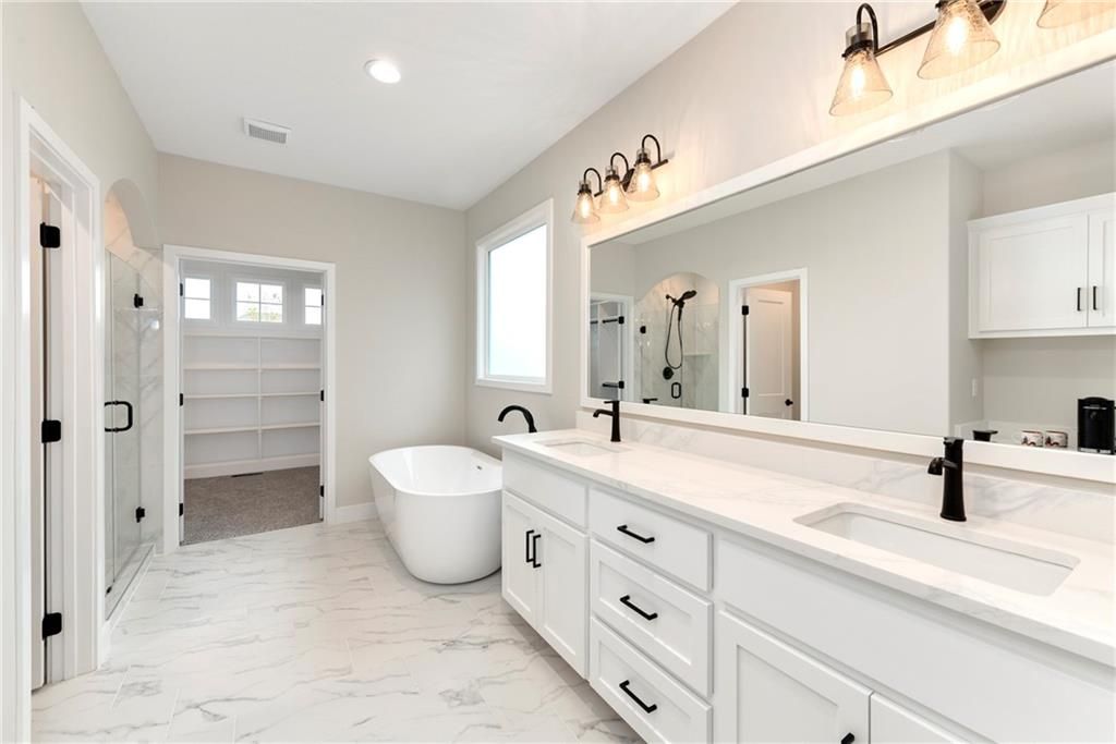 This thoughtfully designed 1.5-story offers a spacious open plan and high-end details throughout. Enter through the inviting foyer to the formal dining room, featuring rustic cedar columns and wainscoting. The living room showcases a stunning stacked stone fireplace with a rustic mantel and a picturesque view of the backyard. The open feel of the home is enhanced by the tucked-away staircase, adding to the inviting flow of the space. The kitchen is truly a chef's dream with a large center island and seating, a beautiful herringbone backsplash, quartz countertops, smooth cooktop, and glass transom cabinets. A walk-in pantry and butler's pantry with glass cabinets add extra storage and style. You'll love the thoughtfully placed sink overlooking the peaceful backyard. The main level primary suite is a true retreat with a vaulted ceiling and spacious walk-in closet with French doors. The luxurious bath includes a freestanding soaker tub, double vanity, coffee bar, and an arched entry to the walk-in shower. Rounding out the main floor are a laundry room, mudroom with coat hooks and boot boxes, and a half bath. Upstairs, you ll find three generously sized bedrooms, each with raised ceilings, en-suite private baths, and walk-in closets. There's also a walk-in linen closet for added convenience. The full basement is ready for your customization, with rough-in for full bath, an egress window for a future bedroom, and a sheetrocked ceiling - perfect for a future movie theater or entertainment space. Enjoy outdoor living on the covered patio with ceiling fan and take in the serene views. The landscaping is complete, and blinds are already installed in some areas. Built with superior craftsmanship by a boutique custom builder, this home is move-in ready with the builder available to handle any final punchlist items. Located in a wonderful neighborhood within a top-rated school district and best of all - no HOA dues! This JWM Custom Home is the total package!
