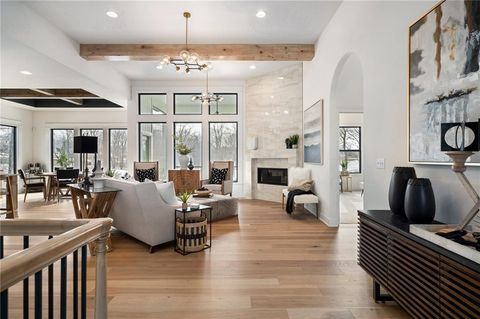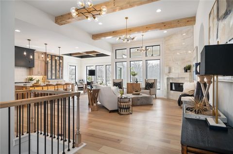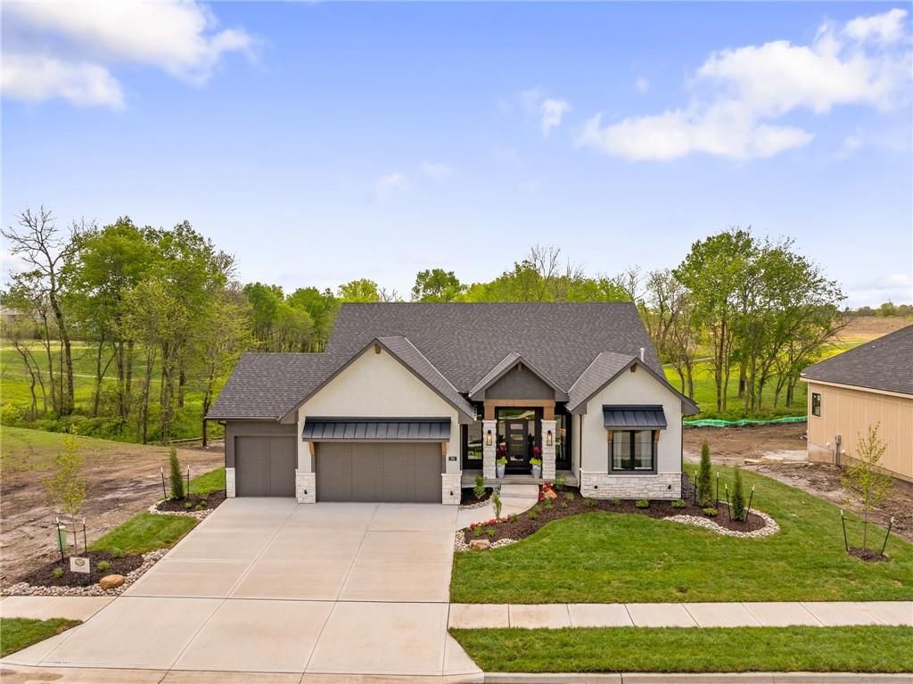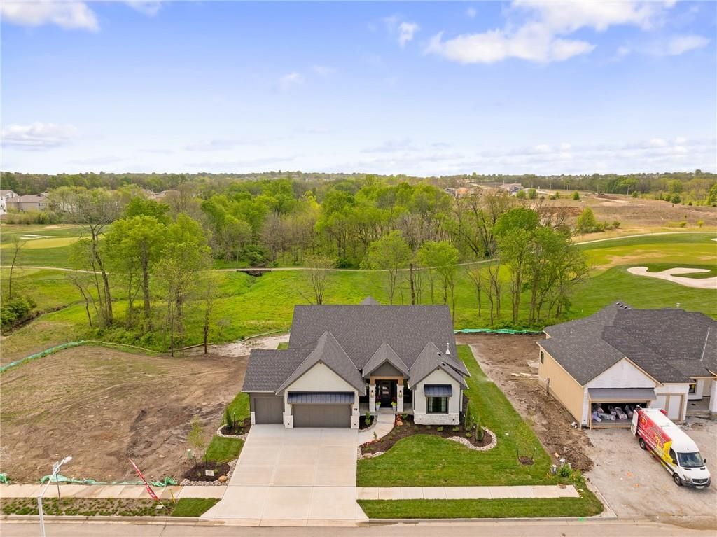 PRICE REALIGNED! MODEL HOME IS NOW FOR SALE. This popular "Expanded Windsor" reverse 1/2/ ranch floor plan by C&M Builders truly checks all the boxes both inside and out! Situated on one of Creekmoor's most beautiful golf course lots, it offers privacy while still providing a front-row seat to the action on the course and the occasional visit from local wildlife like deer. Inside, the home boasts a spacious primary suite with a large bath, walk-in closet, and direct access to the laundry room for added convenience. On the same level, you'll find another versatile room that can serve as a bedroom or office, along with a bath. The expansive great room features vaulted ceilings, a cozy fireplace, and a wall of windows that bring in tons of natural light. This opens up to a fantastic kitchen and dining area, perfect for hosting gatherings. Just off the dining area, a covered deck offers a tranquil spot to enjoy your morning coffee or unwind at the end of the day. The walk-out lower level is equally impressive, with two additional bedrooms, a bath, and a large family room with a wet bar - ideal for kicking back and watching your favorite games, especially cheering on the Chiefs!