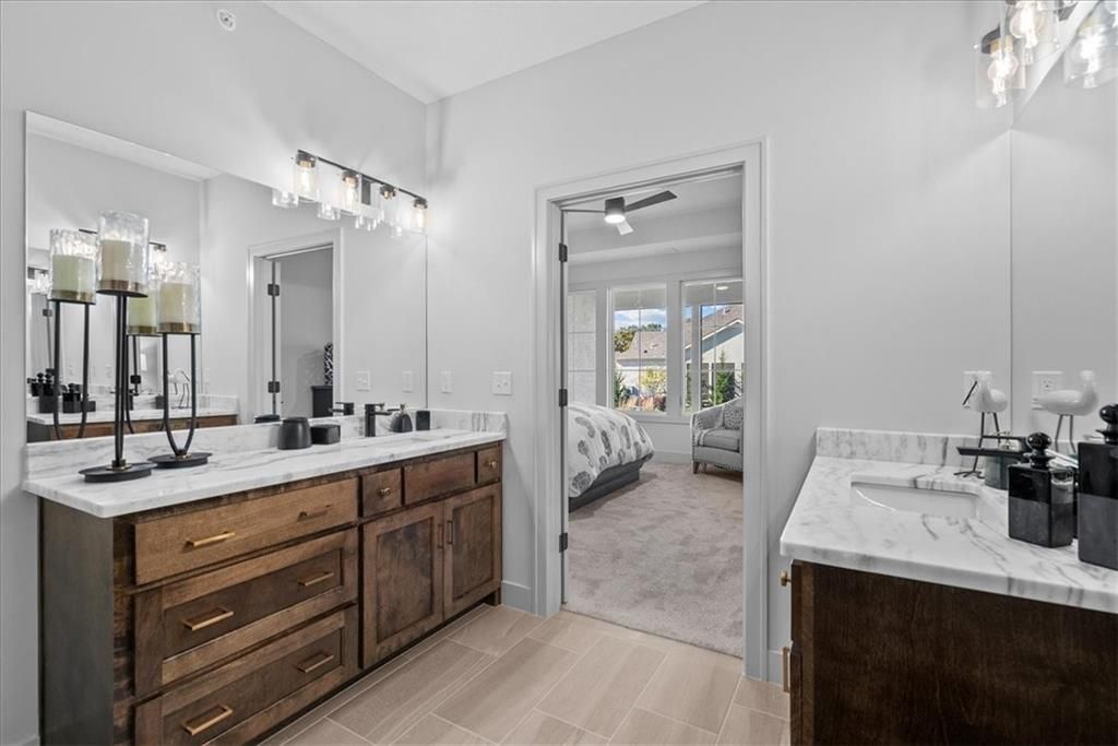 Stunning quality construction with high level finishes throughout. 2 bedrooms on the main level + separate OFFICE/FLEX ROOM. Finishes include custom cabinetry, designer series trim package. Owners suite features wall of windows, walk in shower and double vanities w/vanity. Walk In Closets throughout. Lower Level Bar. Upgraded cabinetry selections along with soft close drawers in kitchen. We have thoughtfully included some upgrades throughout. Maintenance provided at its finest with ample services included for $325 per month with a $750 initiation fee. Sq footage and taxes are estimated. Price listed includes upgraded finishes. Photos and Virtual Tour of similar home