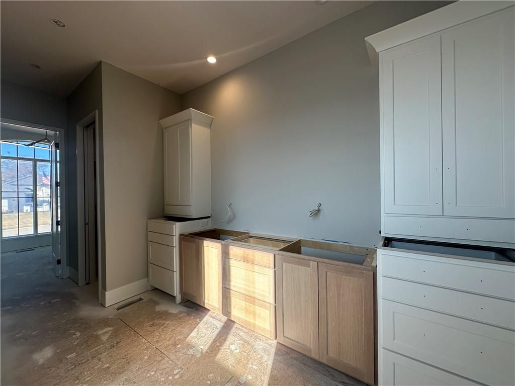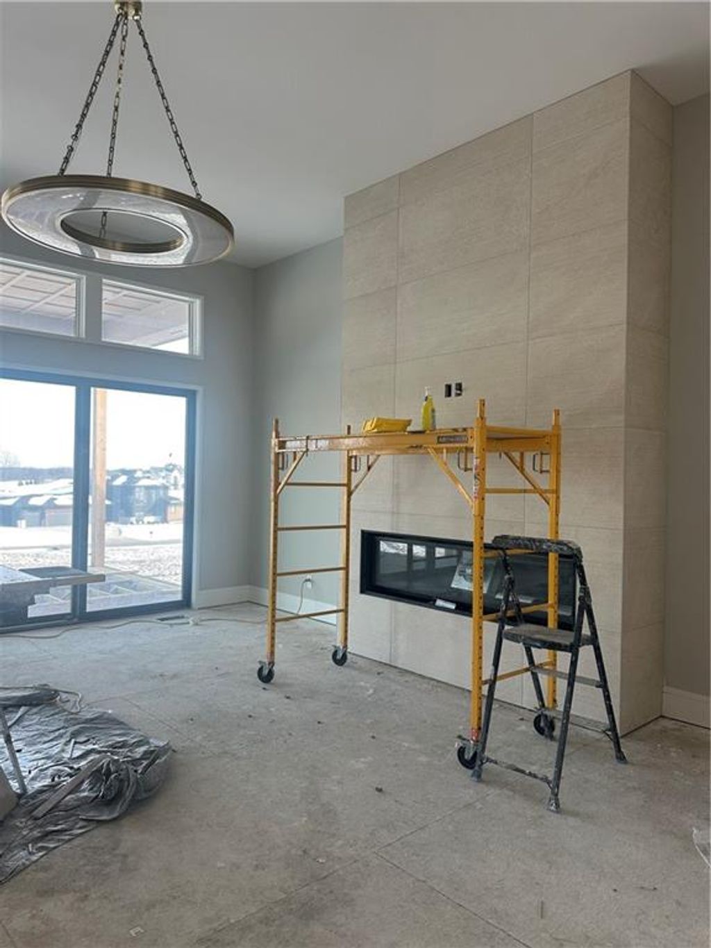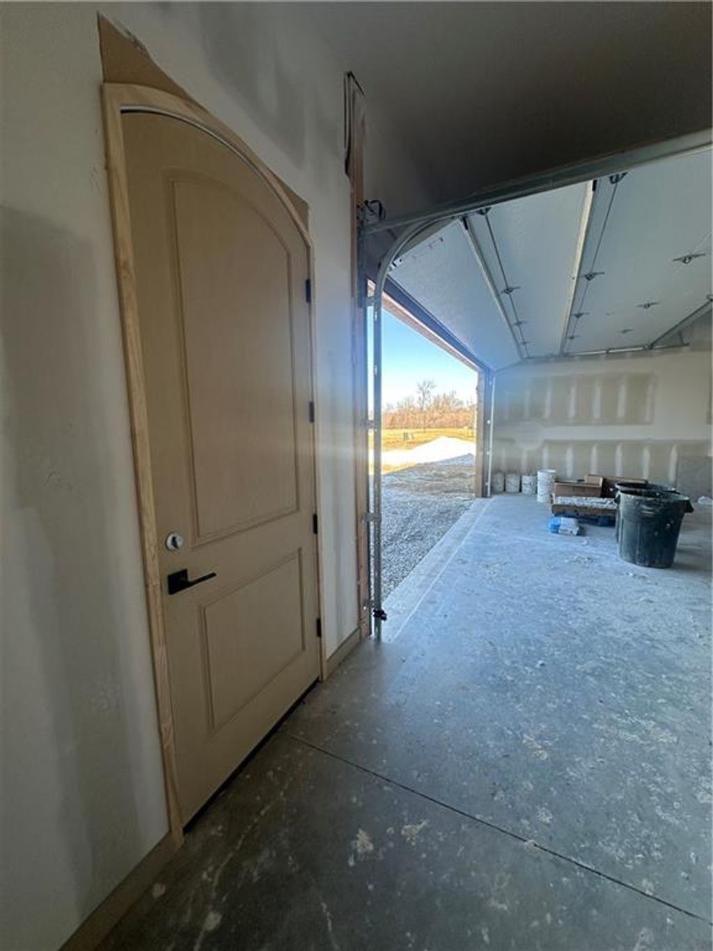Nearly Complete New Construction Reverse 1.5 Story on an estate lot in unincorporated Platte County. 4 Bedrooms, 4 Full & 2 Half Baths, 4-Car Garage. Double-door entry with feature lighting opens to living room with linear fireplace and double sliders to covered deck. Designer kitchen with stained & painted cabinets, oversized island, dining area with statement lighting, and butler's pantry. Luxurious primary suite with tray ceiling, chandelier, spa bath featuring freestanding tub, zero-entry shower w/ dual heads, abundant vanity storage, connects to laundry and large walk-in closet. Finished lower level includes back bar, Beds 3 & 4 w/ private baths and walk-in closets, plus suspended garage w/ roll-up door for exceptional storage all on an Estate Sized Lot. Estimated Spring 2026 Completion.
