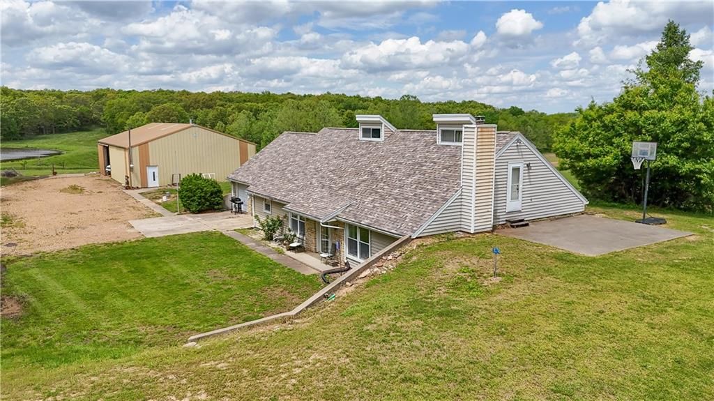 Peaceful Country property sitting on 2.79 Acres! Large living room with new LVP flooring and woodstove. Formal dining room. Oversized kitchen with all stainless steel appliances, Pantry, lots of counter space and storage. 2 bedrooms on the main level with full bathroom nearby. Second level with Loft/Family room, extra large bedroom, second full bathroom and door to patio. Laundry room with washer and dryer included, also equipped as a third bathroom. Central heating and cooling system, 200 amp breaker box and water softener. 40x60 Morton building with garage door and workshop area. Located on a blacktop road, with access to 50 Hwy to the North and 52 Hwy to the South. Beautiful setting with lots of mature trees and views all around.