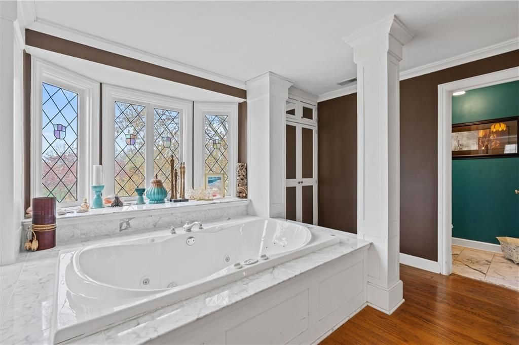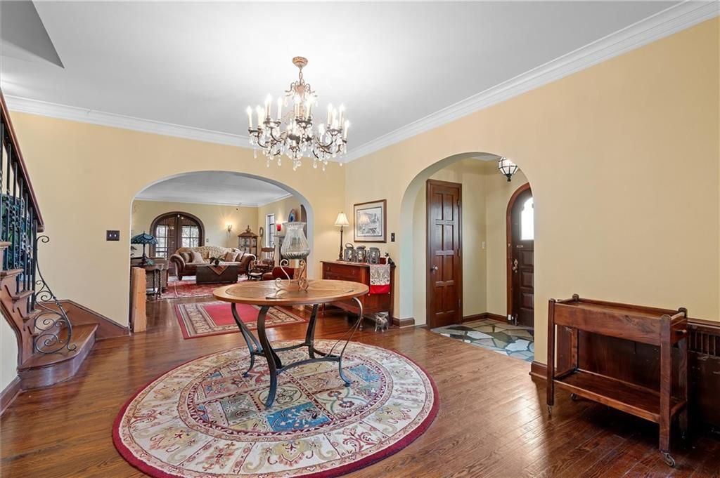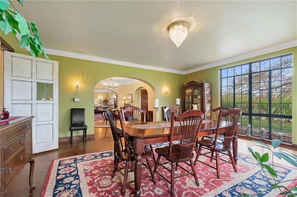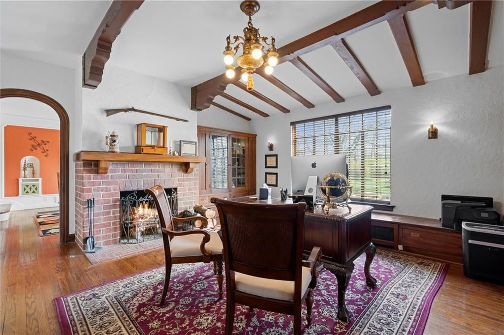 Nestled on a sprawling 6-acre corner lot in Excelsior Springs, this historic English Tudor-style estate offers a rare blend of timeless character and modern luxury. With over 6,000 sq ft of living space, the home boasts original architectural details at every turn - from a grand entryway and elegant woodwork to multiple staircases (including a service staircase to the butler's quarters) that harken back to an era of gracious living. This 4-bedroom, 6-bath residence (3 full, 2 half, plus a main-level powder room) features a very large master suite as a tranquil retreat, while the additional bedrooms are generously sized and filled with charm. Modern comforts are thoughtfully integrated throughout, including an updated gourmet kitchen that retains its vintage elegance. The original butler's quarters adds flexibility, perfect as a private guest suite or home office. A standout feature is the expansive attic - over 1,600 sq ft of untapped potential - truly a blank canvas ready to transform into extra bedrooms, a studio, or a playroom. Downstairs, the finished basement is an entertainer's dream, complete with a pub-style wet bar, open recreation space, and ample storage - ideal for game nights and casual gatherings. Outside, the 6-acre grounds form a park-like oasis of lush landscaping and mature trees, offering both grand spaces for outdoor entertaining and secluded corners for peaceful relaxation. Whether hosting summer barbecues or enjoying a quiet morning coffee with nature, the possibilities are endless on this private estate. 8 Orchard Place seamlessly marries historic elegance with modern comfort. With its unique architectural character, luxurious updates, and room to grow, this one-of-a-kind Tudor estate invites you to own a piece of Excelsior Springs history. Don't miss the chance to experience the grandeur and charm of this extraordinary property - your dream home awaits.
