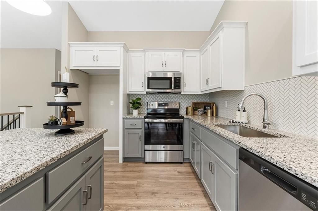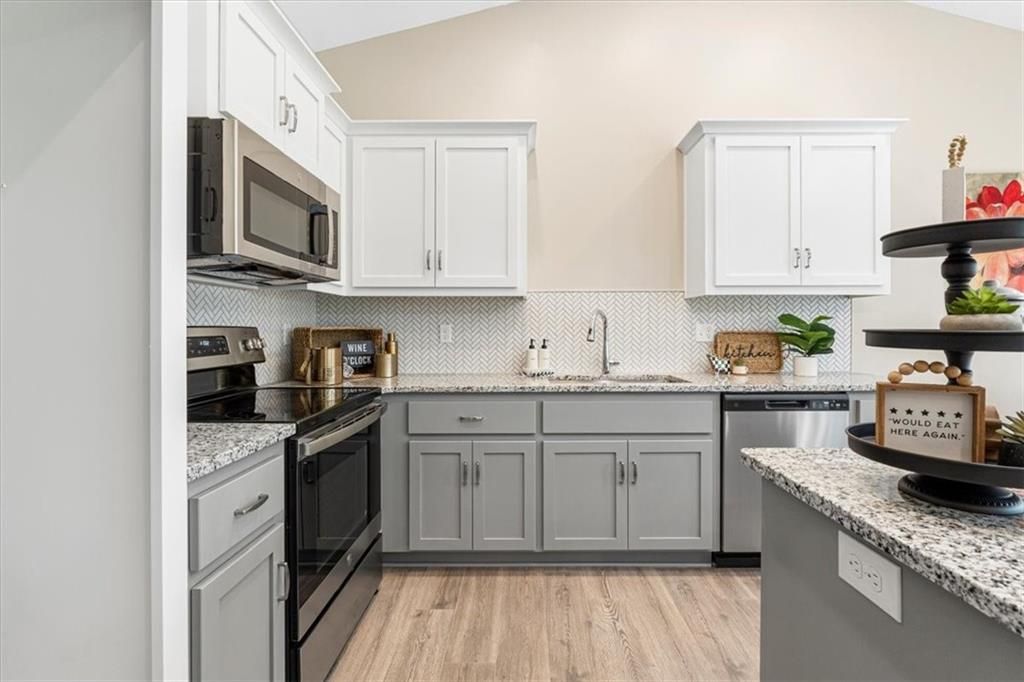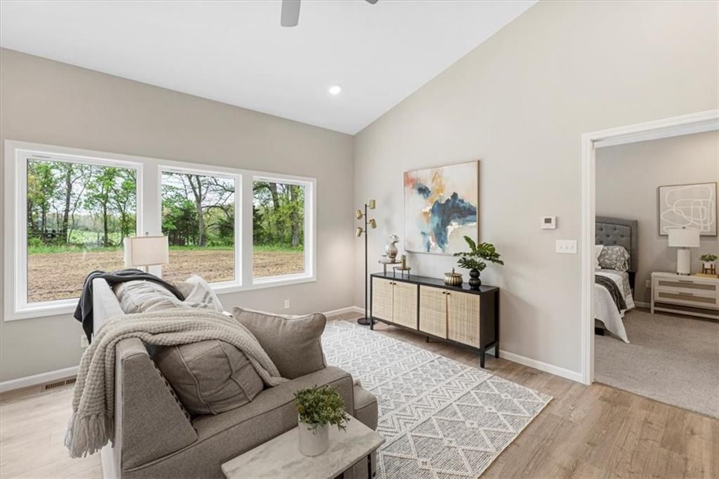 10,000 BUILDER INCENTIVE - MOVE IN READY! CALL FOR DETAILS! Small Town feel Just Minutes from the city - desirable Highland Ridge subdivision! Proudly presented by local experts who know and love the area, discover your perfect oasis in this stunning 3-bedroom, 3-bathroom ranch villa, featuring a partial finished basement designed for both comfort and functionality. Loaded with upgrades included in the purchase price! You will be just 20 minutes to downtown Kansas City and only 5 minutes from The Legends, Kansas' #1 tourist destination featuring NASCAR, Great Wolf Lodge, American Royal, world class shopping and So Much More! You will be just 15 minutes from the Overland Park business corridor, Garmin HQ and Panasonic Plant, making this location IDEAL for professionals seeking retreat without compromising accessibility. The open-concept layout seamlessly blends the living, dining, and kitchen areas, creating an inviting space for gatherings and everyday living. The main level boasts a spacious primary bedroom with an ensuite and walk-in closet, along with a secondary bedroom, a full bathroom, and a convenient laundry area. Head downstairs to find a versatile family room, a third bedroom, and another full bathroom - perfect for guests or a private retreat. With ample storage options in the basement, you'll have everything you need at your fingertips. This home showcases professionally curated design options, allowing you to personalize your space and truly make it your own. The exterior features elegant stone accents and a uncovered patio in the backyard, perfect for outdoor relaxation. Don't miss the opportunity to own this beautiful home in Highland Ridge, with unbeatable proximity to the best of Kansas City. Schedule your tour today!
